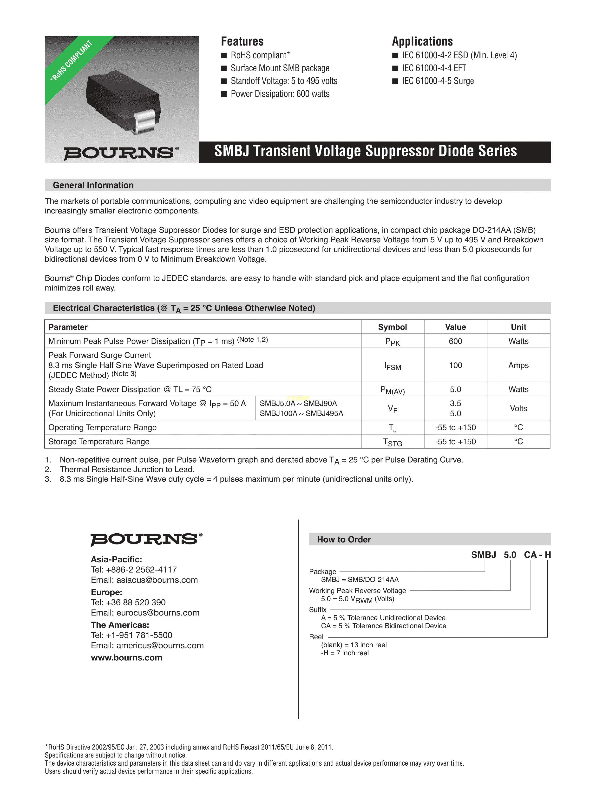 SMBJ11CA数据手册SMB(DO-214AA)封装Littelfuse(美国力特)PDF规格书,