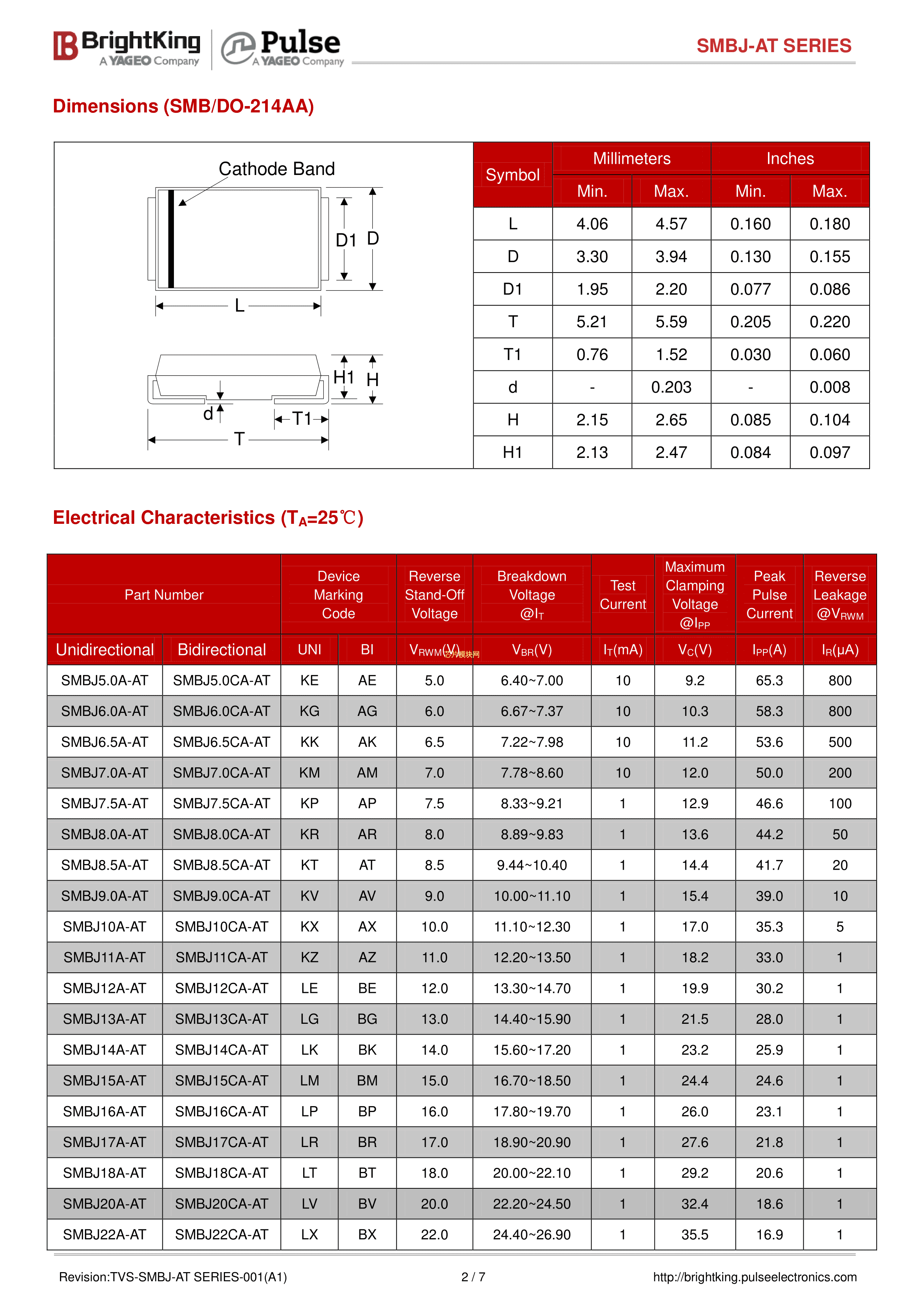 SMBJ11CA-AT数据手册SMB(DO-214AA)封装Brightking(台湾君耀)PDF规