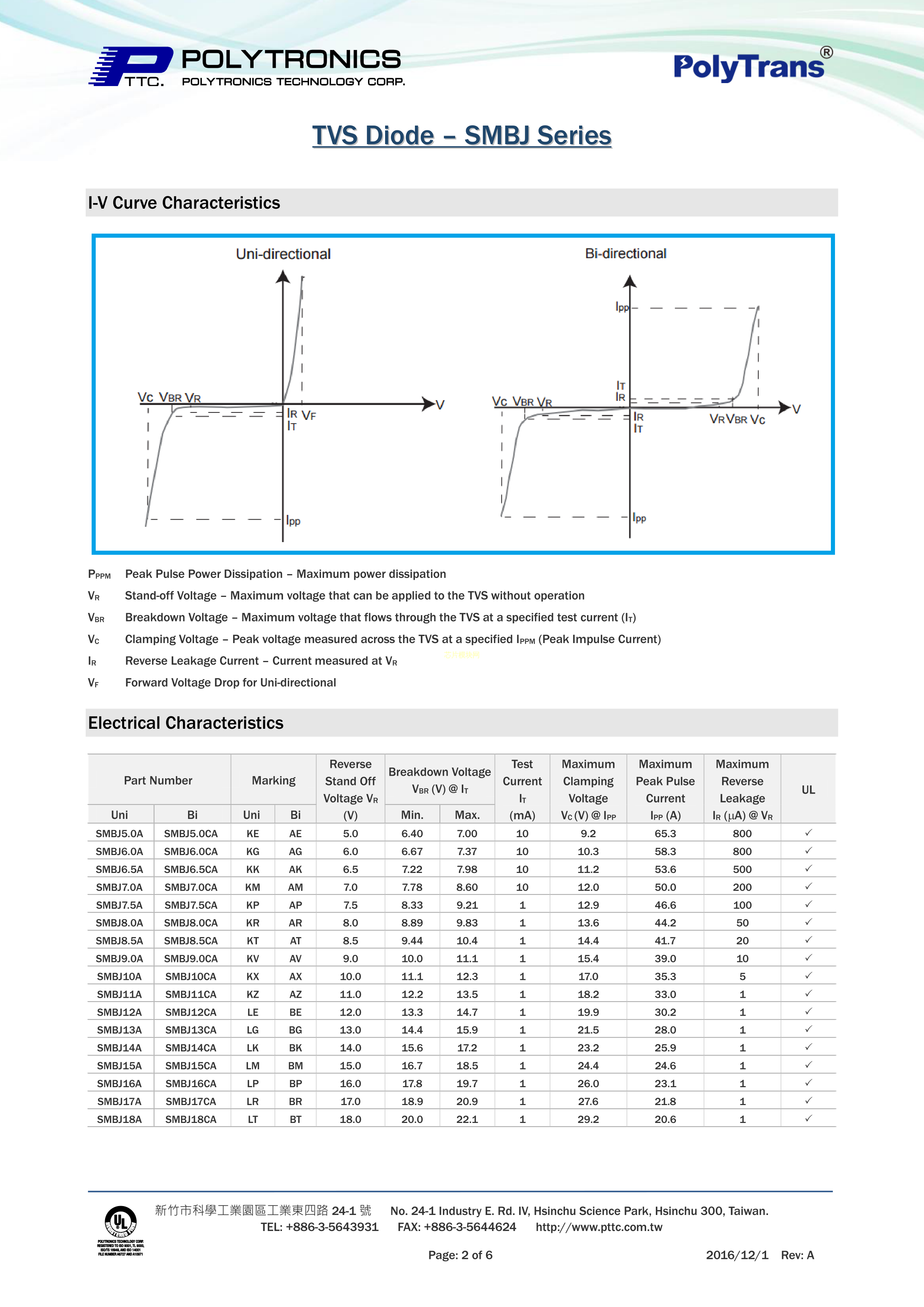 SMBJ13CA数据手册SMB(DO-214AA)封装PTTC(聚鼎)PDF规格书,中英文下载