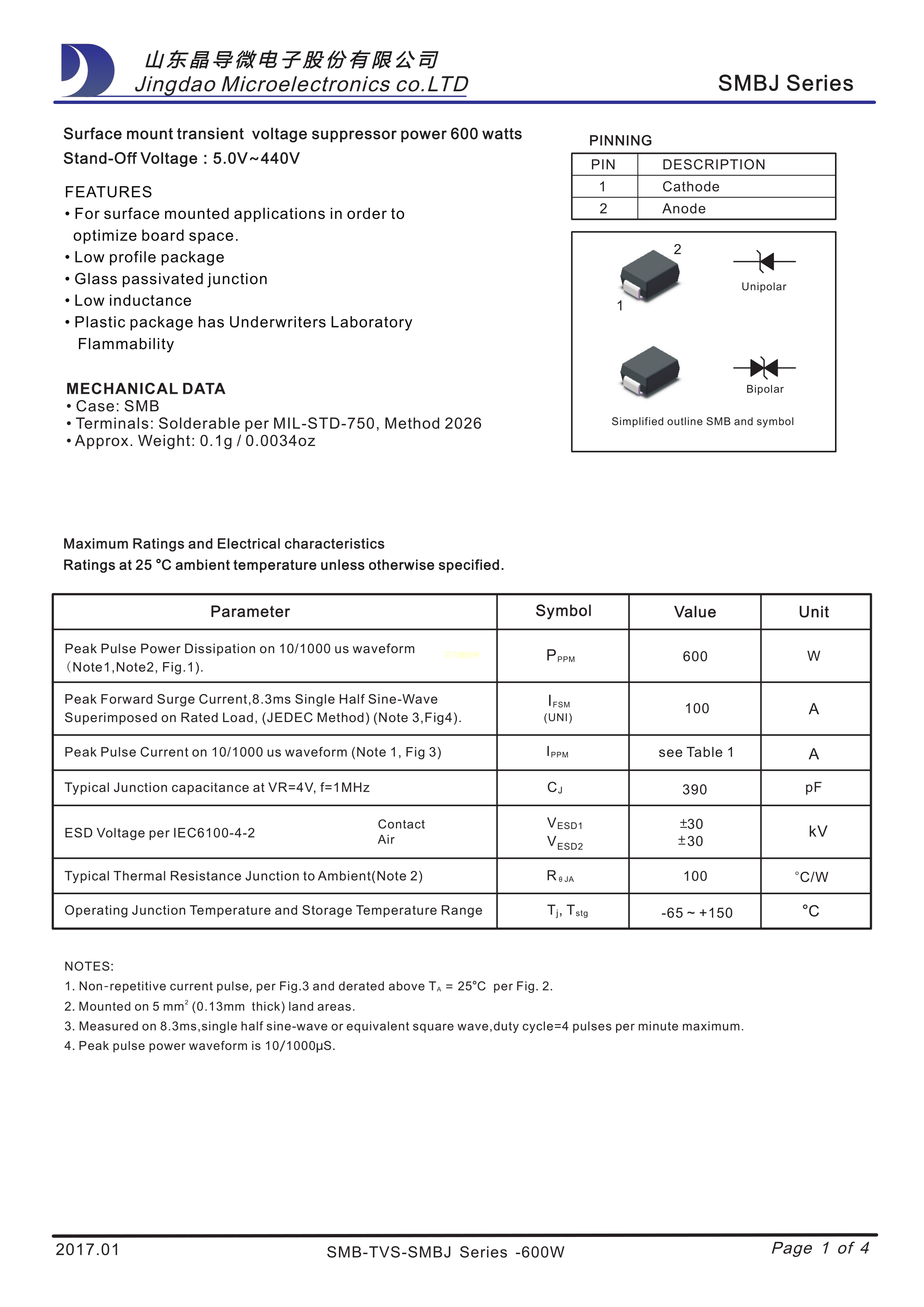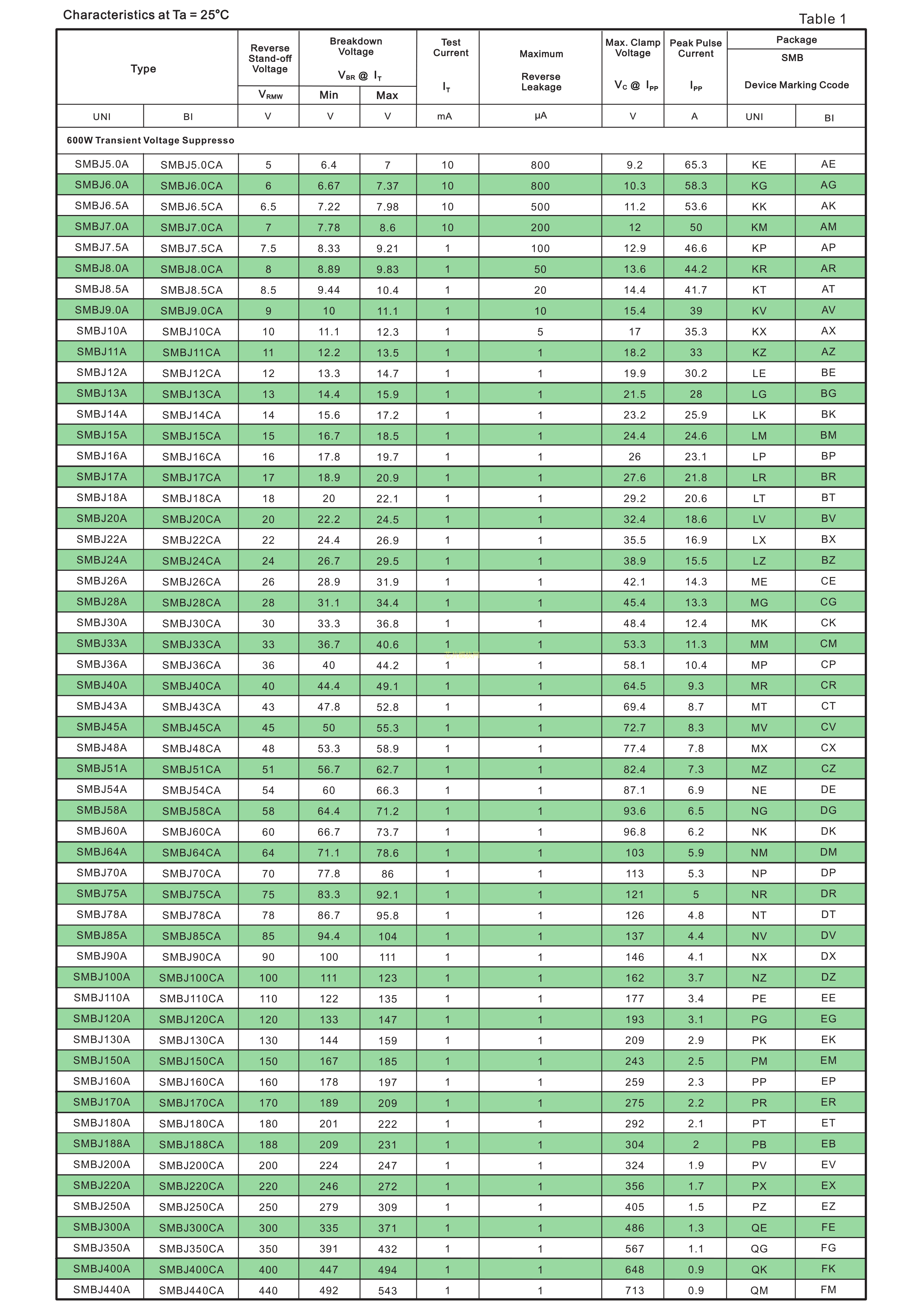 SMBJ200A数据手册SMB封装晶导微电子PDF规格书,中英文下载
