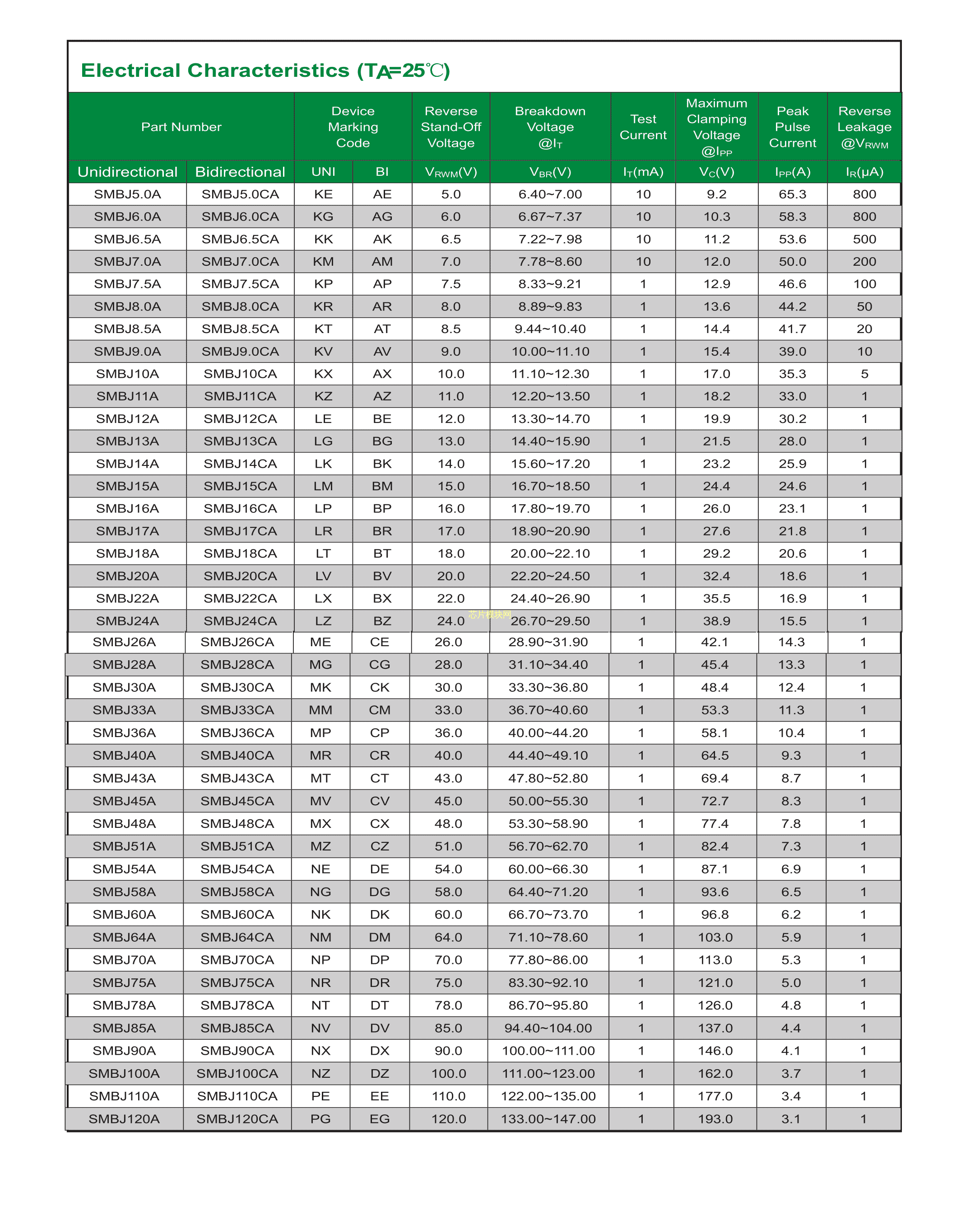 SMBJ43CA数据手册SMB(DO-214AA)封装MDDPDF规格书,中英文下载