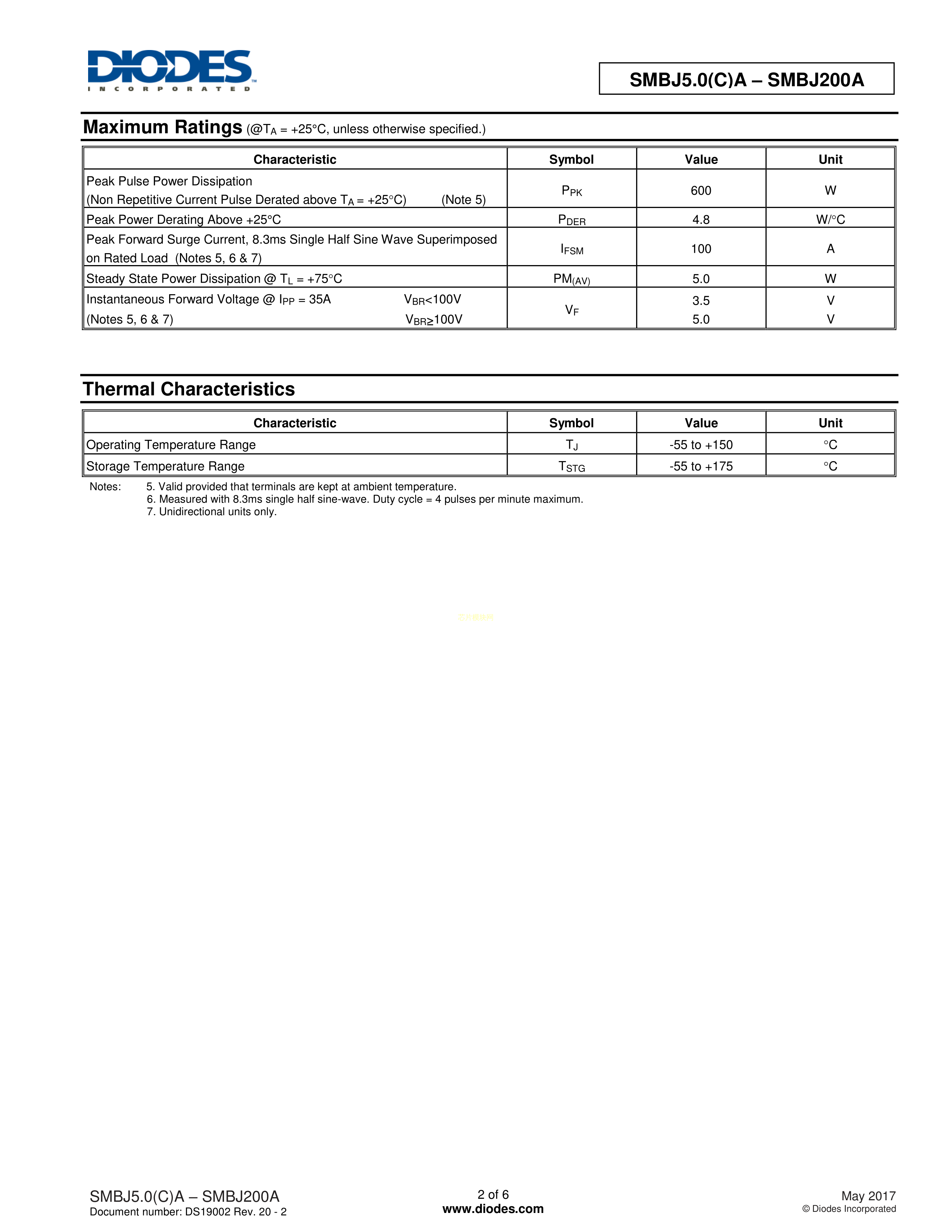 SMBJ48CA-13-F数据手册SMB(DO-214AA)封装DIODES(美台)PDF规格书,中