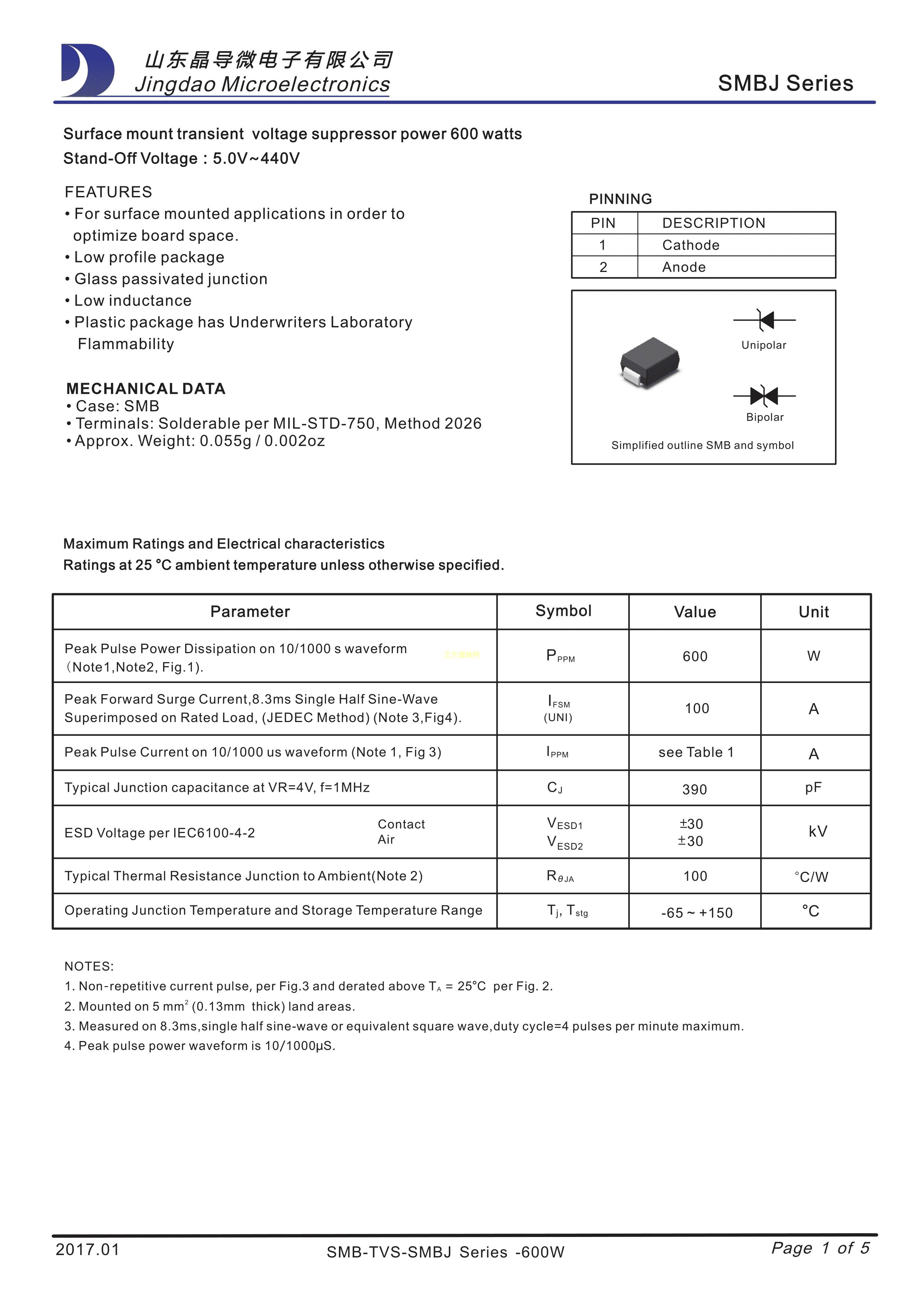 SMBJ51A数据手册SMB封装晶导微电子.pdf