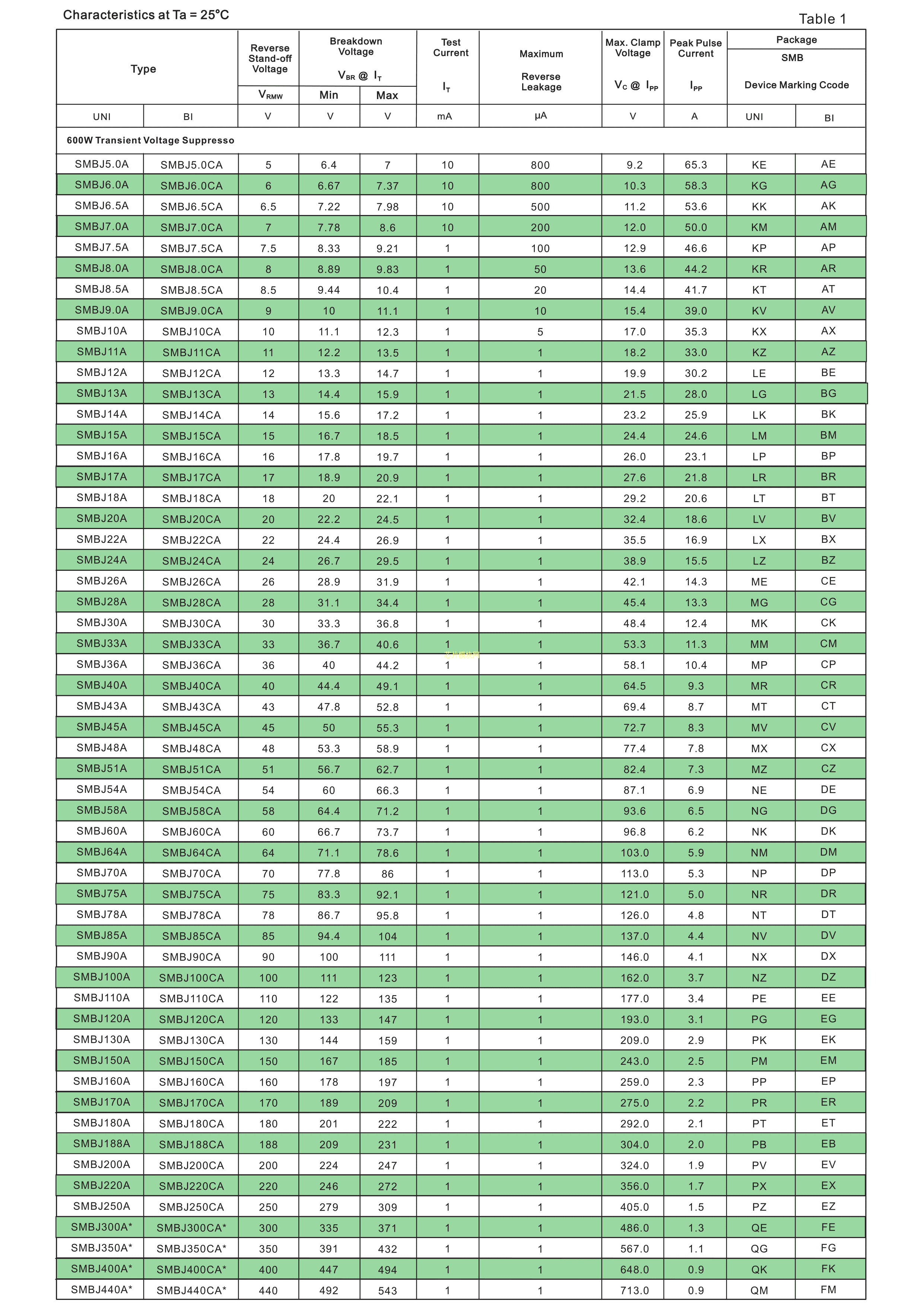 SMBJ51A数据手册SMB封装晶导微电子PDF规格书,中英文下载