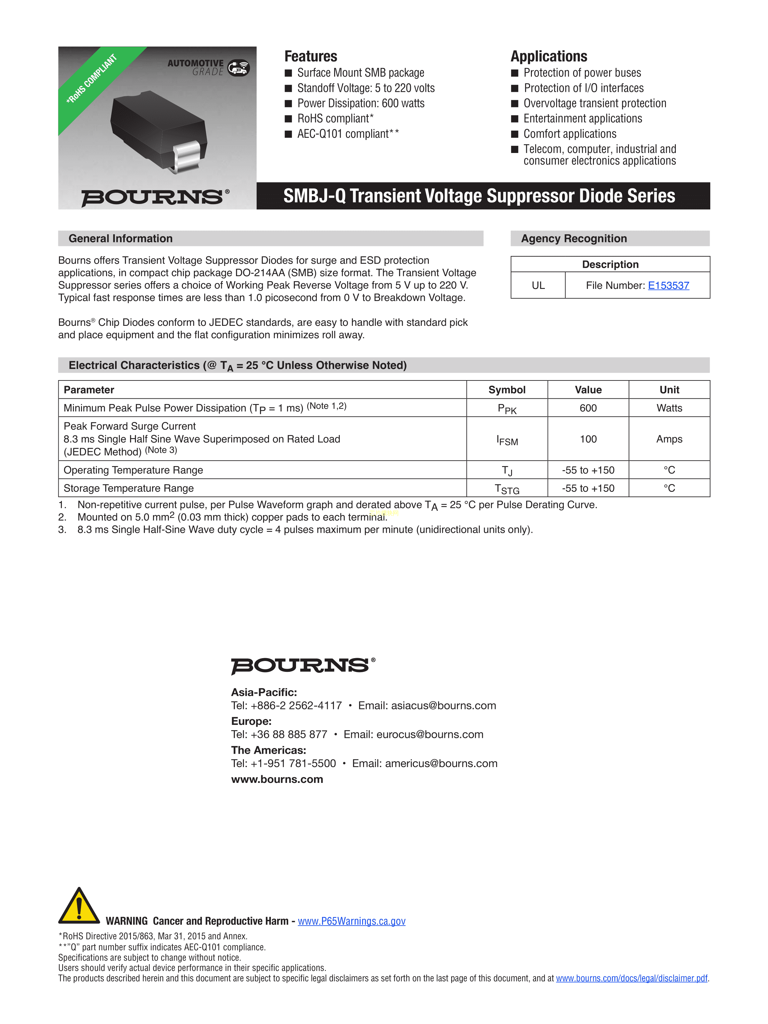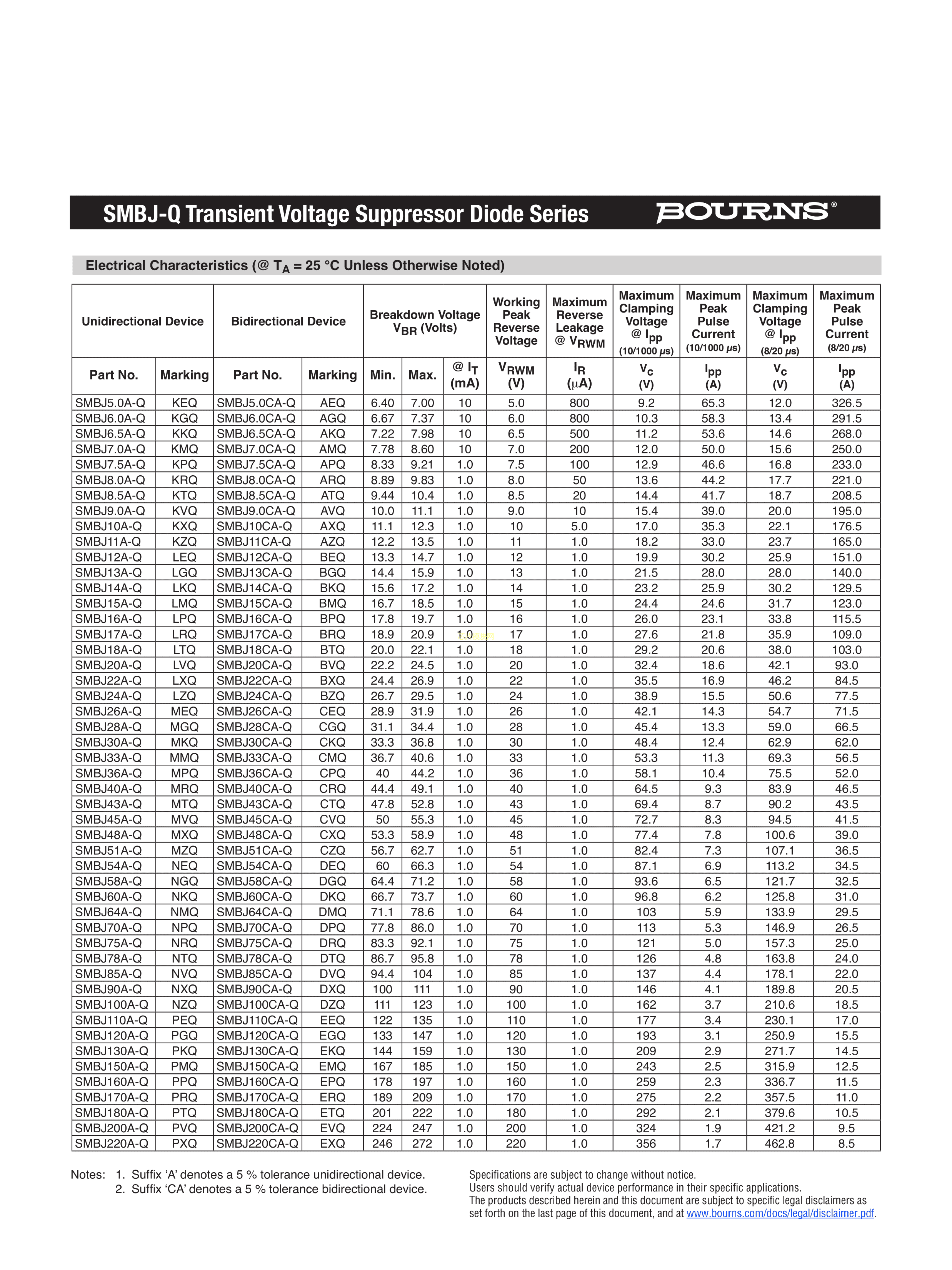 SMBJ51A-QH数据手册SMB(DO-214AA)封装BOURNSPDF规格书,中英文下载