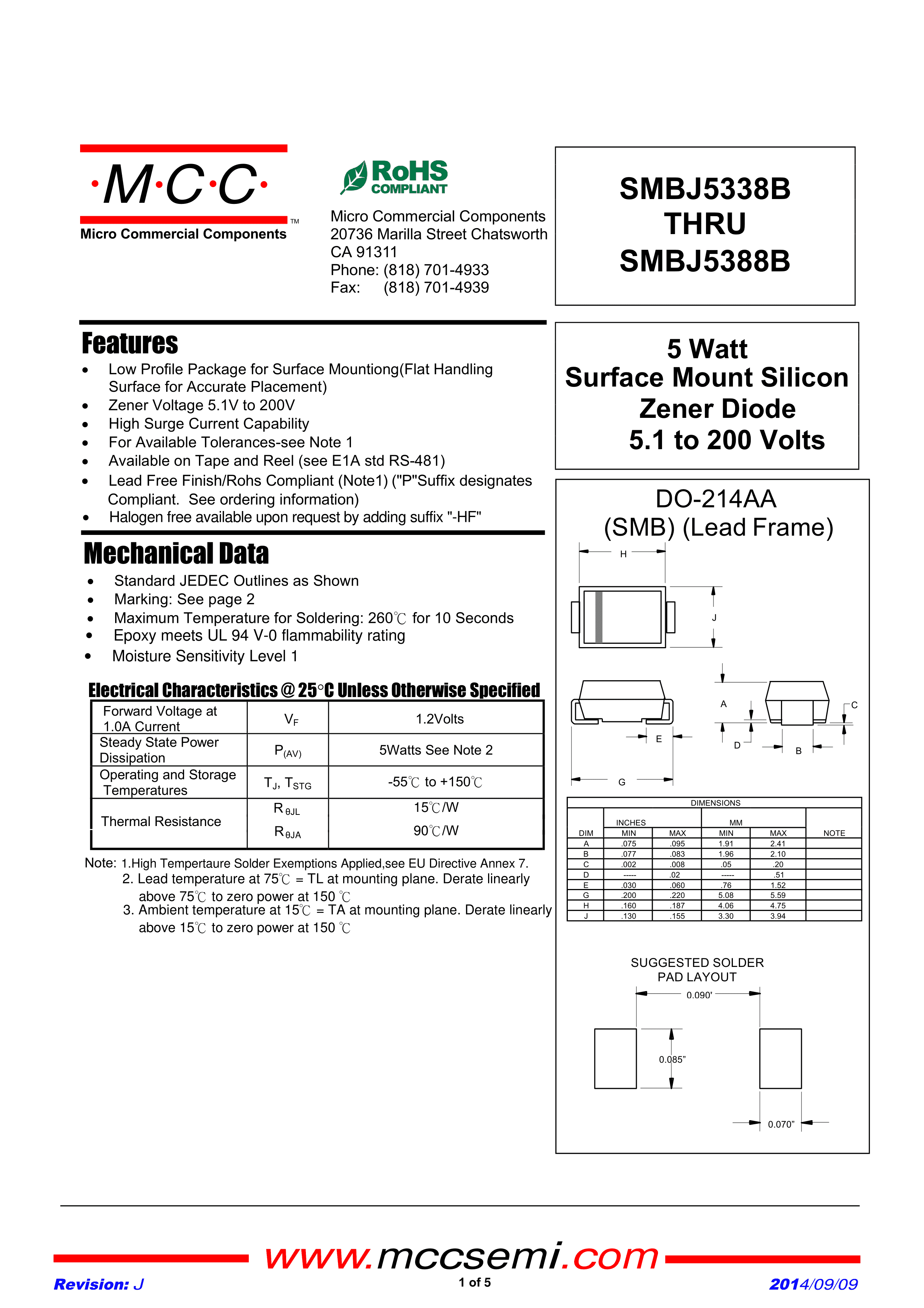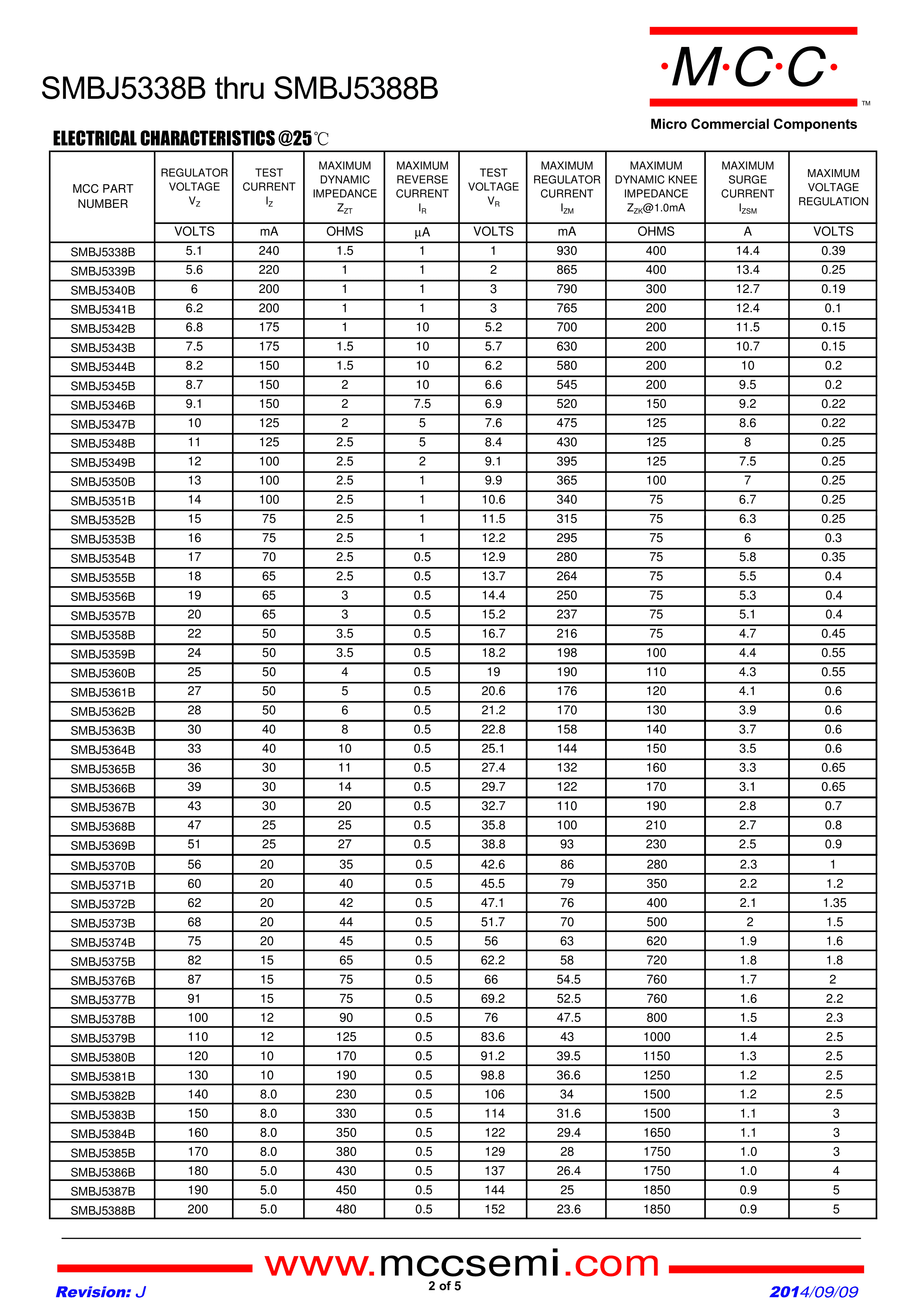 SMBJ5363B-TP数据手册SMB(DO-214AA)封装MCC(美微科)PDF规格书,中英文下