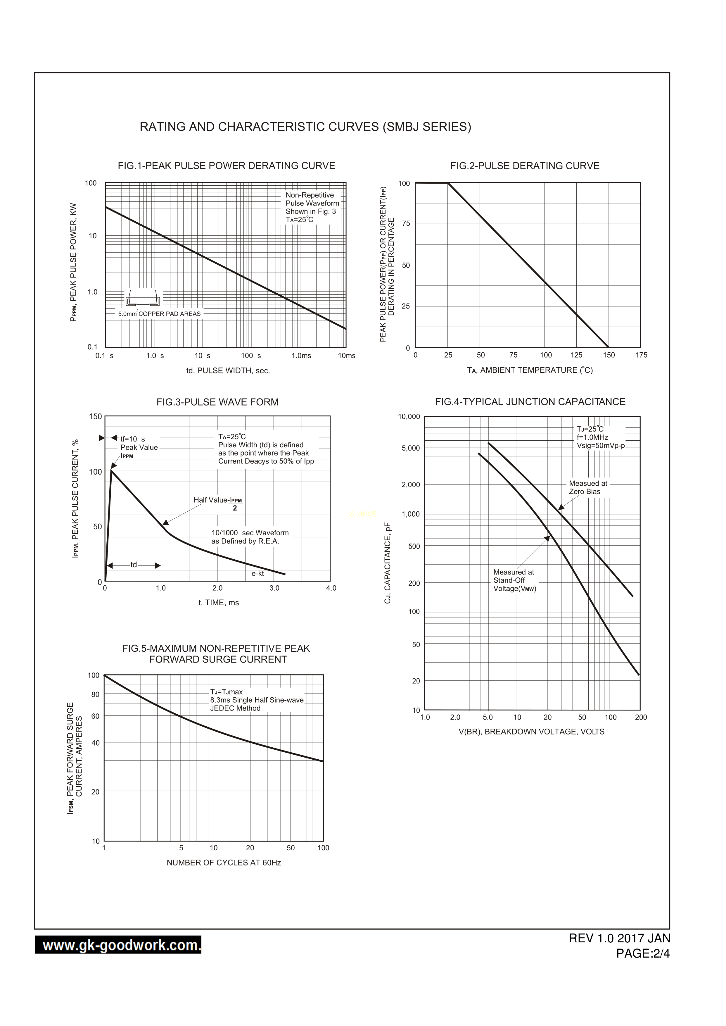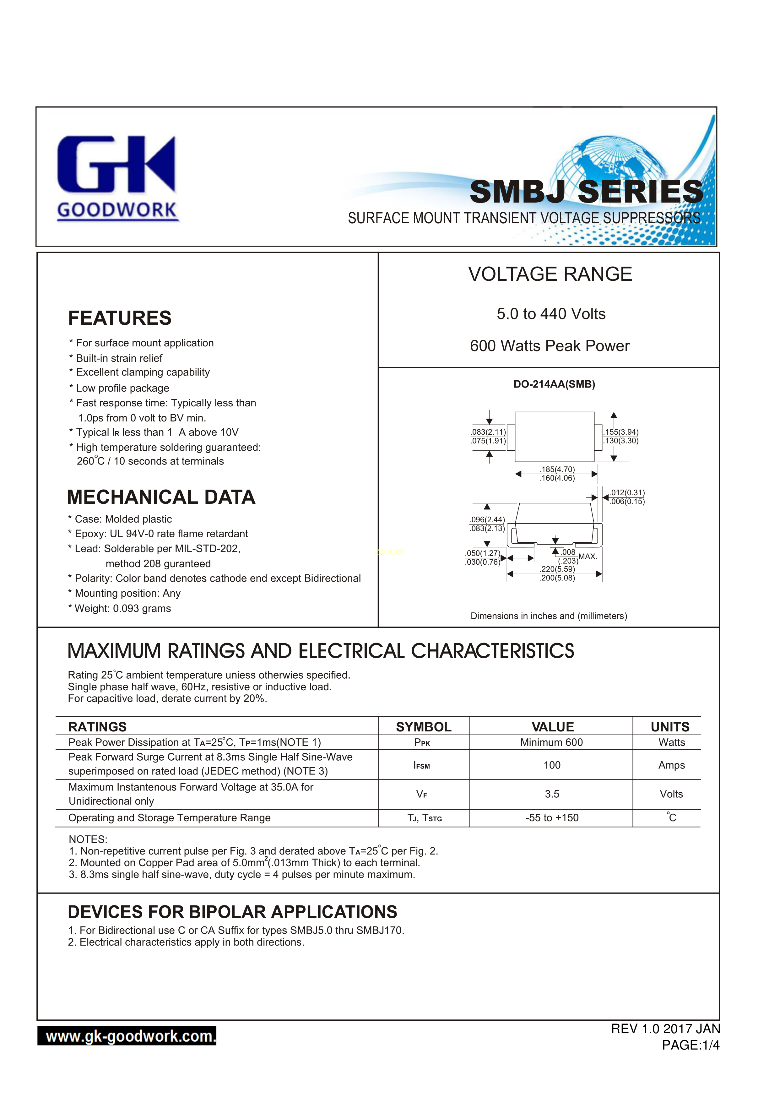 SMBJ75A数据手册SMB(DO-214AA)封装GOODWORK(固得沃克)PDF规格书,中英文