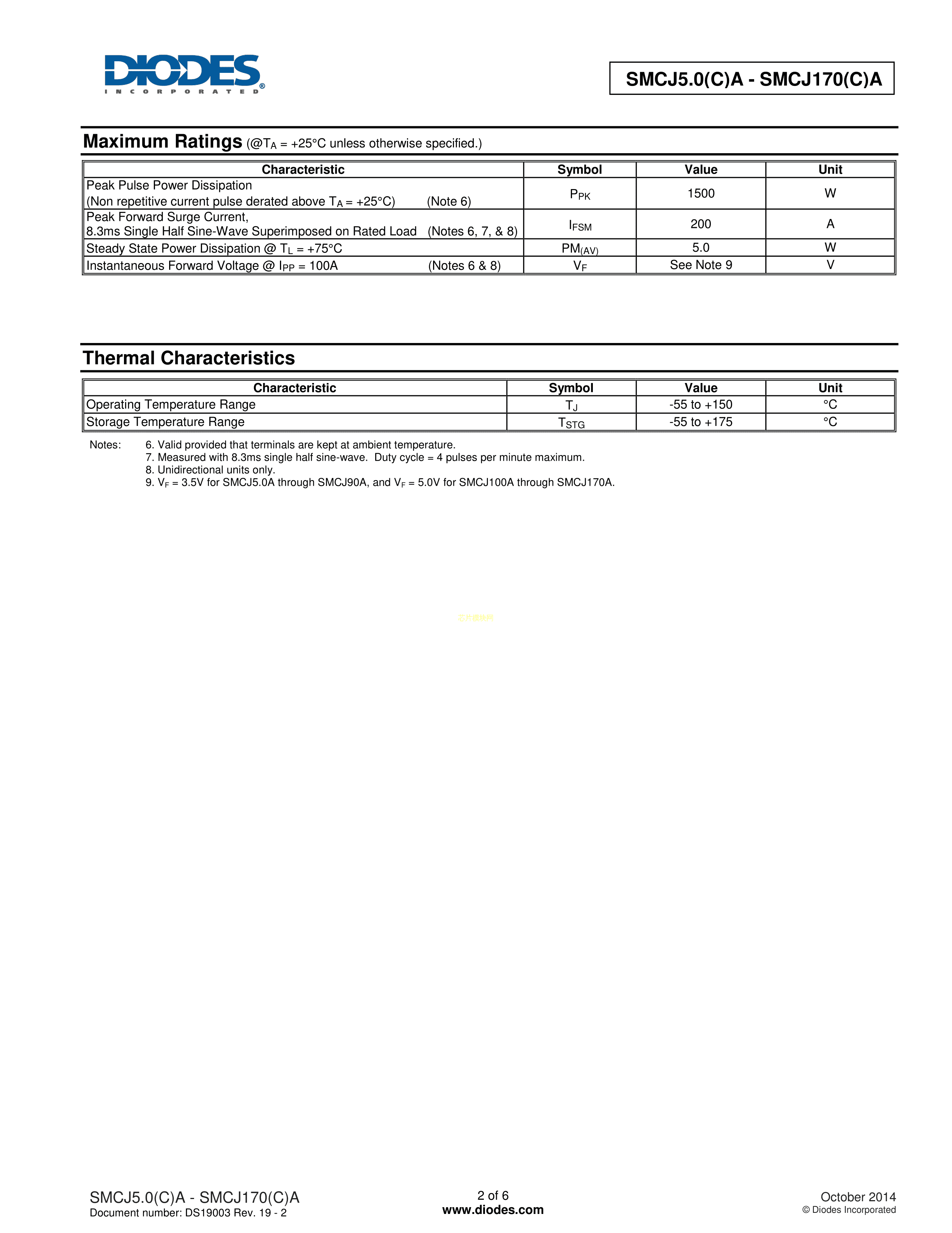 SMCJ130A-13-F数据手册SMC(DO-214AB)封装DIODES(美台)PDF规格书,中