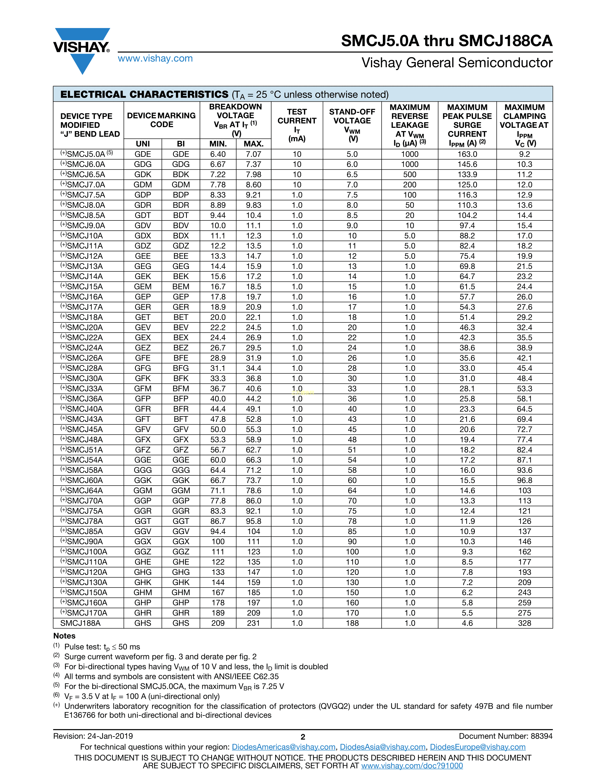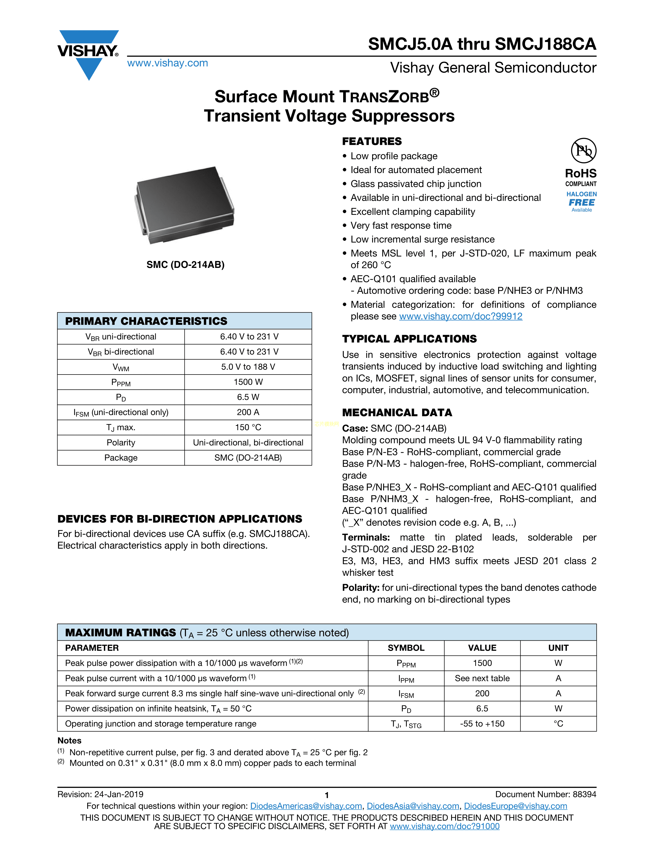 SMCJ18CA-E3-57T数据手册SMC封装VISHAY(威世)PDF规格书,中英文下载