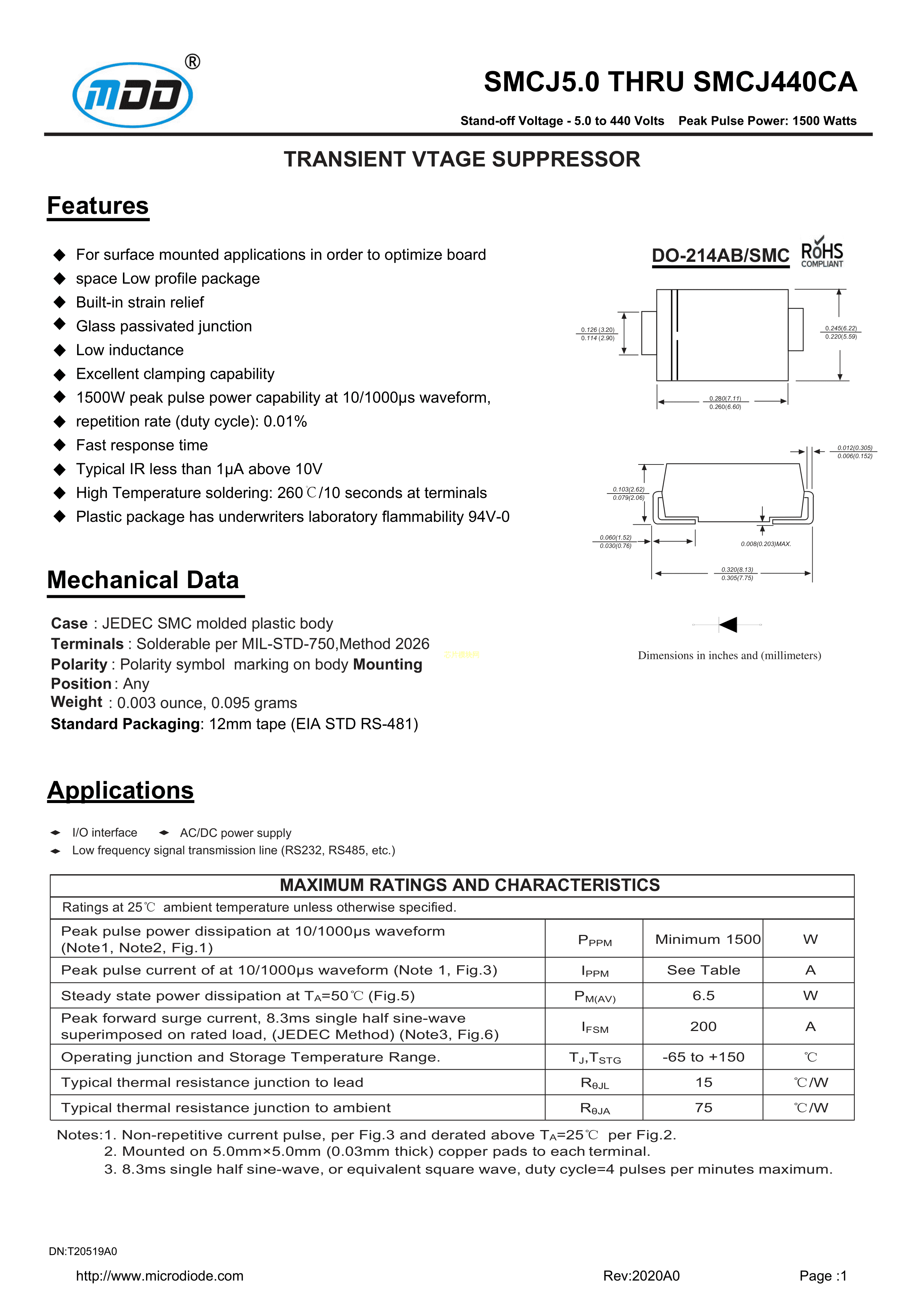 SMCJ20A数据手册SMC(DO-214AB)封装MDDPDF规格书,中英文下载
