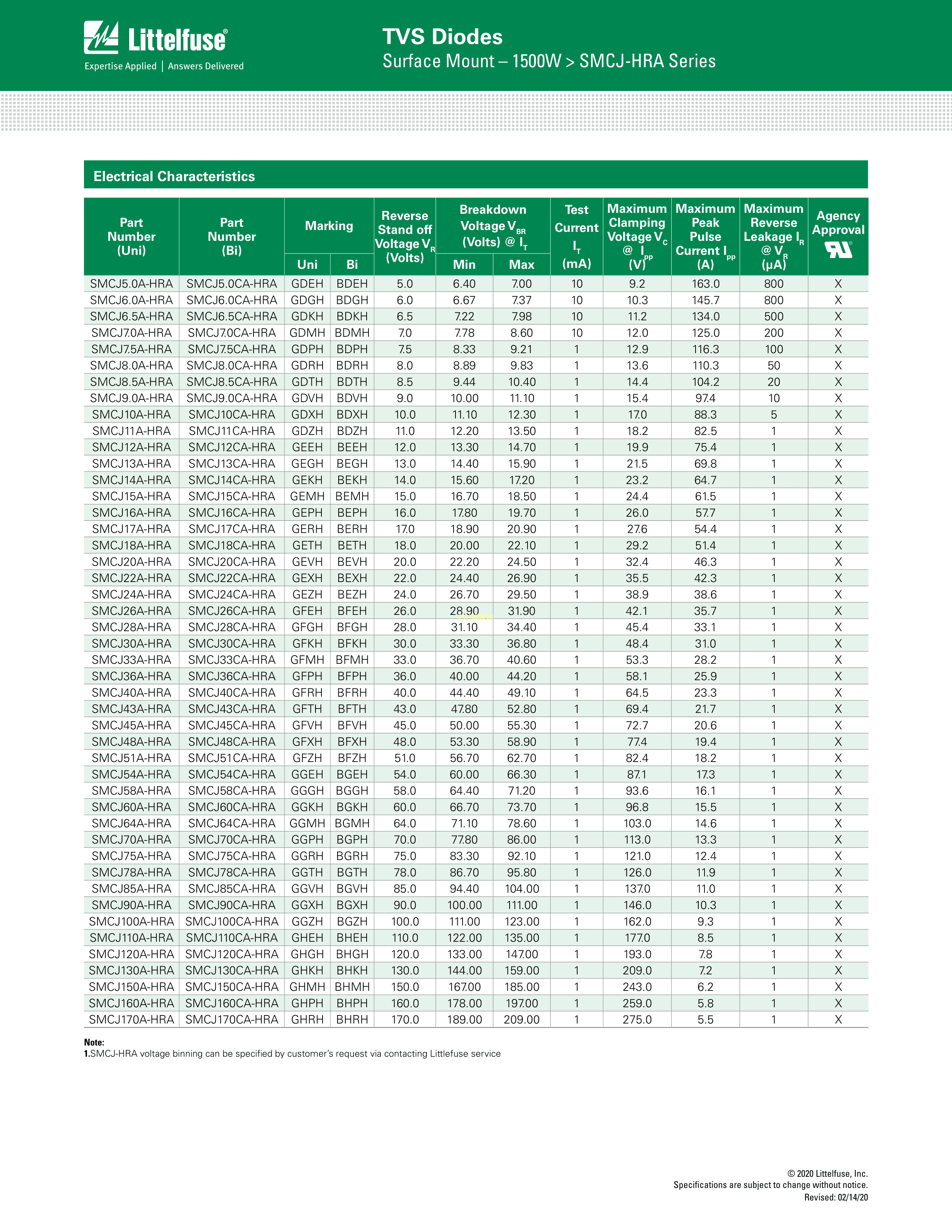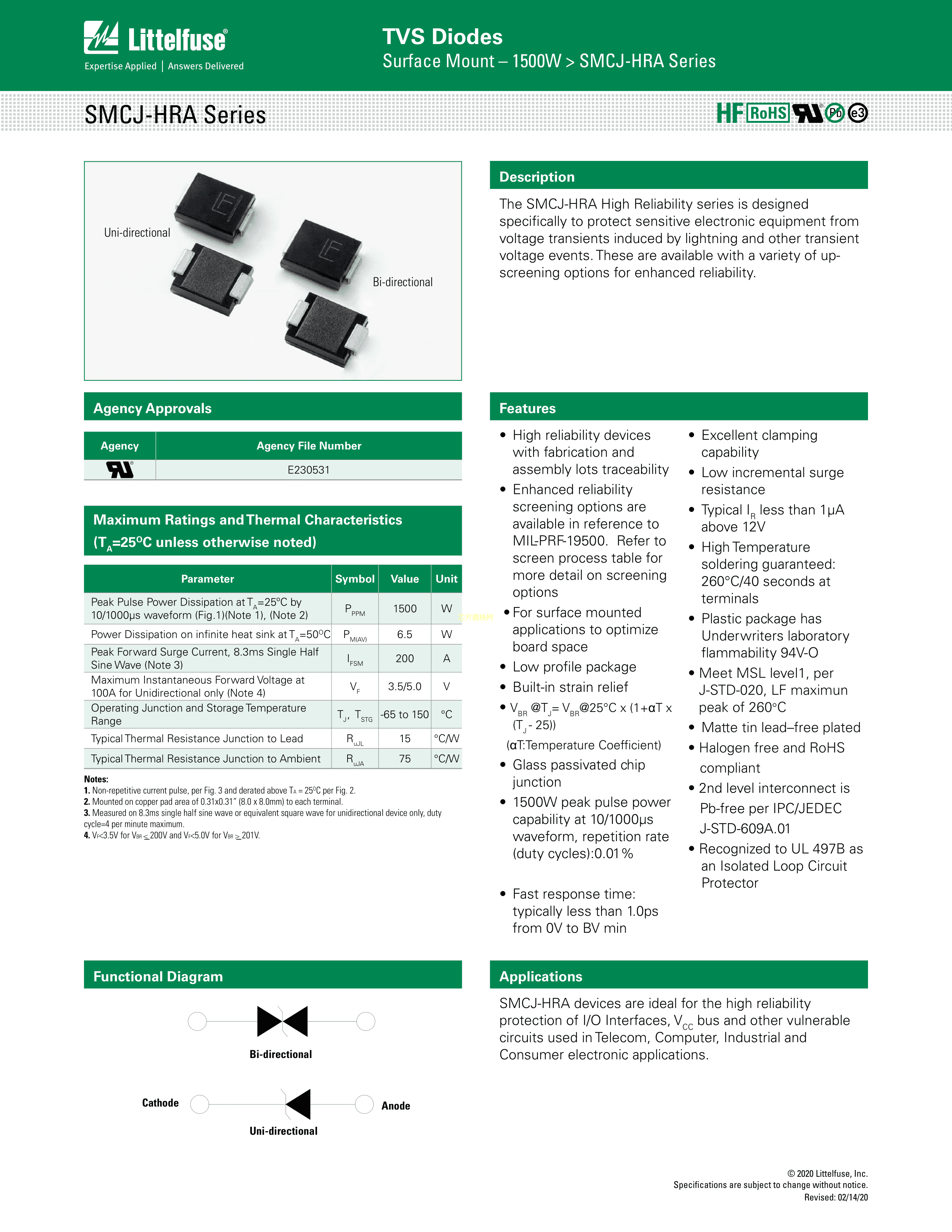 SMCJ26CA-HRAT7数据手册DO-214AB(SMCJ)封装Littelfuse(美国力特)