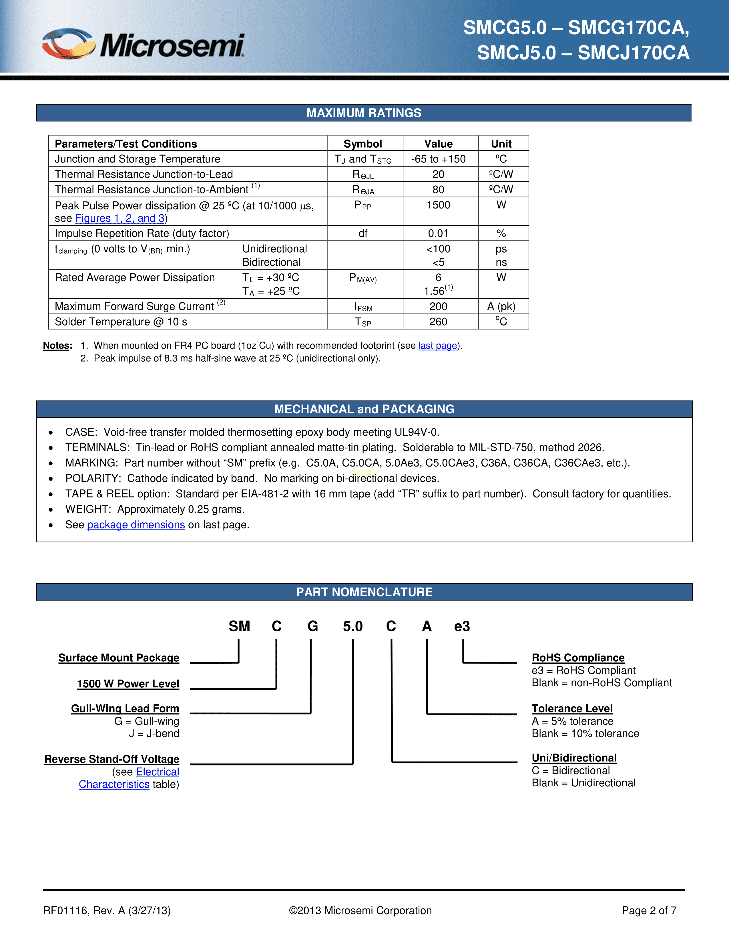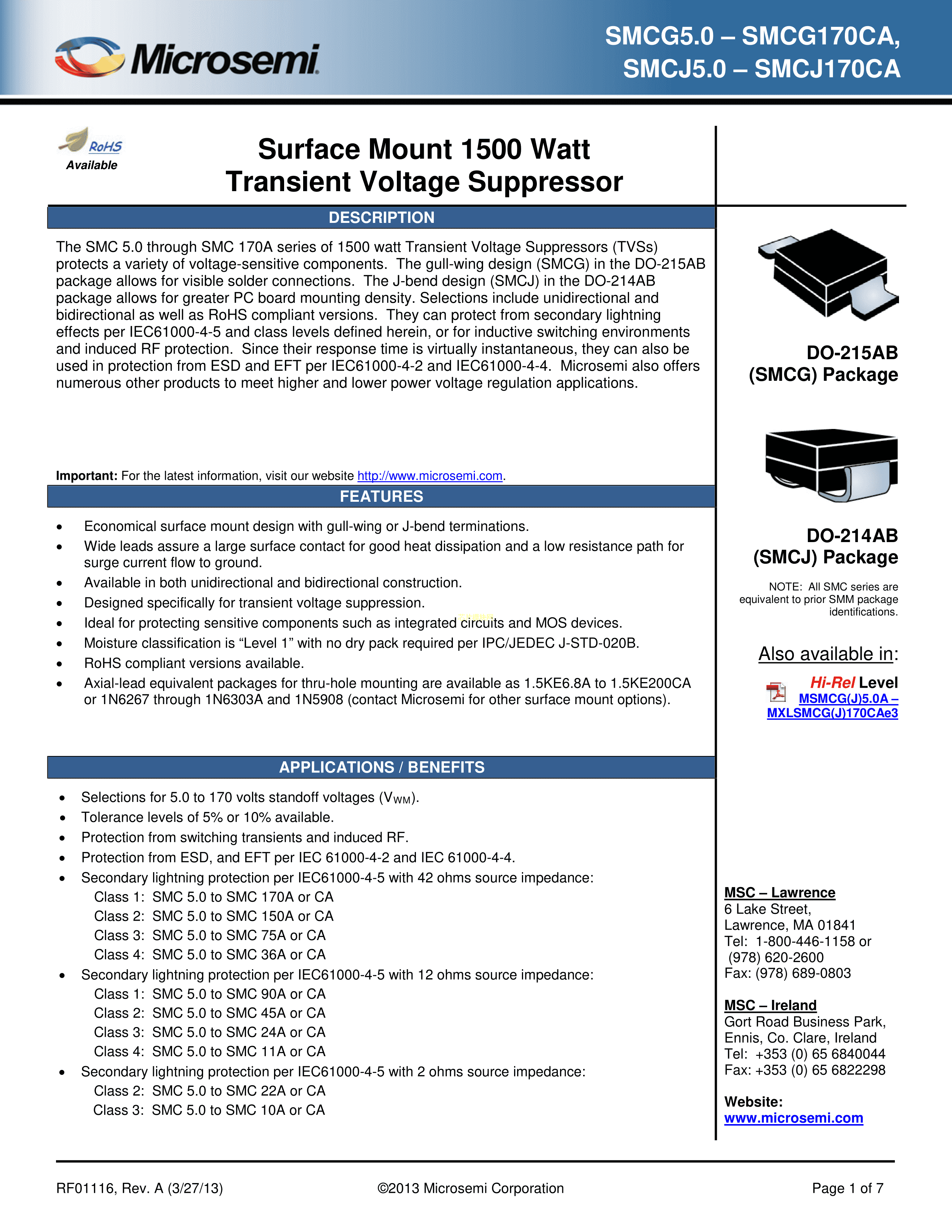 SMCJ33AE3-TR13数据手册DO-214AB(SMCJ)封装Microsemi(美高森美)P