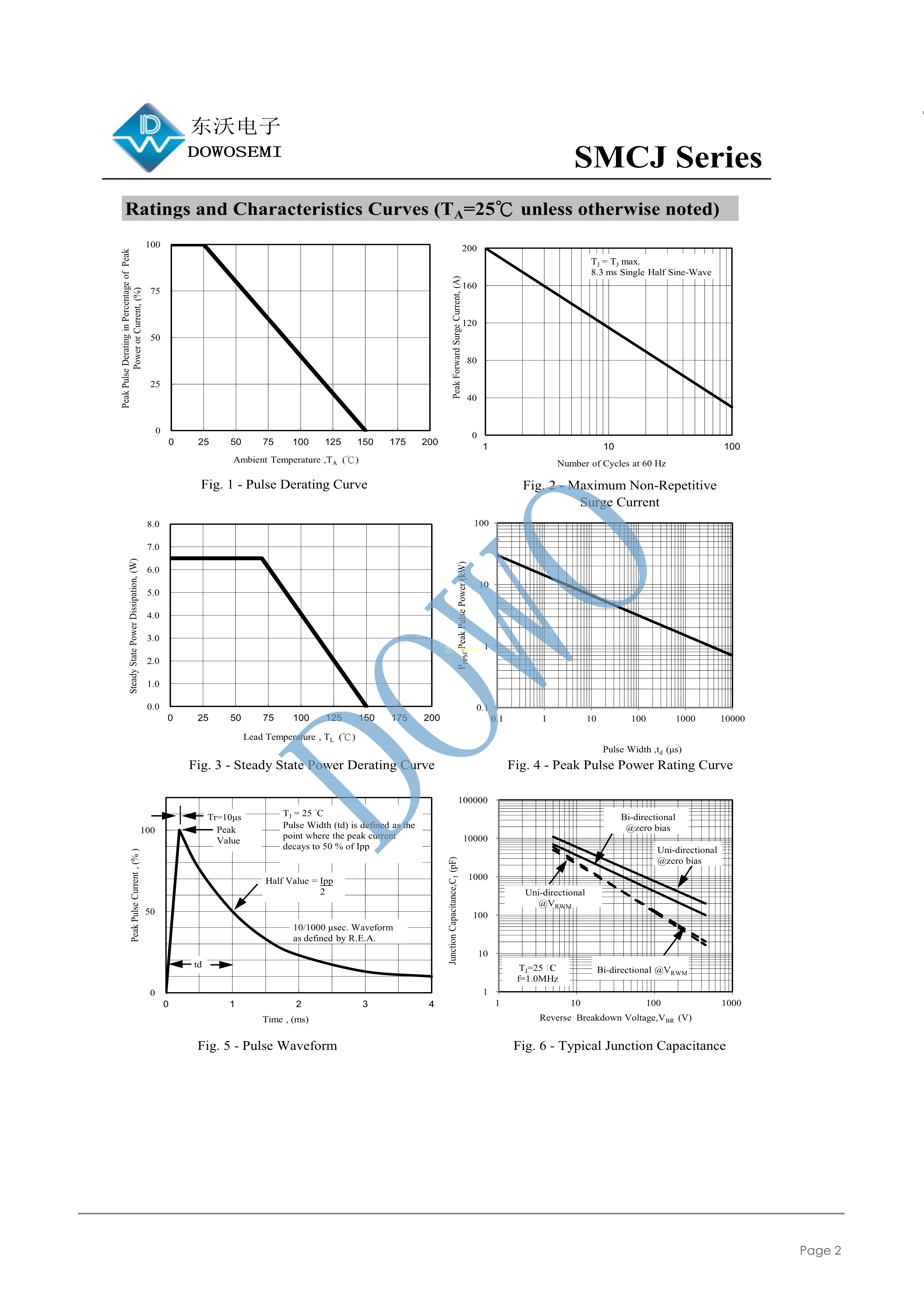 SMCJ40CA数据手册SMC封装DOWO(东沃)PDF规格书,中英文下载
