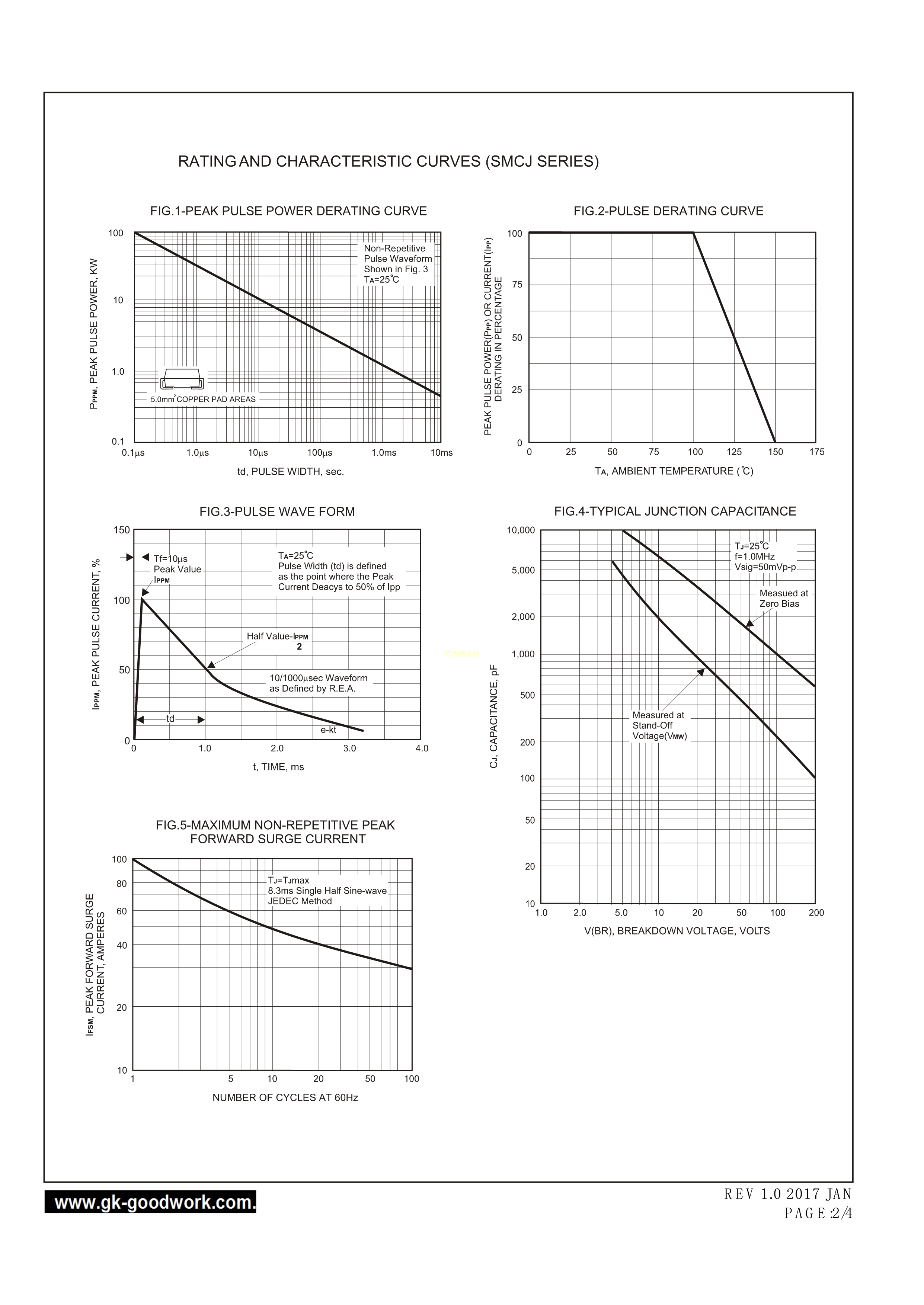 SMCJ78A数据手册SMC(DO-214AB)封装GOODWORK(固得沃克)PDF规格书,中英文