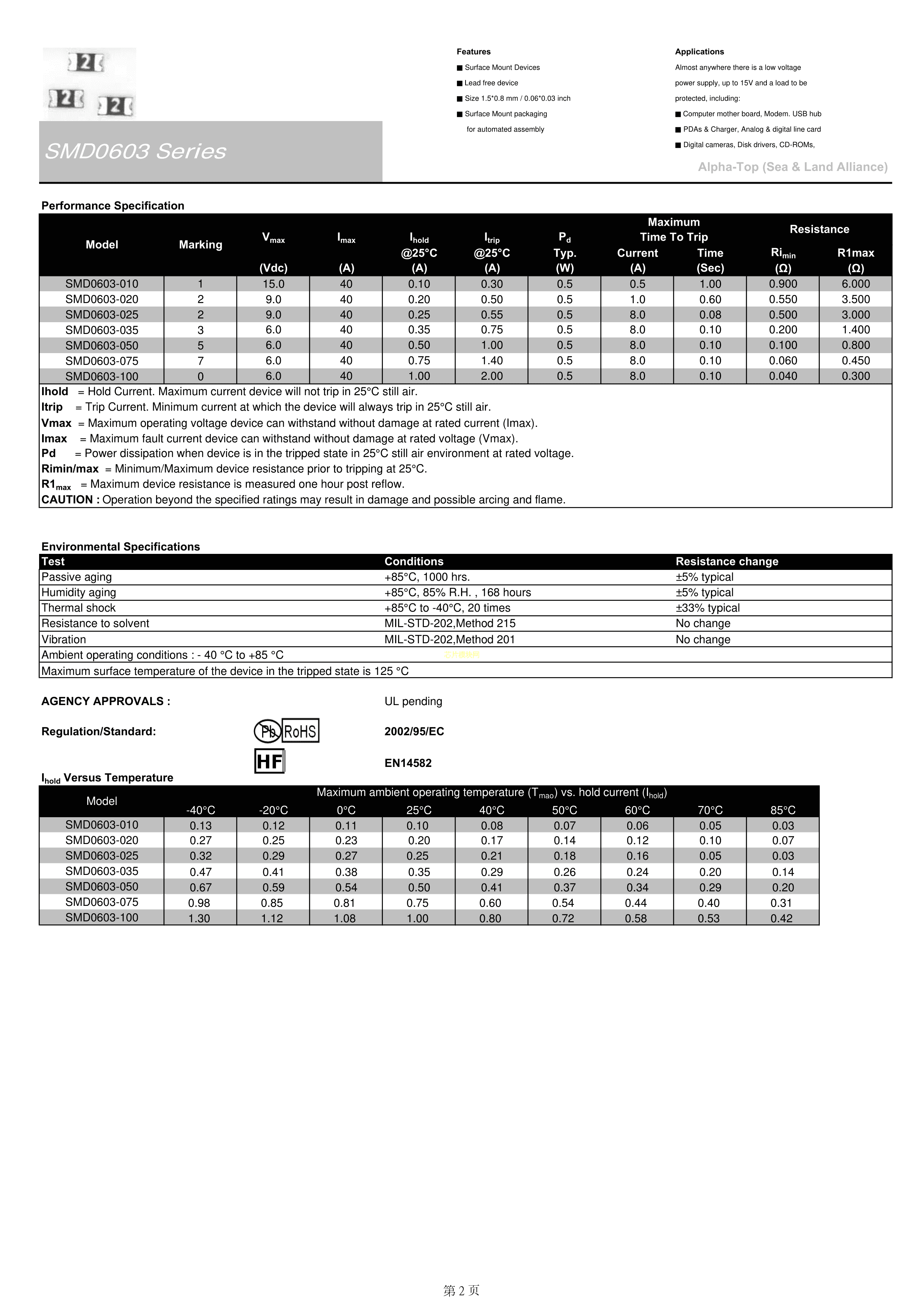 SMD0603-035数据手册0603封装台湾陆海PDF规格书,中英文下载