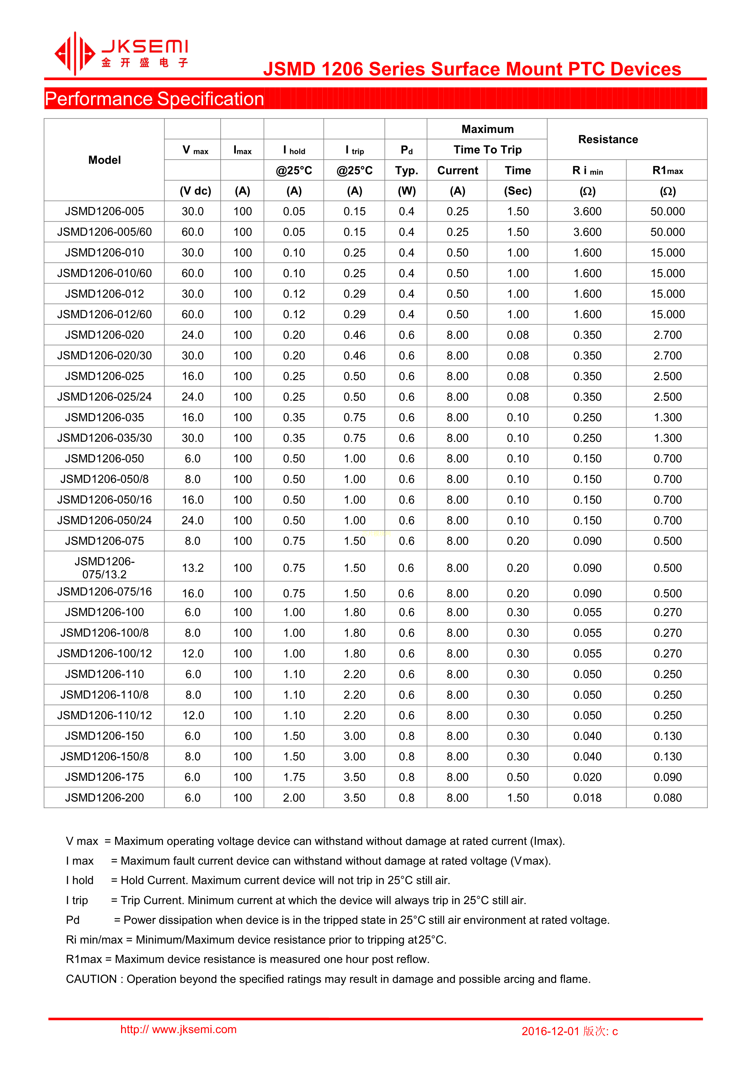SMD1206-050数据手册1206封装JKSEMI(金开盛)PDF规格书,中英文下载