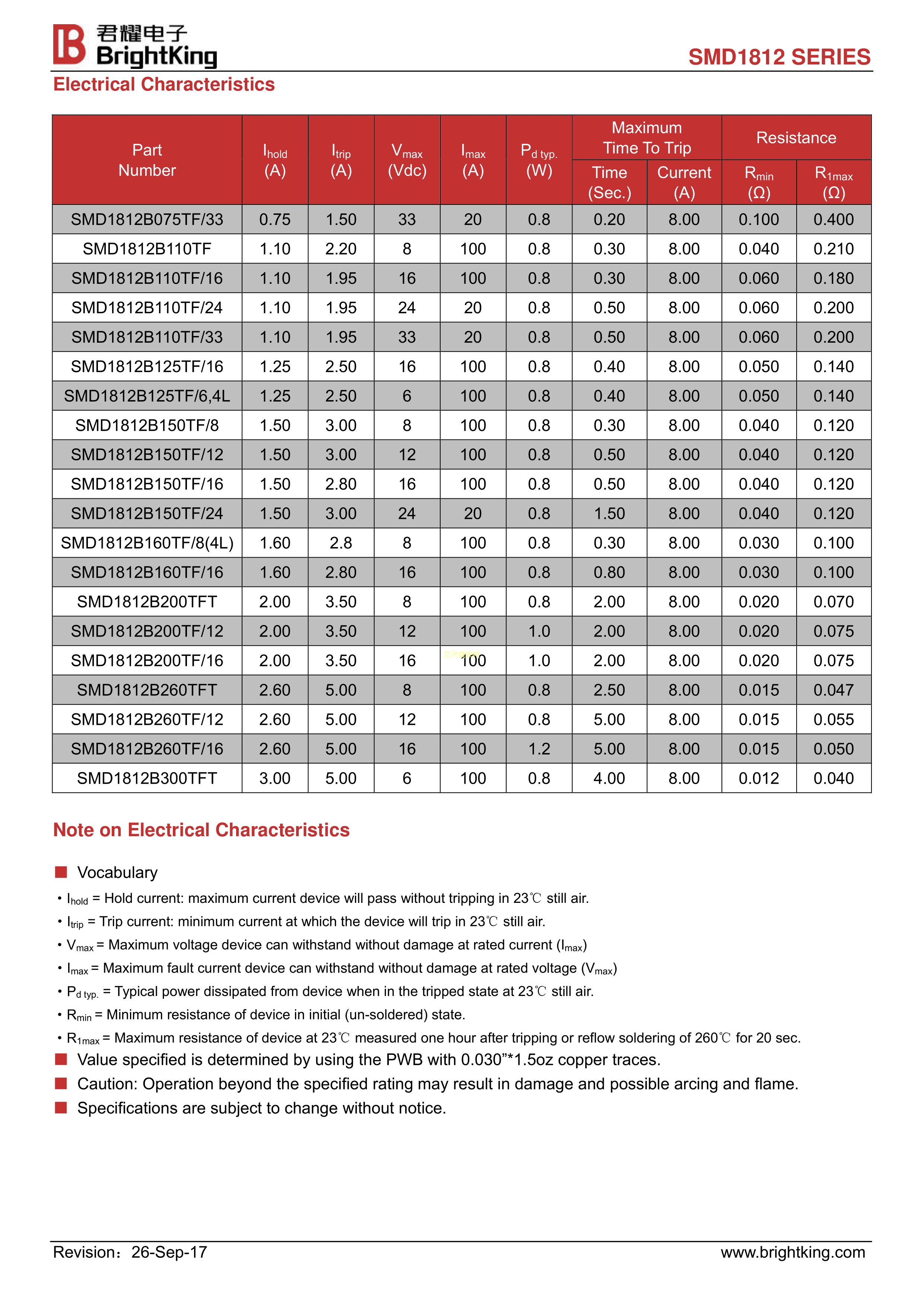 SMD1812B200TF-16数据手册1812封装Brightking(台湾君耀)PDF规格书,中英文下载
