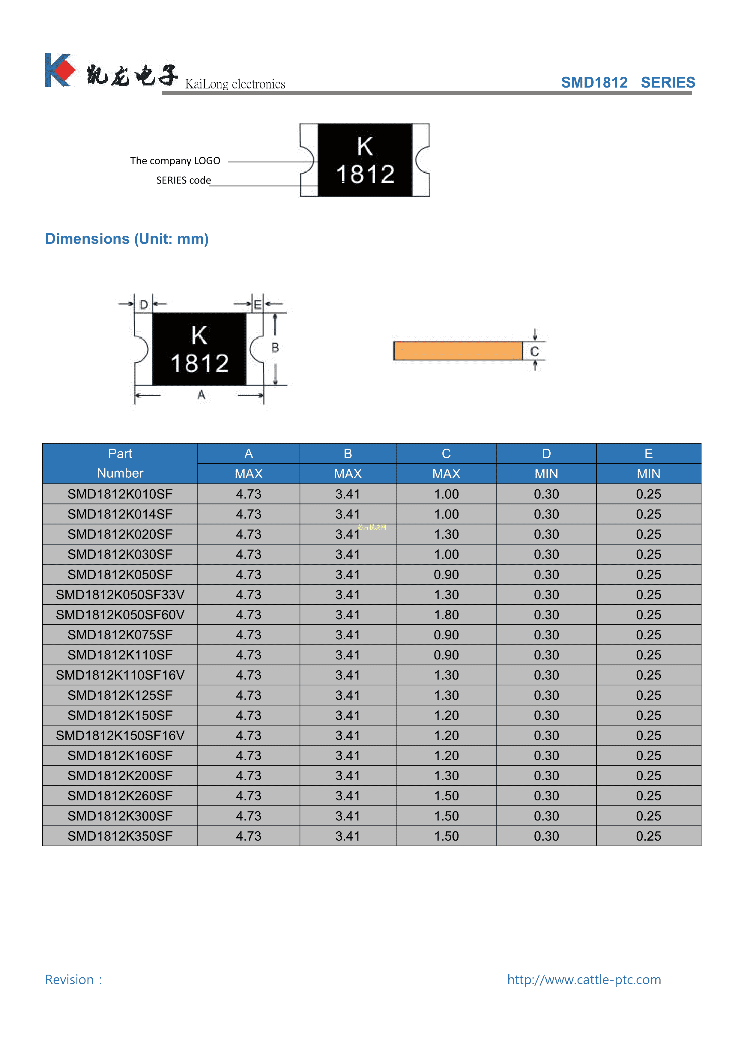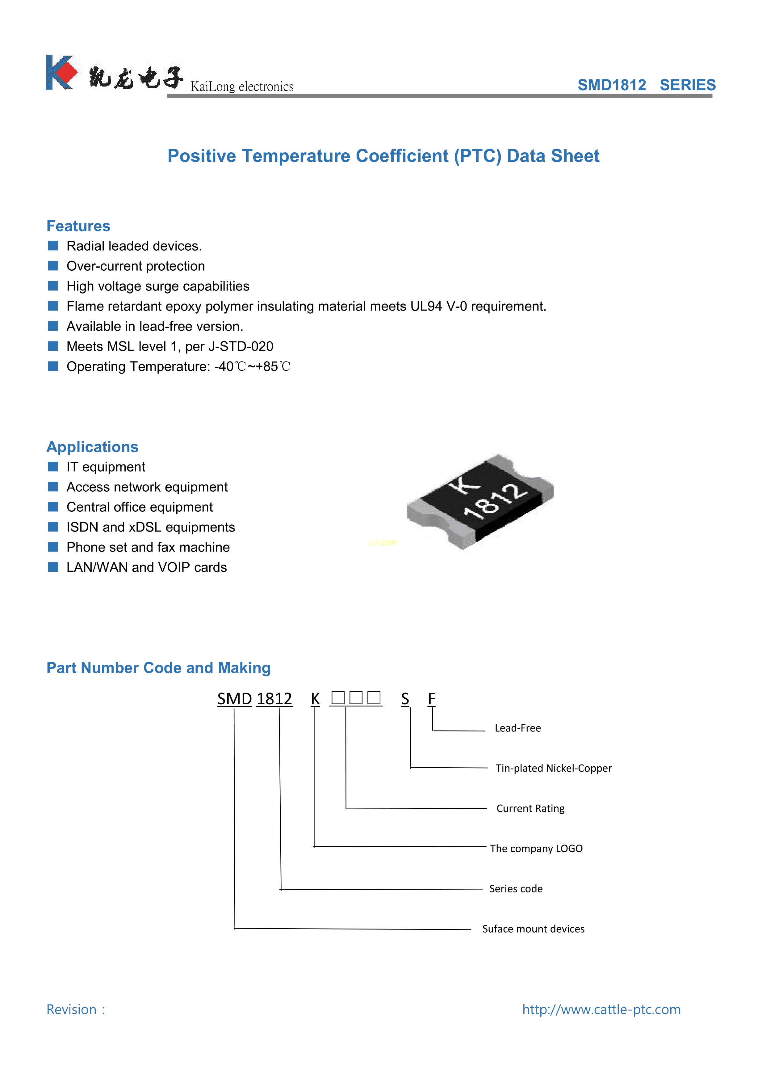 SMD1812K200SF8V数据手册1812封装KAILONG(凯龙)PDF规格书,中英文下载