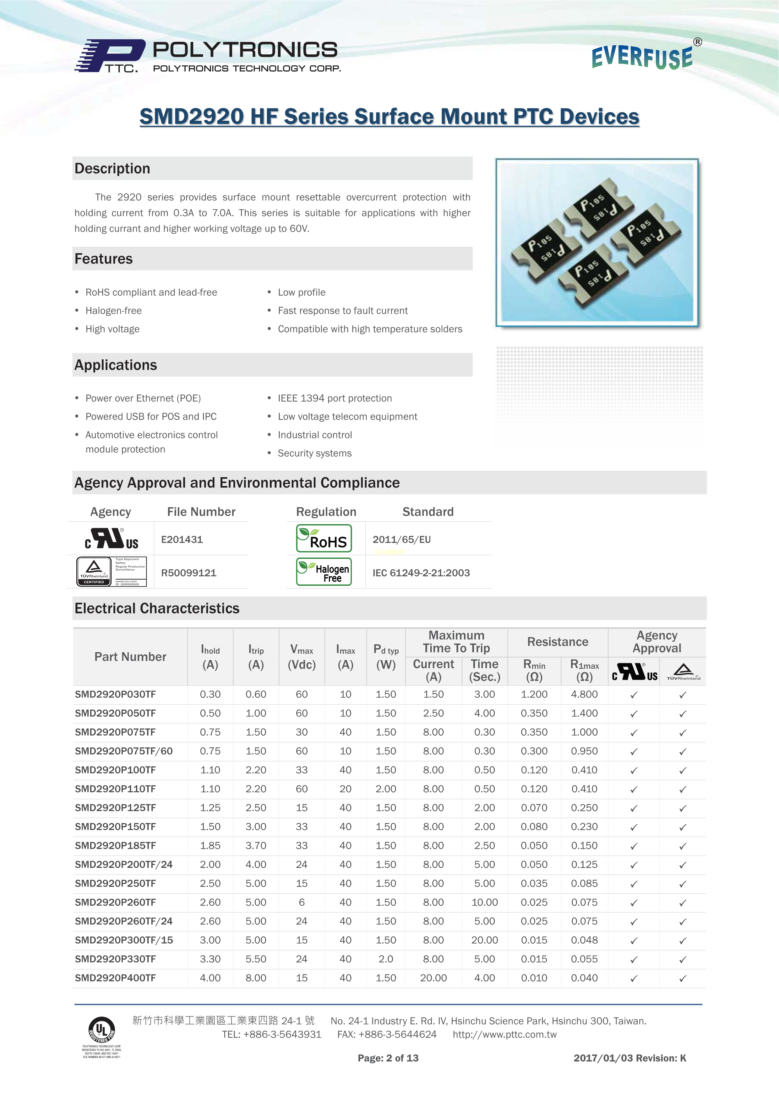 SMD2920P260TF-24数据手册2920封装PTTC(聚鼎)PDF规格书,中英文下载
