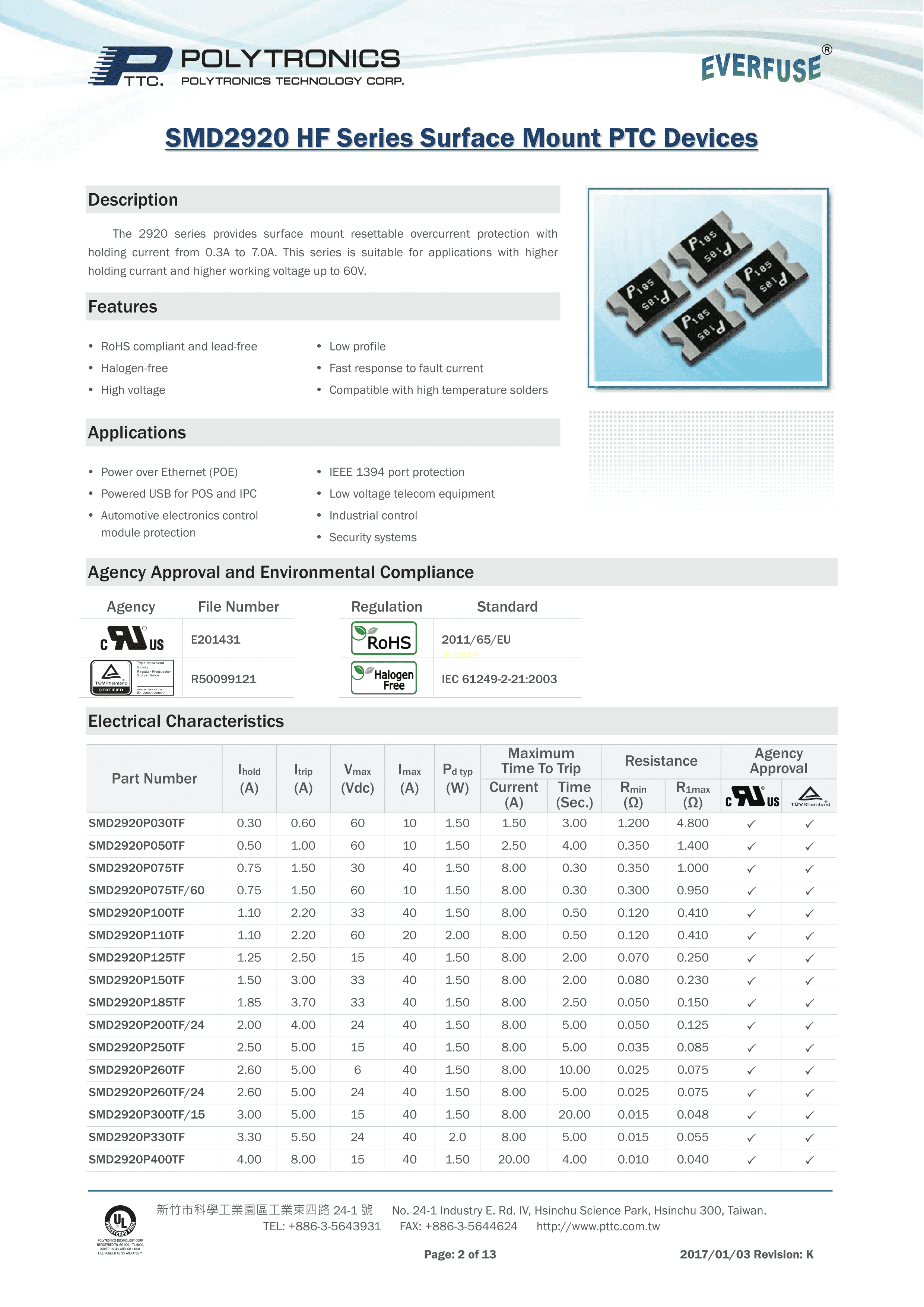 SMD2920P500TF-16数据手册2920封装PTTC(聚鼎)PDF规格书,中英文下载