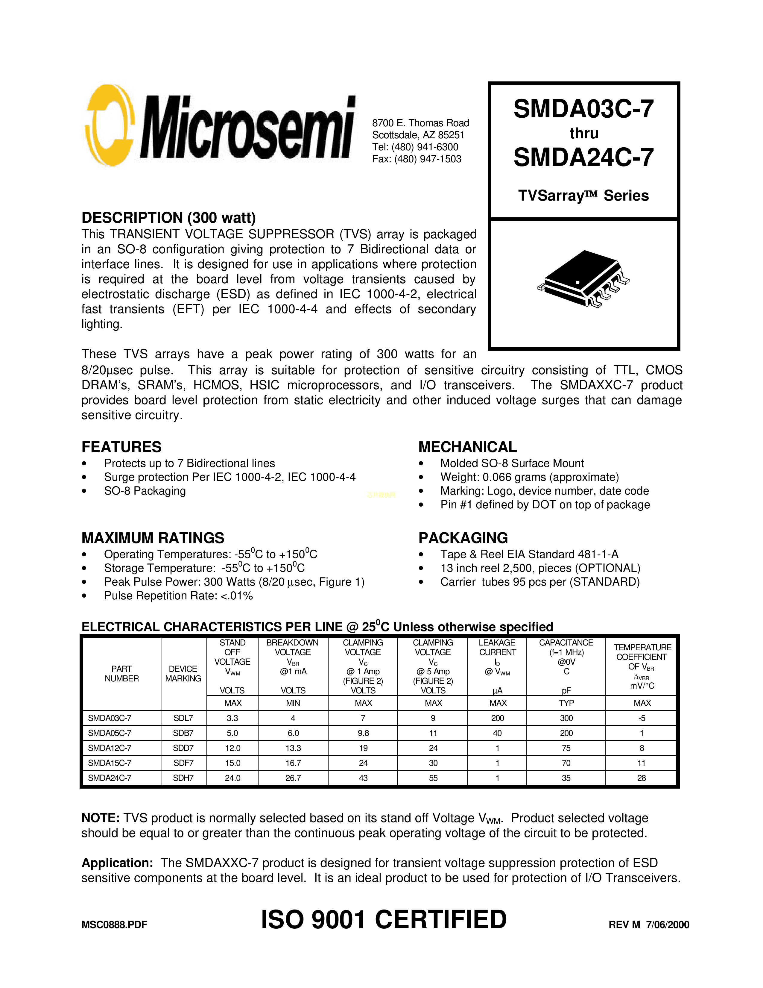 SMDA05C-7-TR13数据手册SO-8封装Microsemi(美高森美)PDF规格书,中英文下