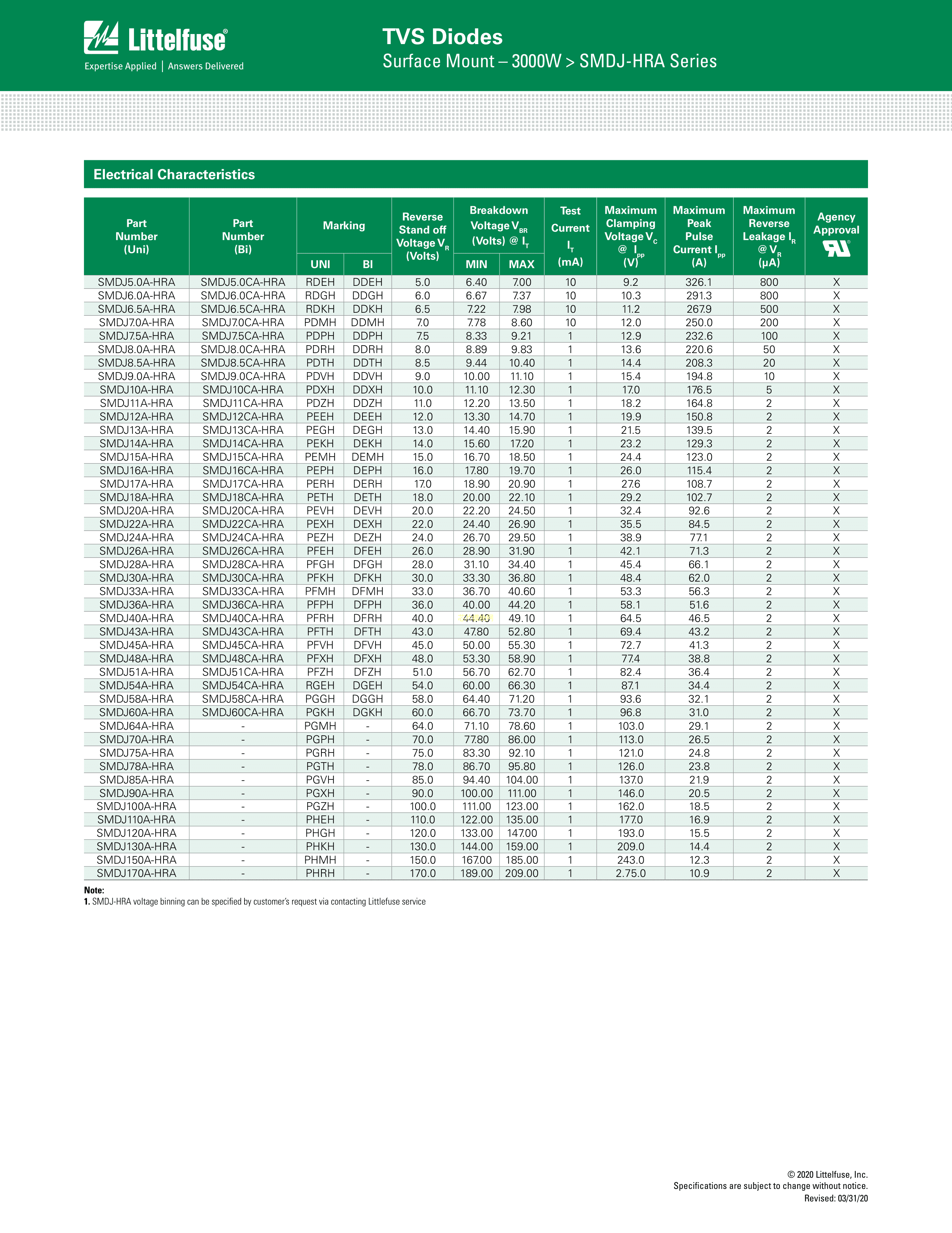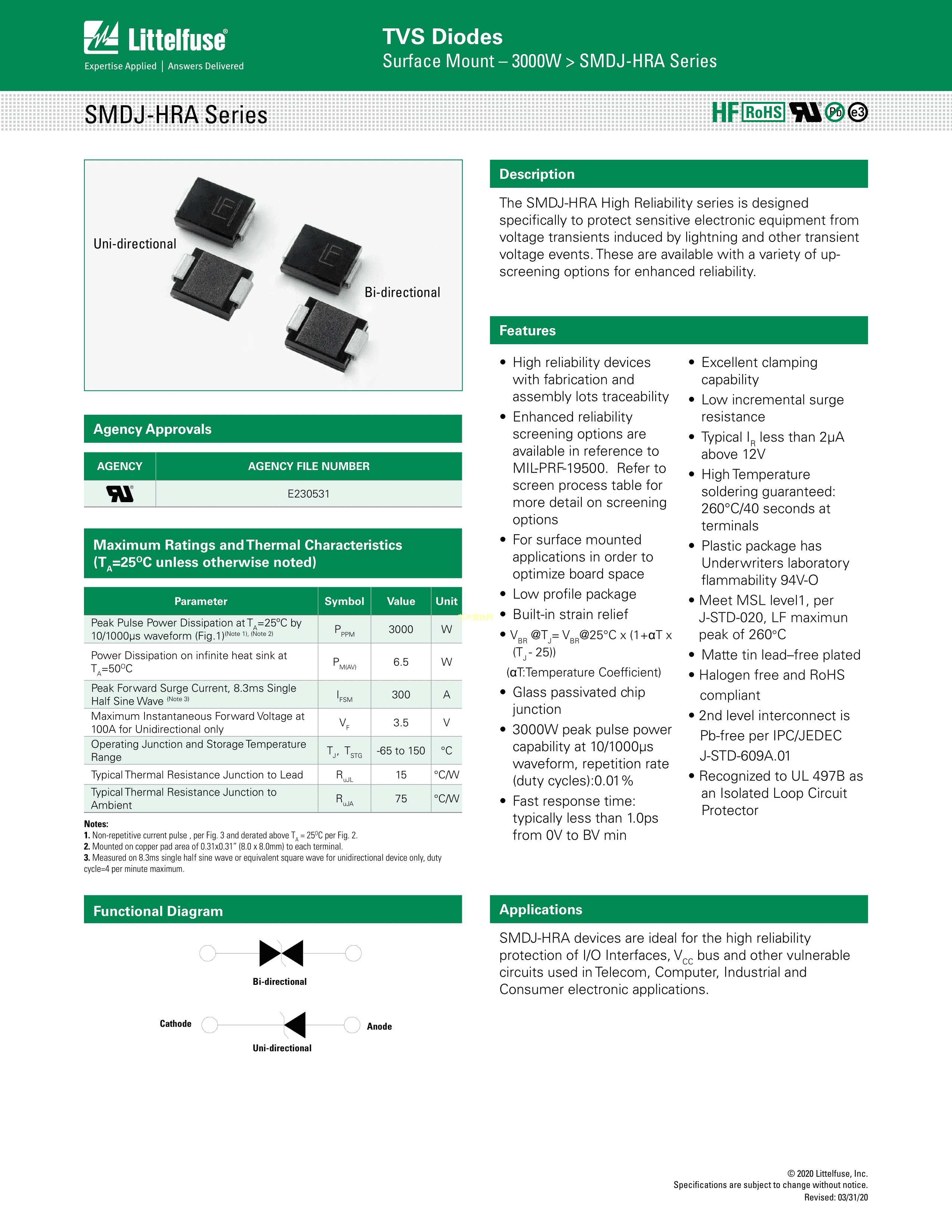 SMDJ10A-HRAT7数据手册DO-214AB(SMCJ)封装Littelfuse(美国力特)P