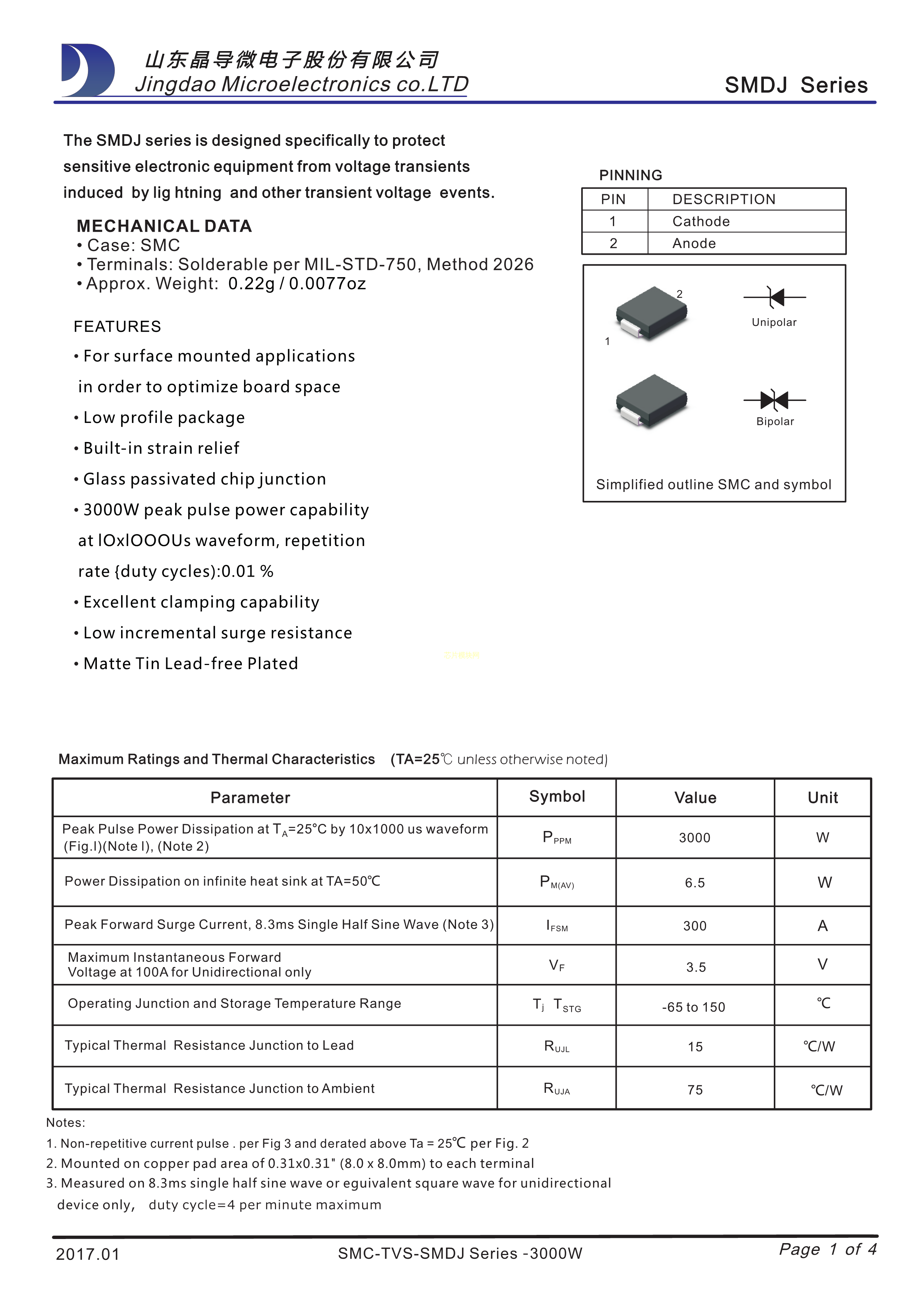 SMDJ28A数据手册SMC封装晶导微电子.pdf