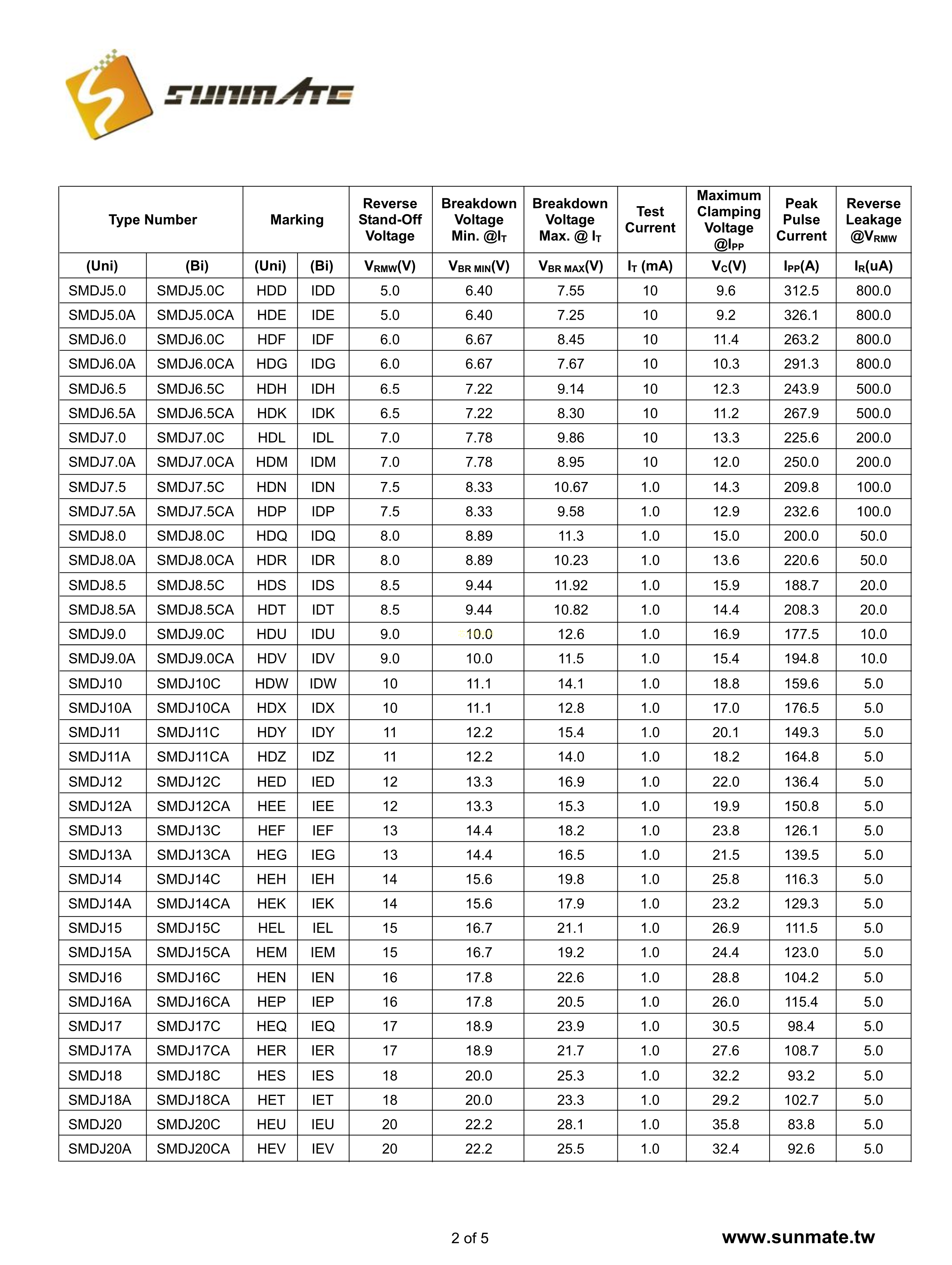 SMDJ30A数据手册SMC封装SUNMATE(森美特)PDF规格书,中英文下载