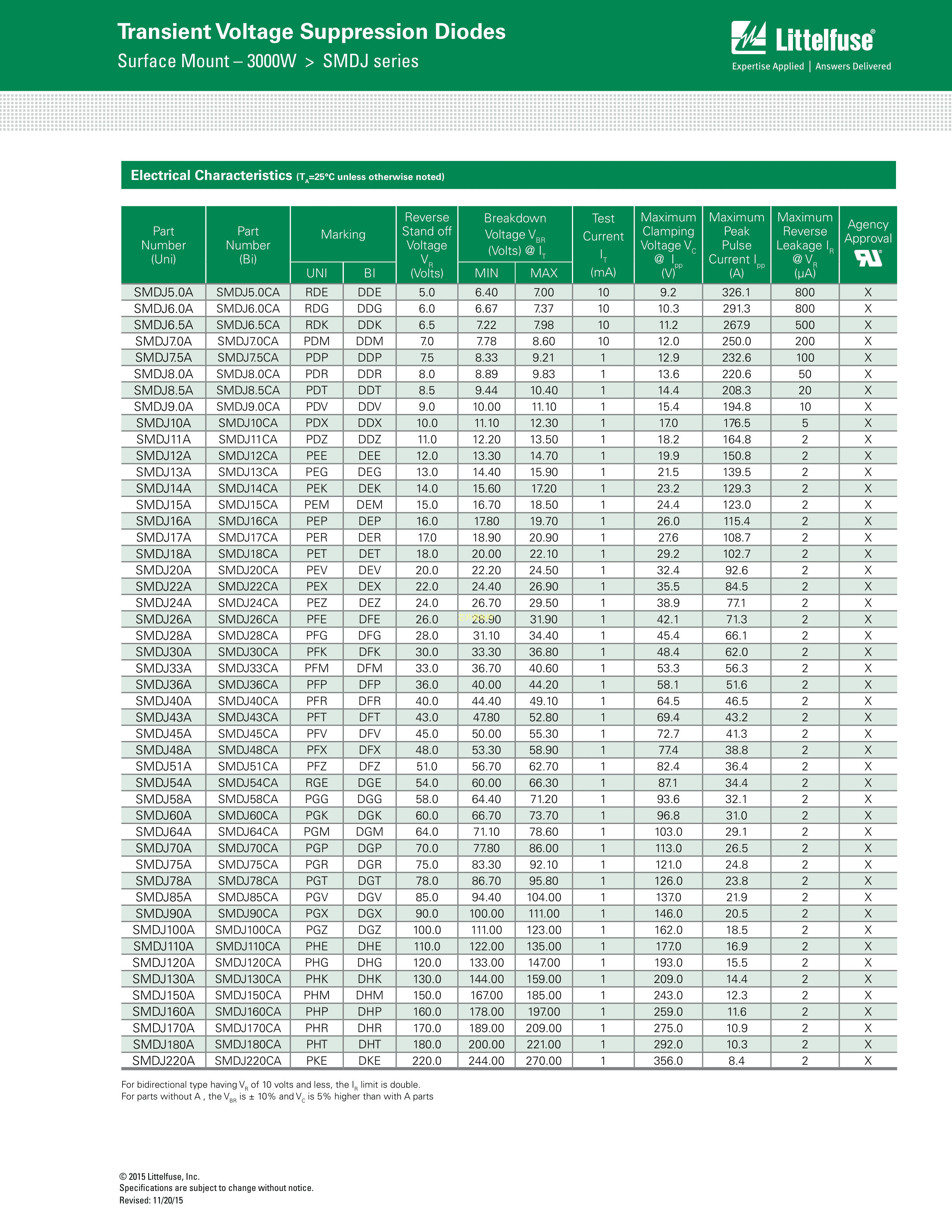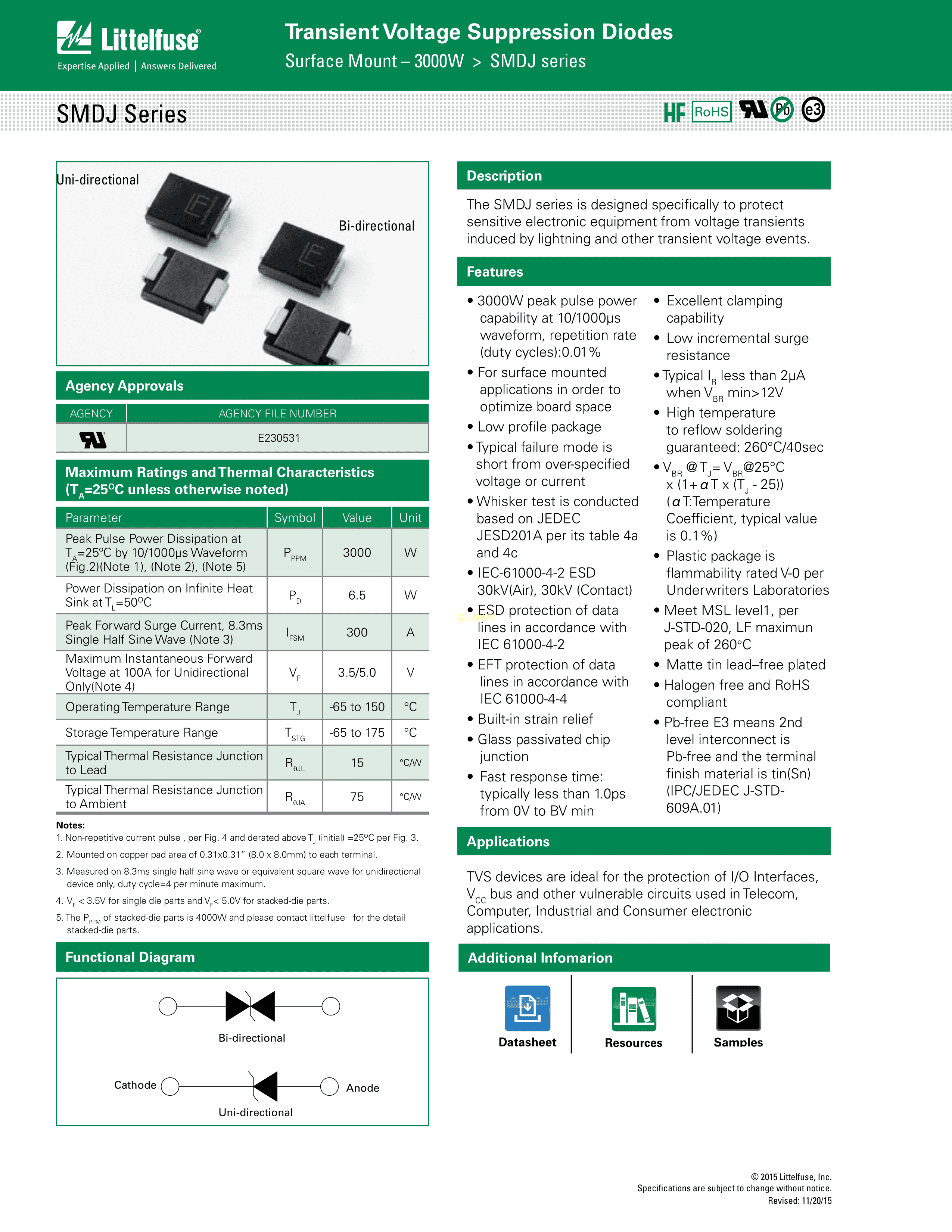 SMDJ36A数据手册SMC(DO-214AB)封装Littelfuse(美国力特)PDF规格书,中英文下载