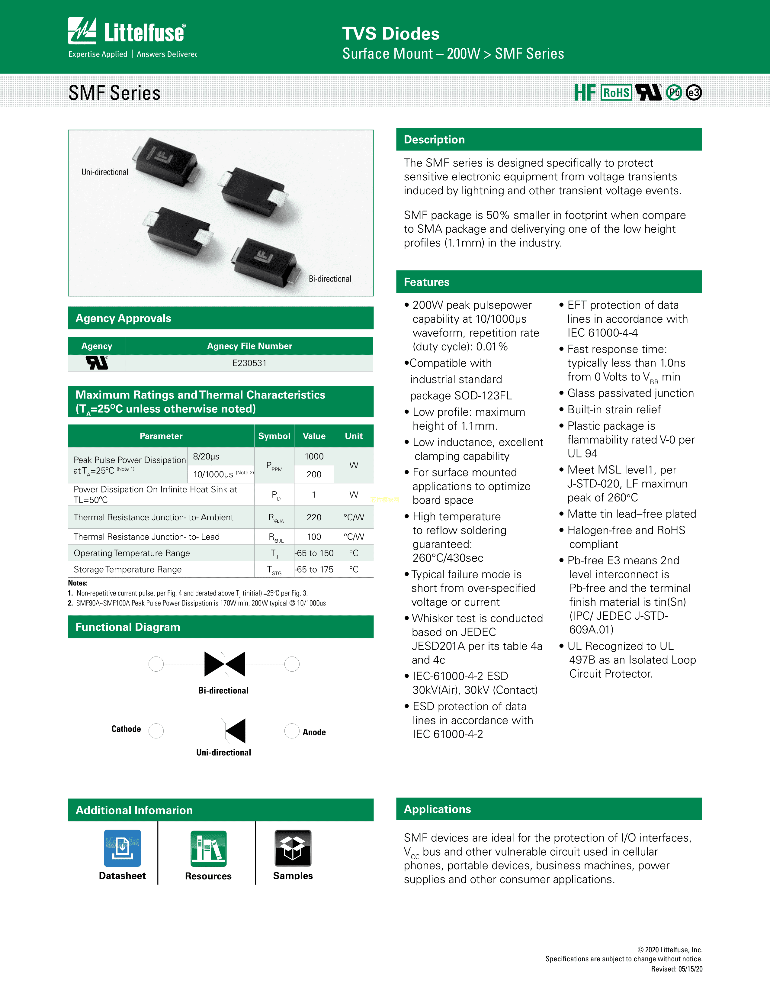 SMF160A数据手册-封装Littelfuse(美国力特)PDF规格书,中英文下载