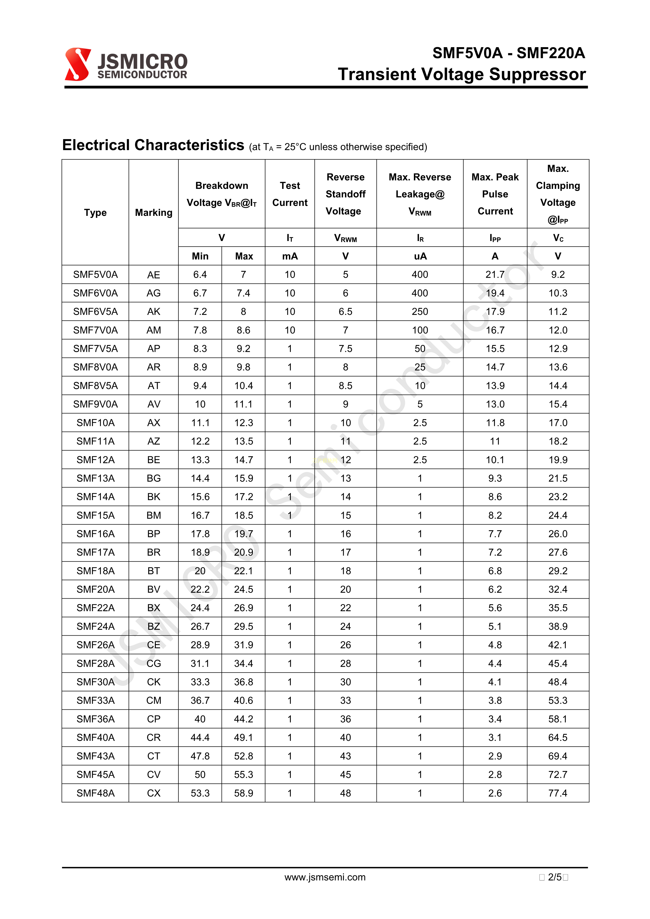 SMF17A数据手册SOD-123FL封装JSMSEMI(杰盛微)PDF规格书,中英文下载