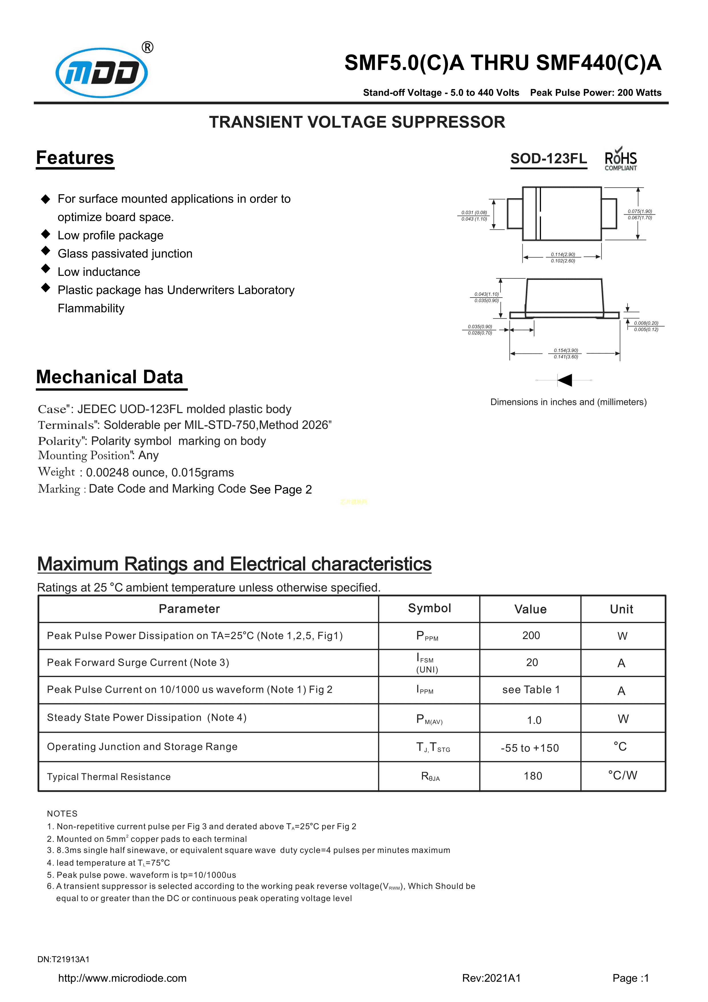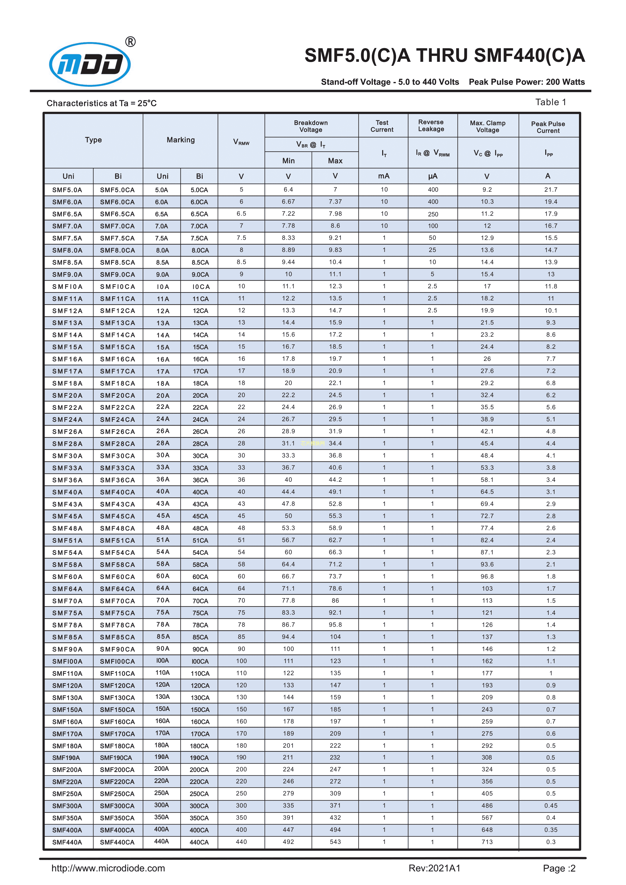 SMF24CA数据手册SOD-123F封装MDDPDF规格书,中英文下载