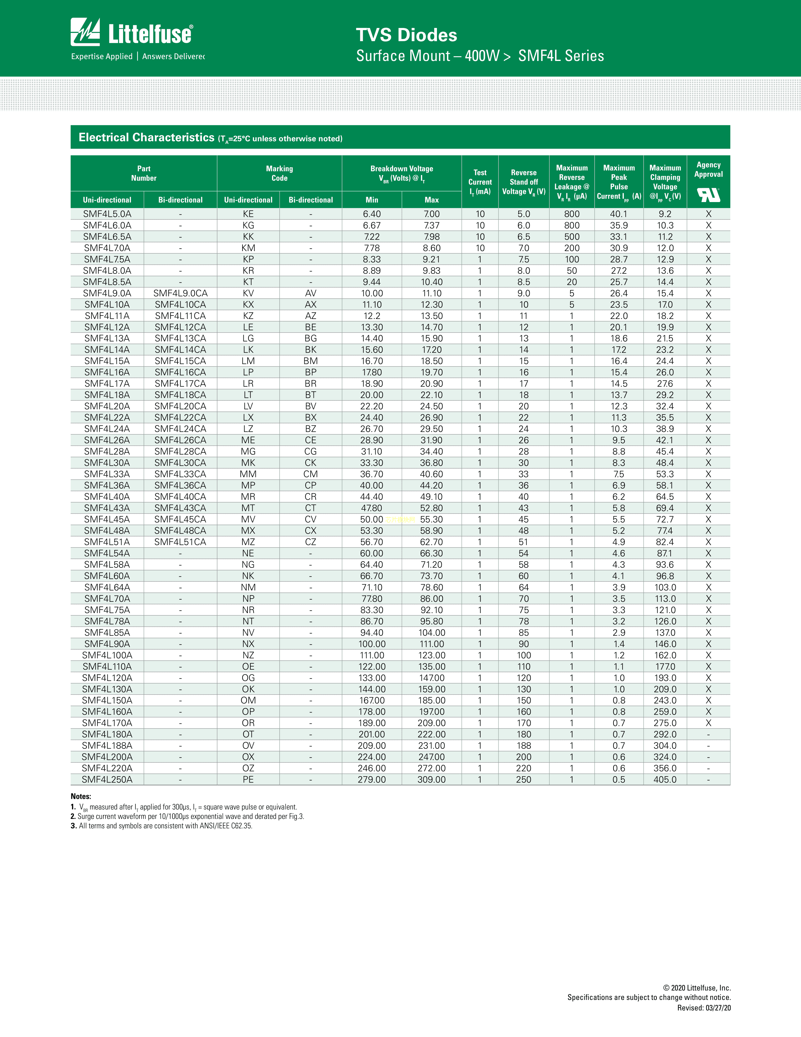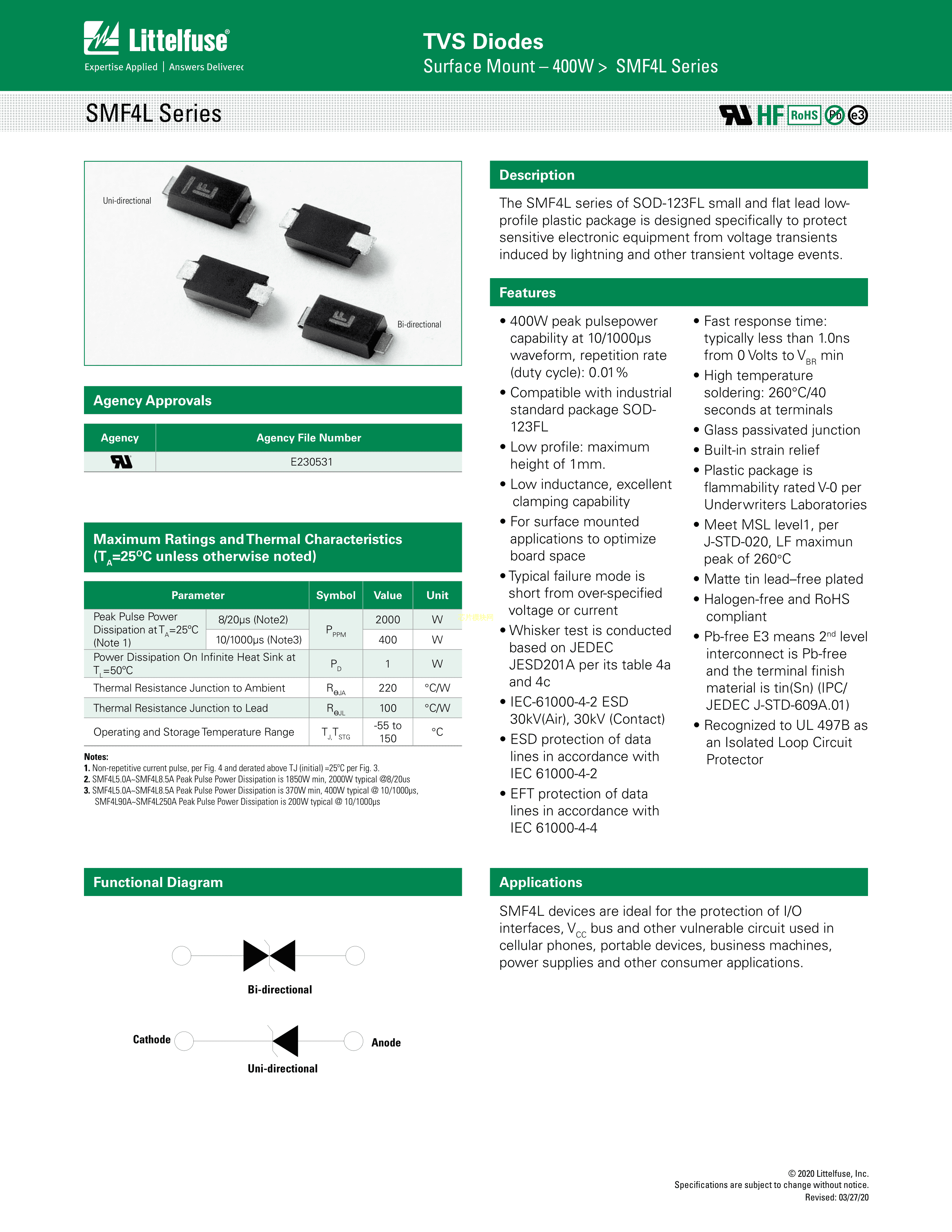 SMF4L5.0A数据手册SOD-123FL封装Littelfuse(美国力特)PDF规格书,中英文下载