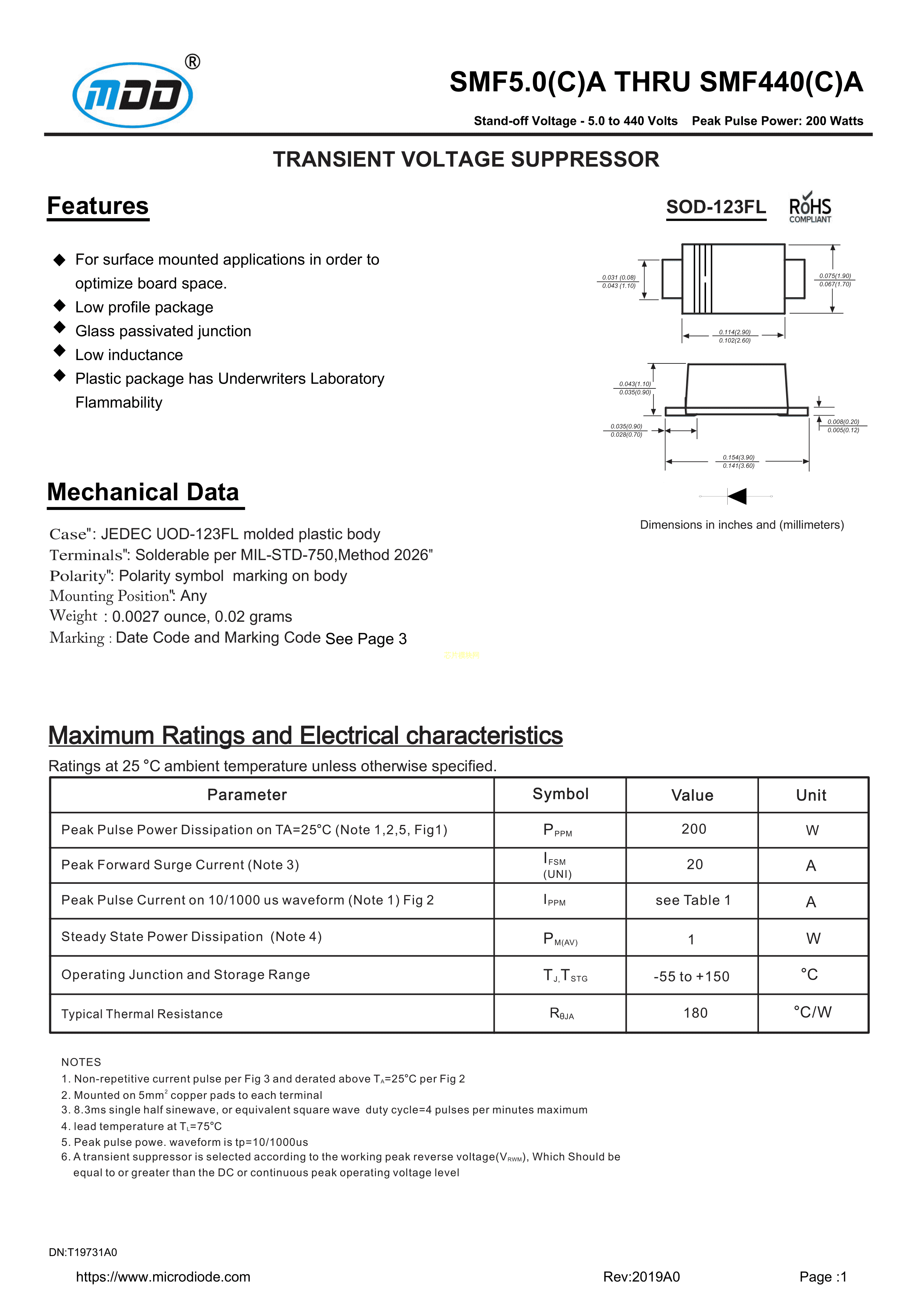 SMF58A数据手册SO-123FL封装MDDPDF规格书,中英文下载