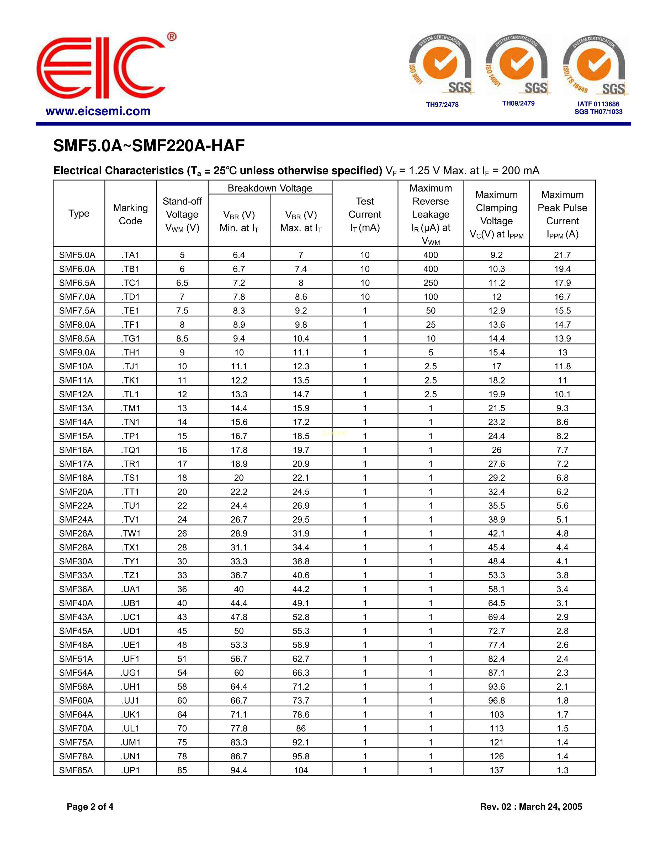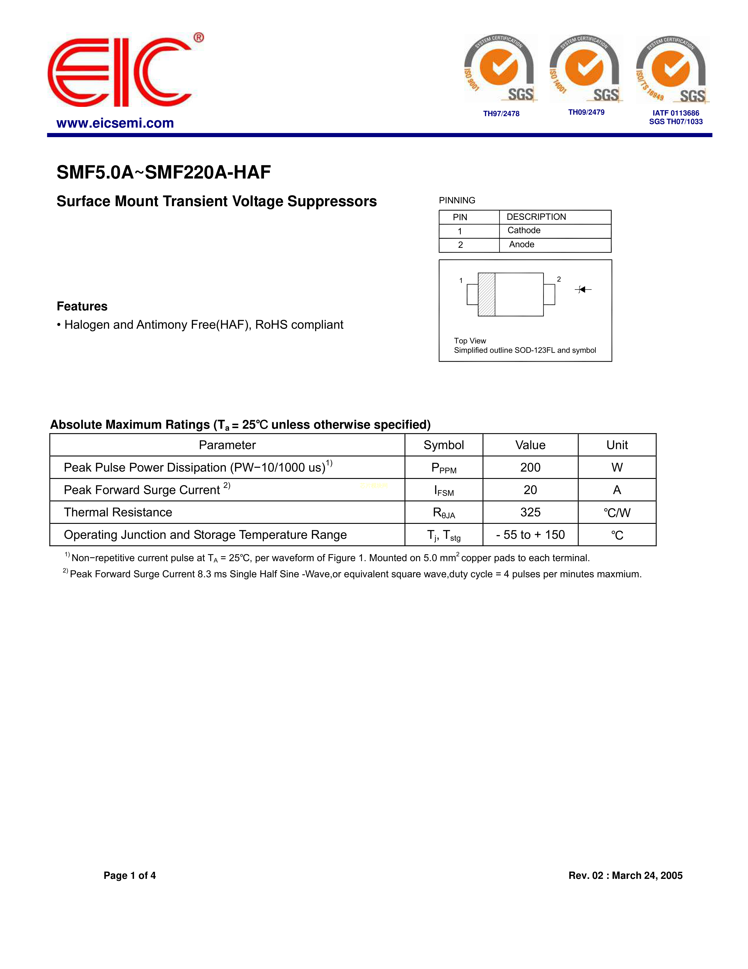 SMF7.0A-HAF数据手册SOD-123FL封装EICPDF规格书,中英文下载