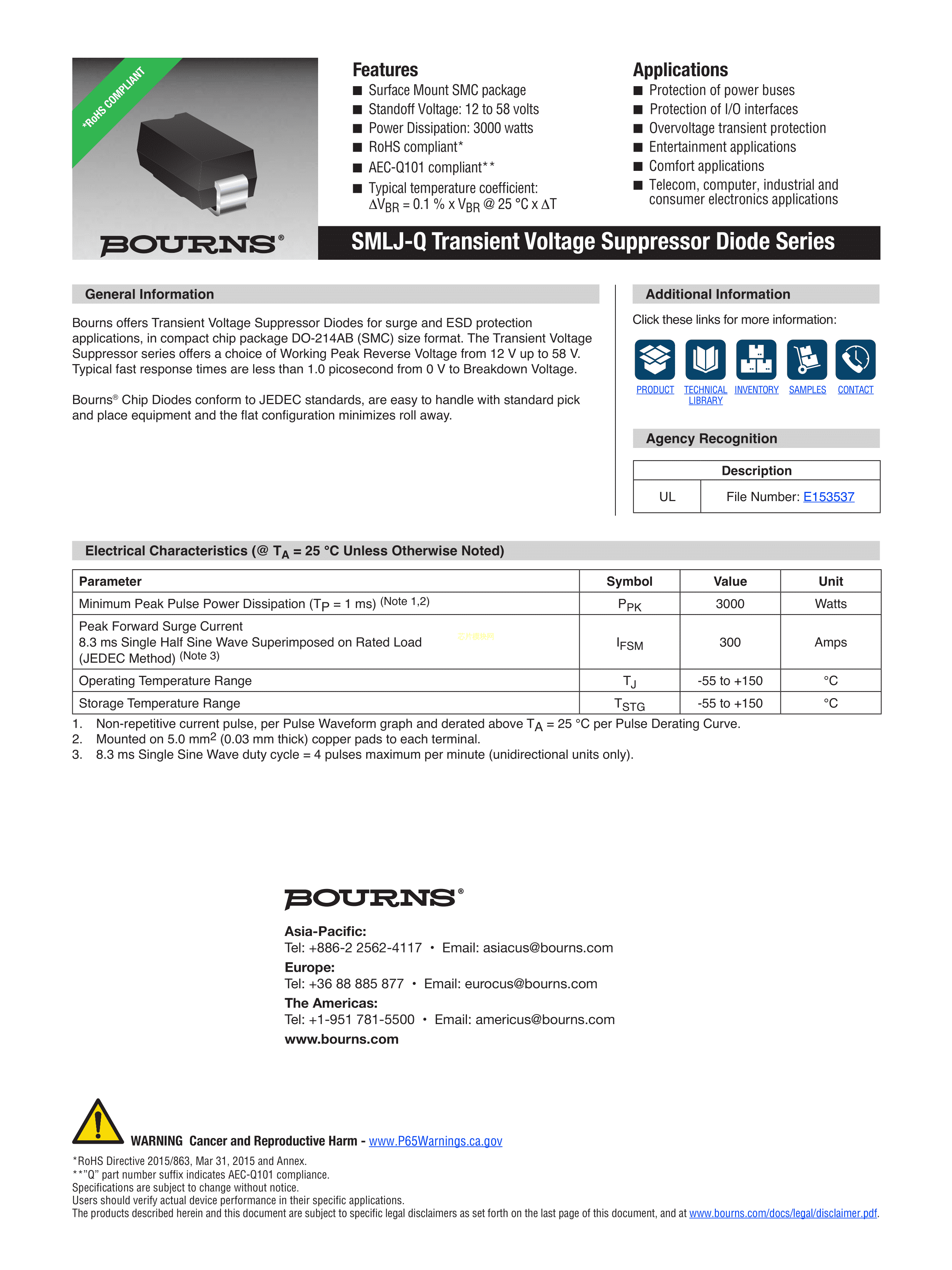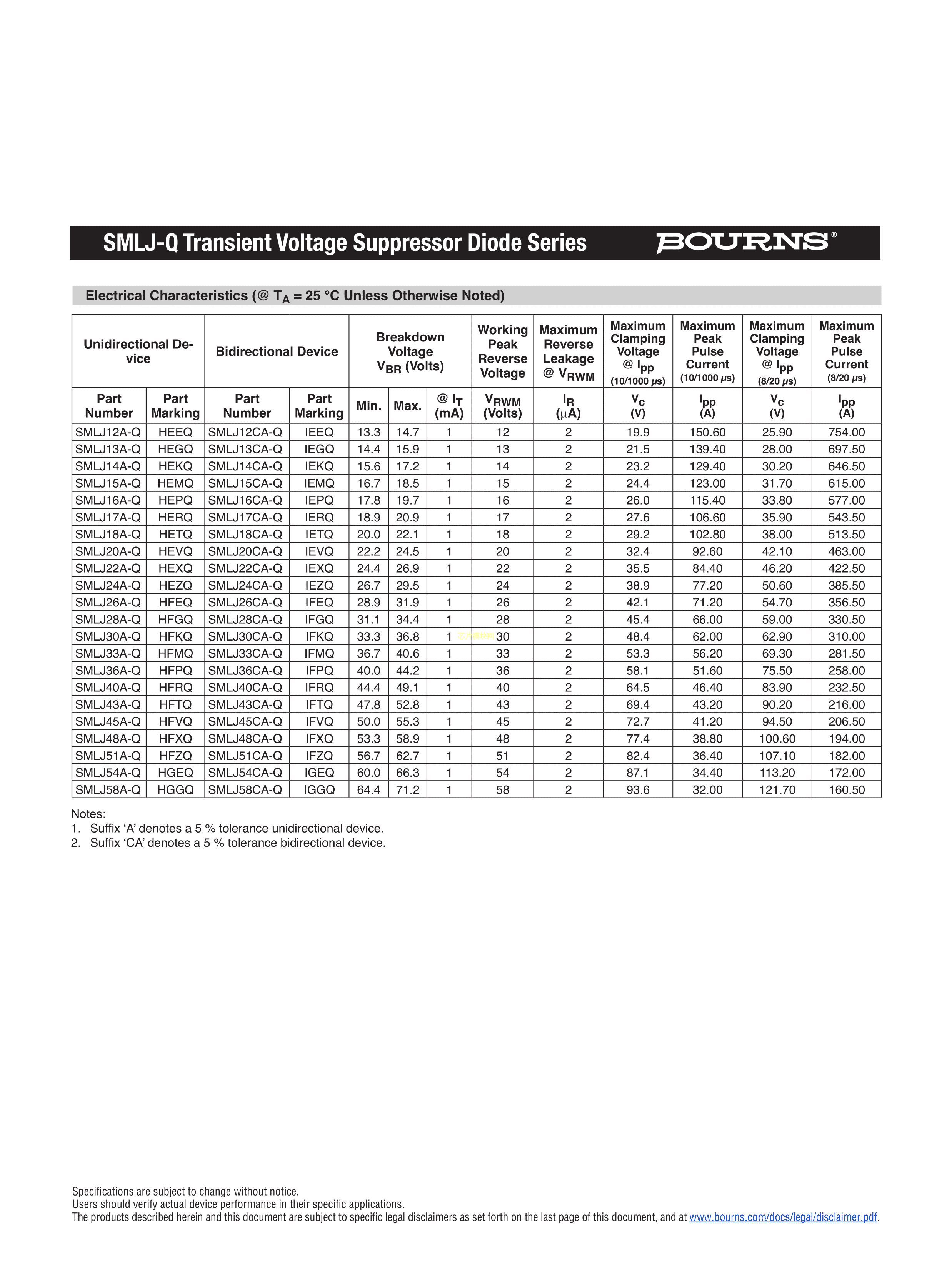 SMLJ17CA-Q数据手册SMC(DO-214AB)封装BOURNSPDF规格书,中英文下载
