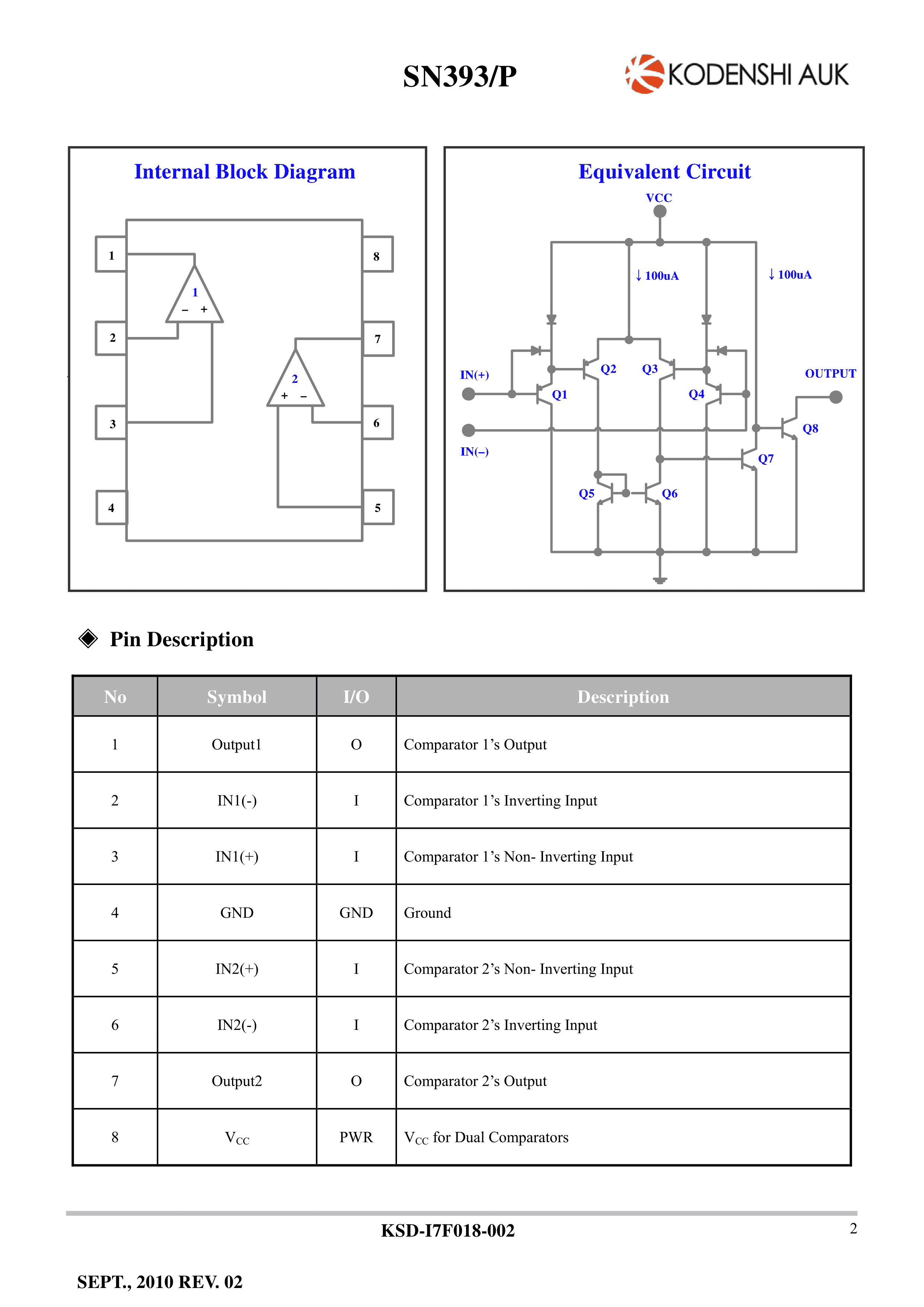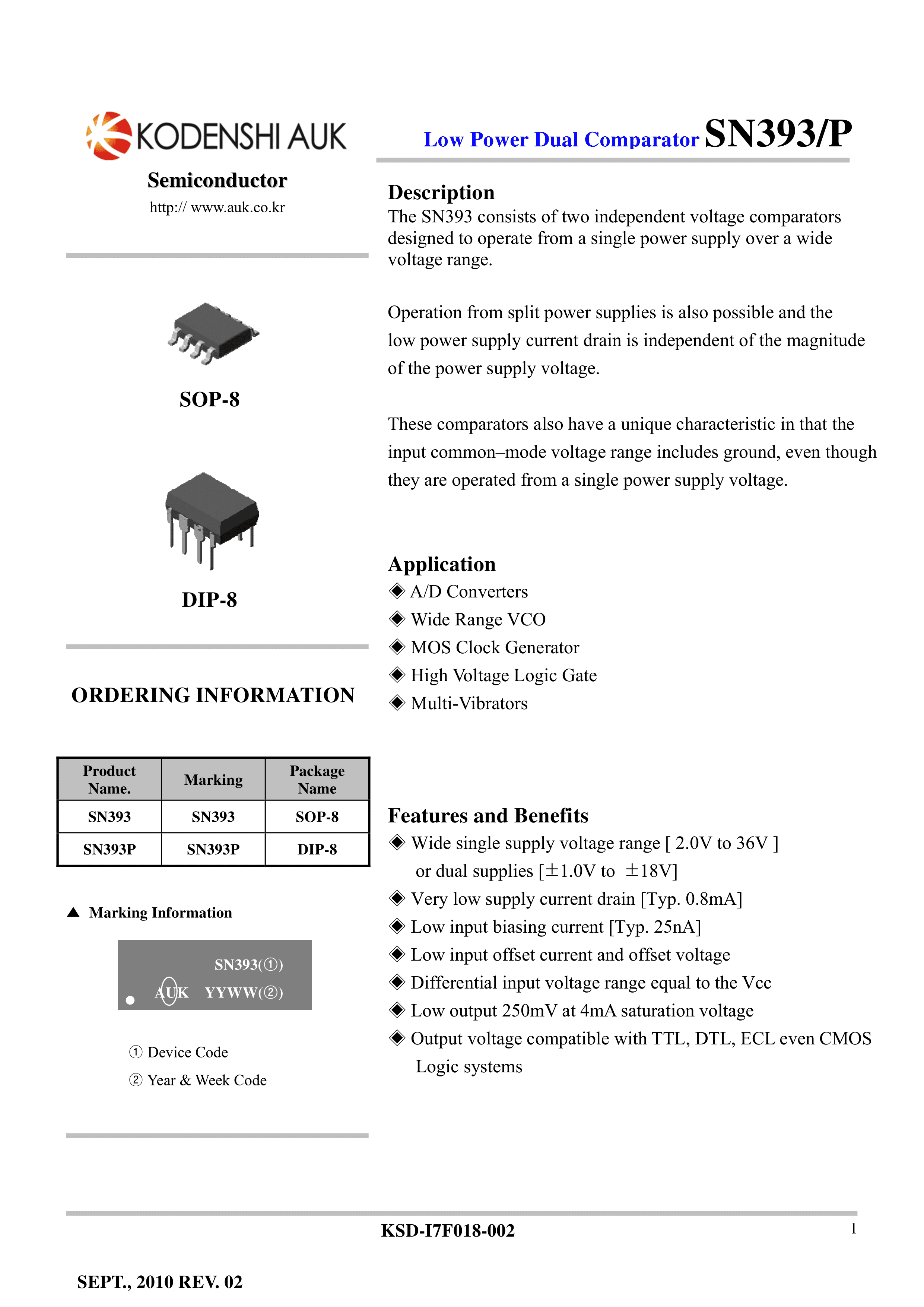 SN393T数据手册SOIC-8_150mil封装KODENSHI AUK(光电子)PDF规格书,中
