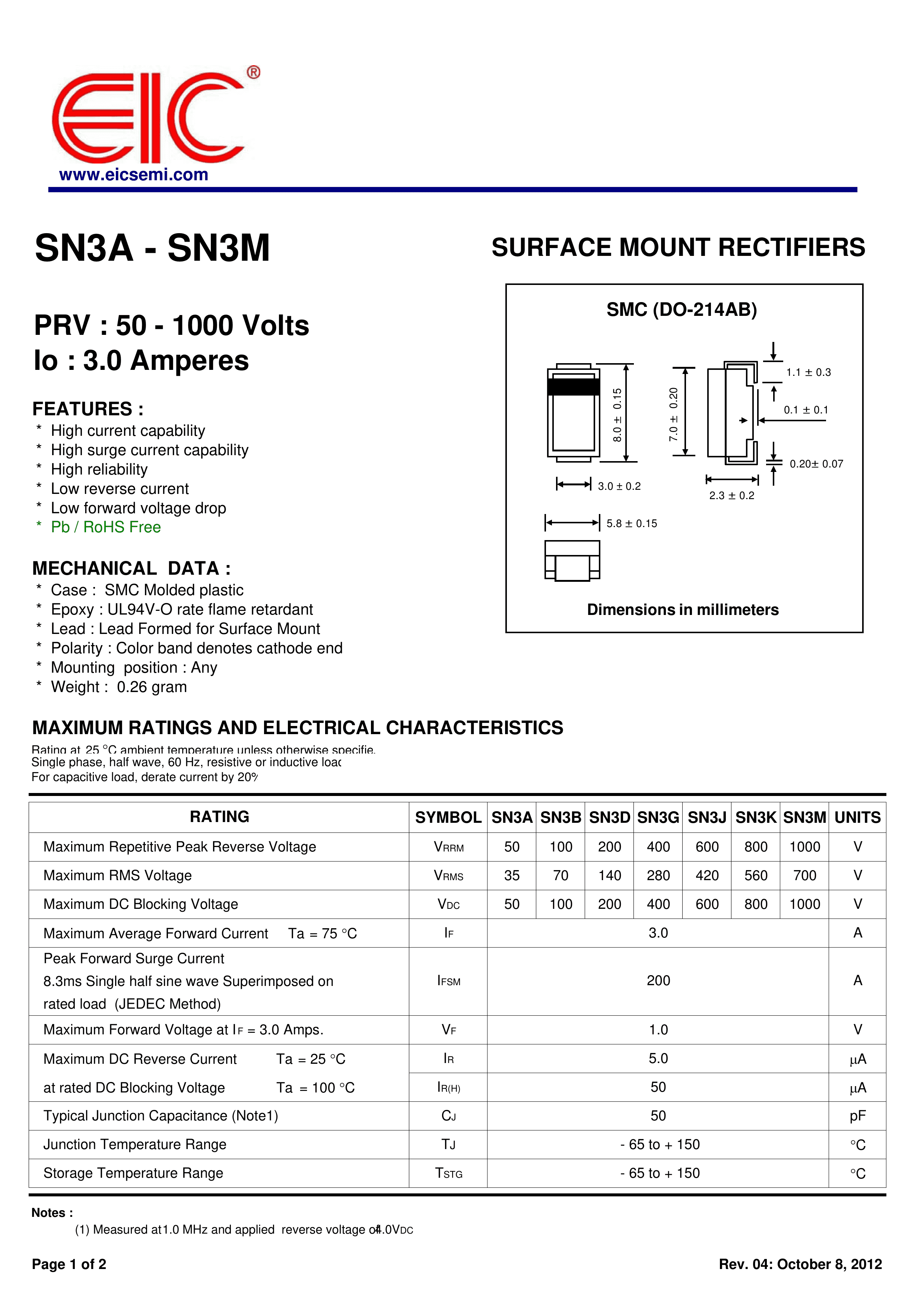 SN3M数据手册SMC封装EIC.pdf