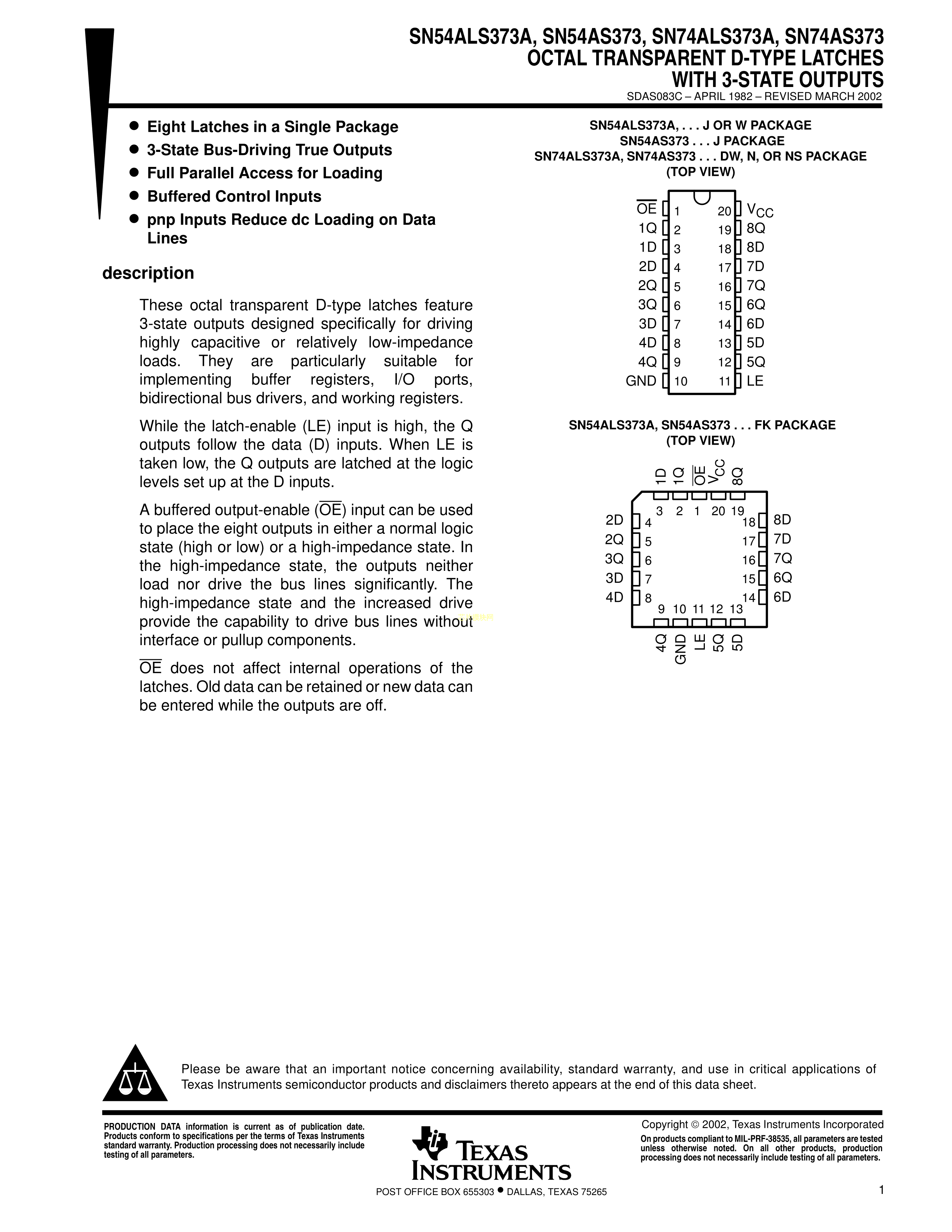 SN74AS373NSR数据手册SO-20封装TI(德州仪器)PDF规格书,中英文下载