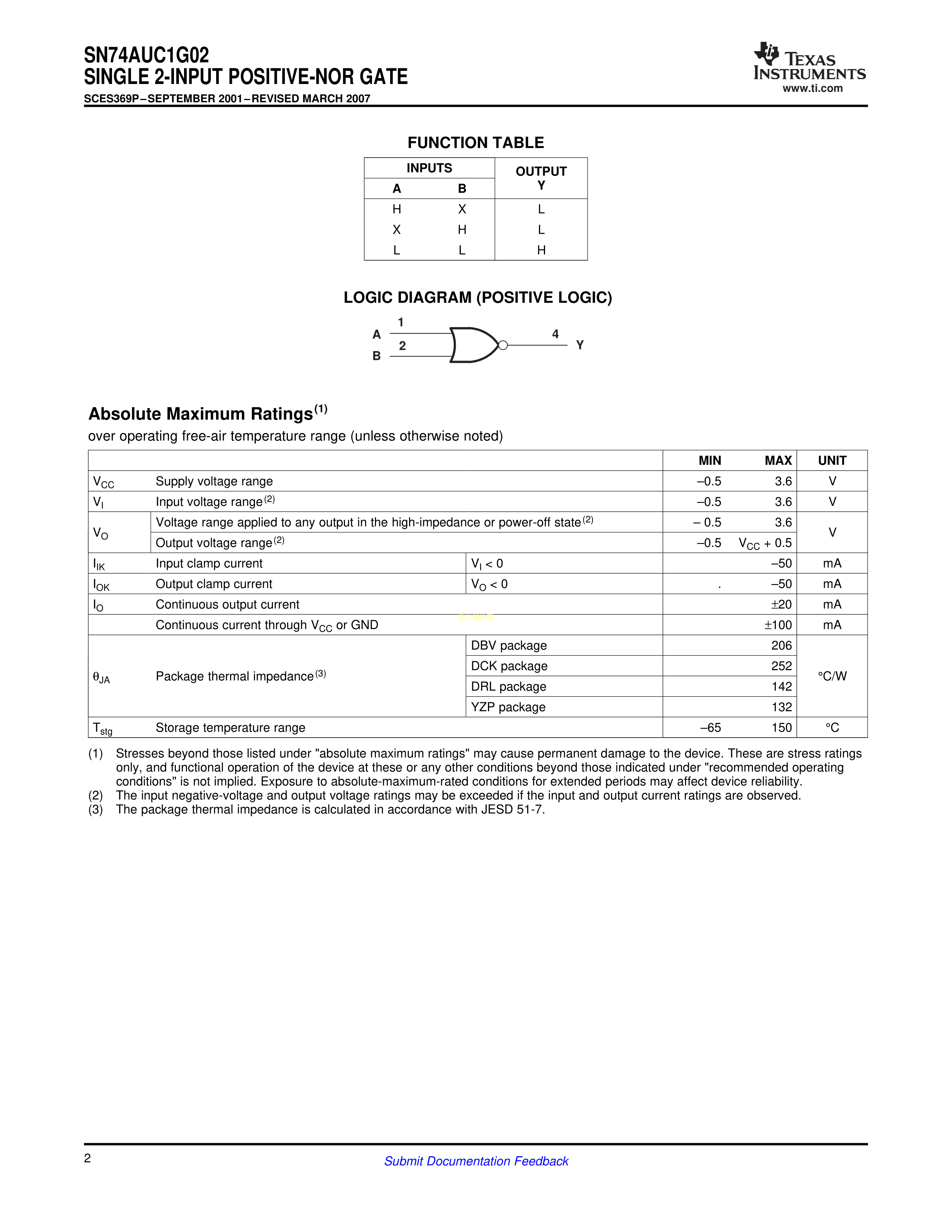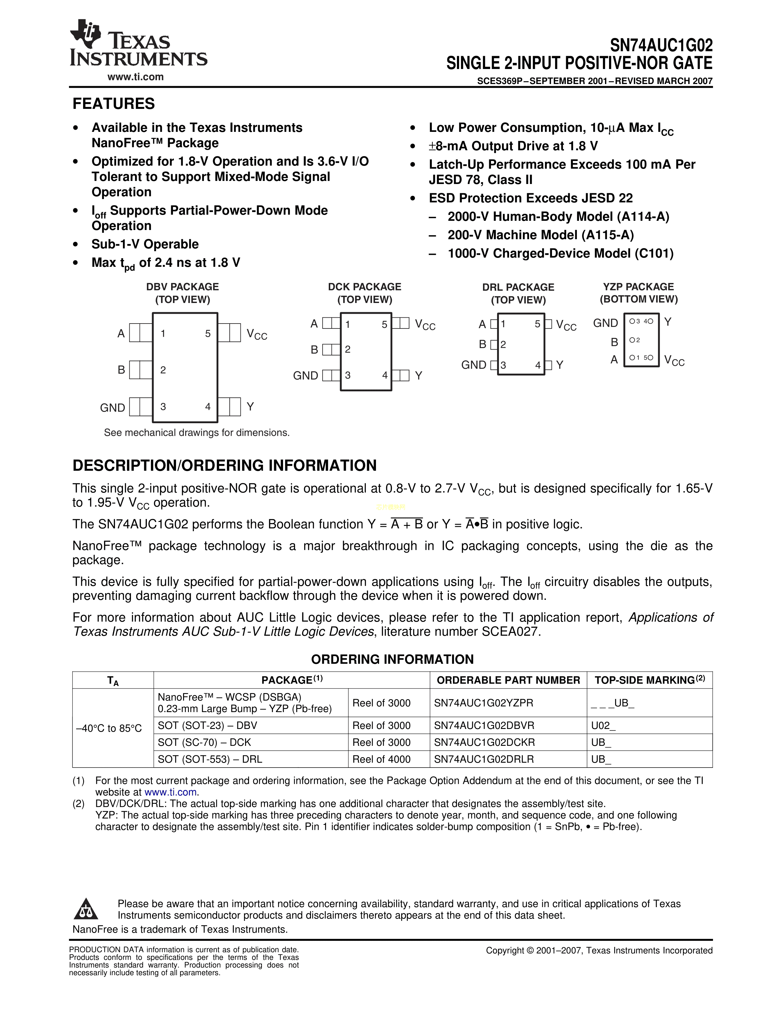 SN74AUC1G02DBVR数据手册SOT-23-5封装TI(德州仪器)PDF规格书,中英文下载