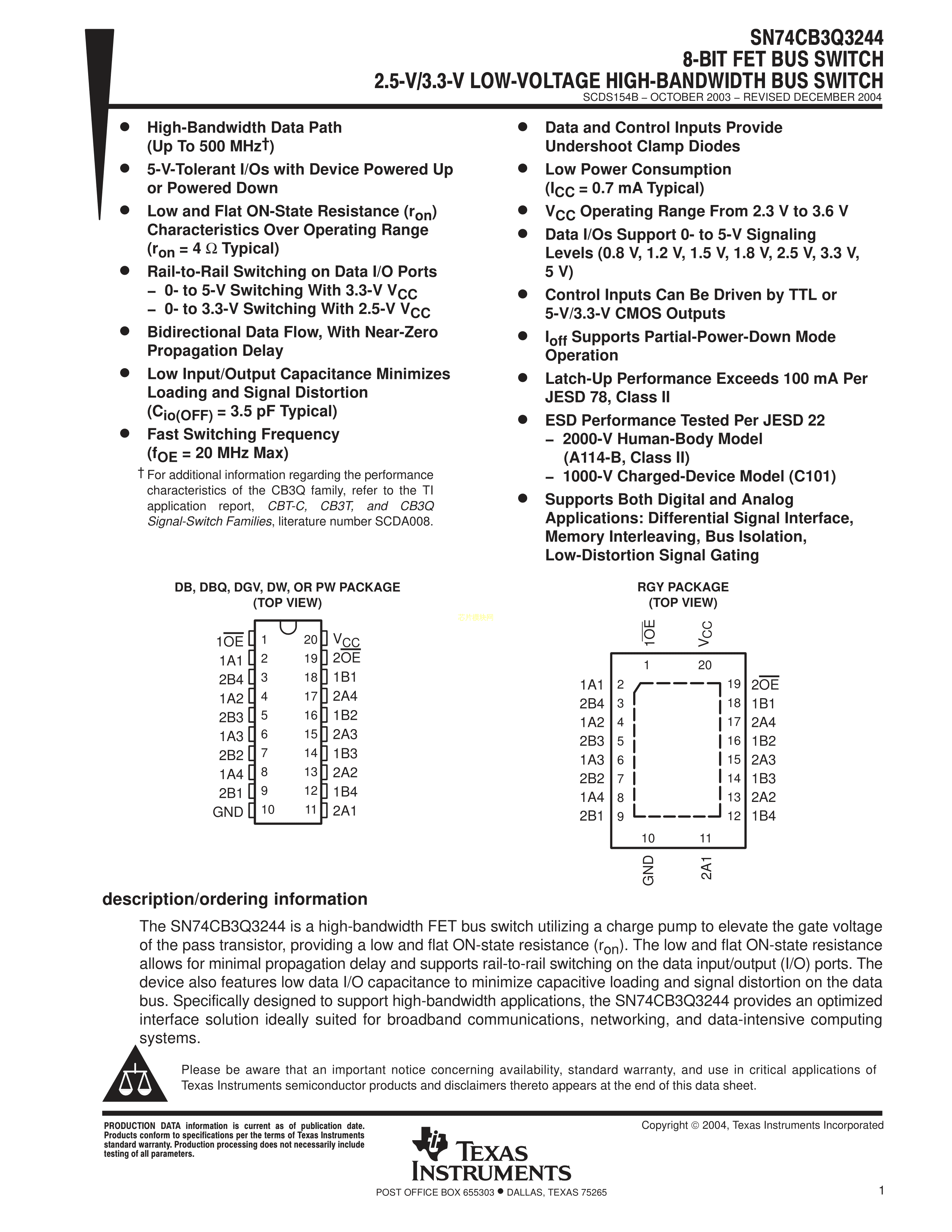 SN74CB3Q3244DGVR数据手册TVSOP-20封装TI(德州仪器)PDF规格书,中英文下载