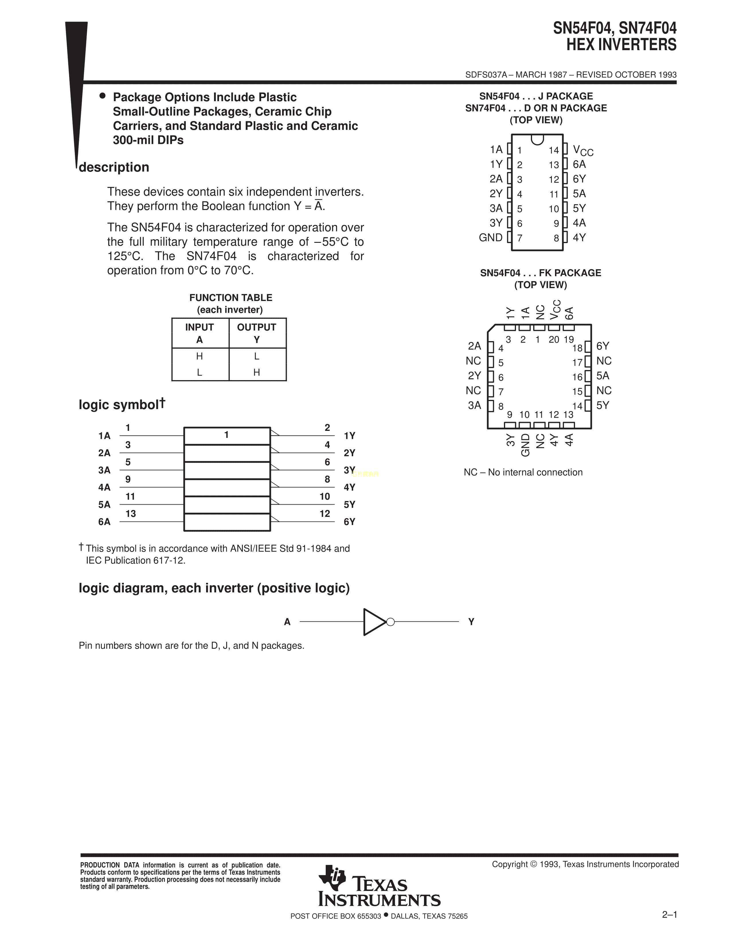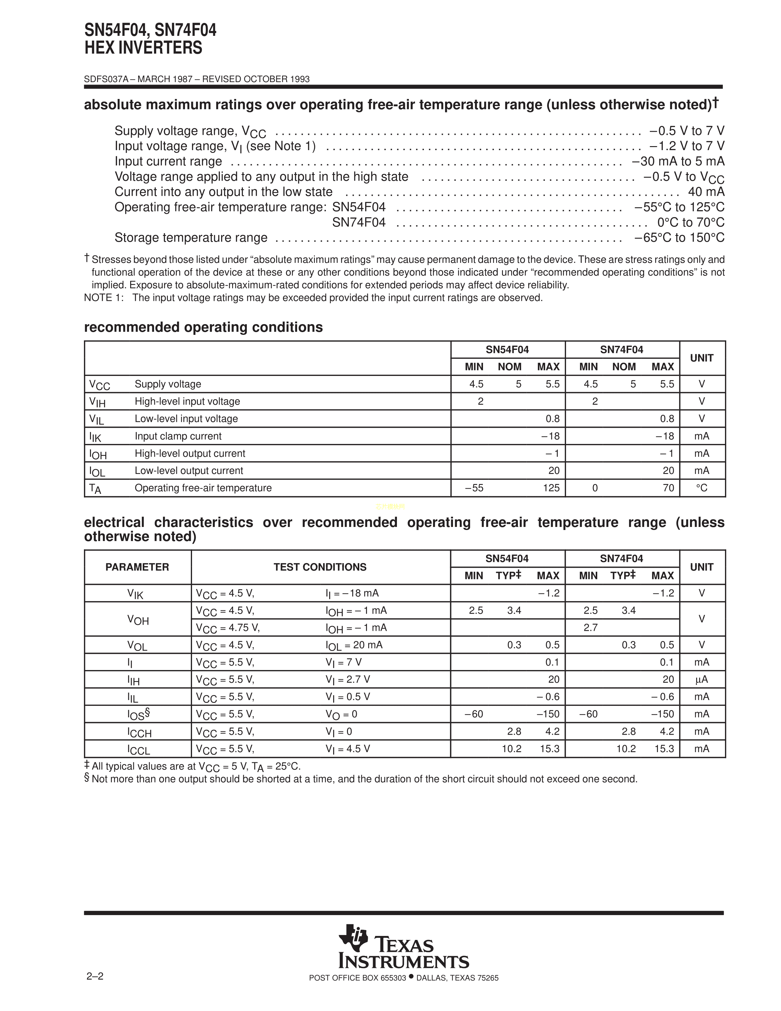 SN74F04NSR数据手册SOIC-14_208mil封装TI(德州仪器)PDF规格书,中英文下载