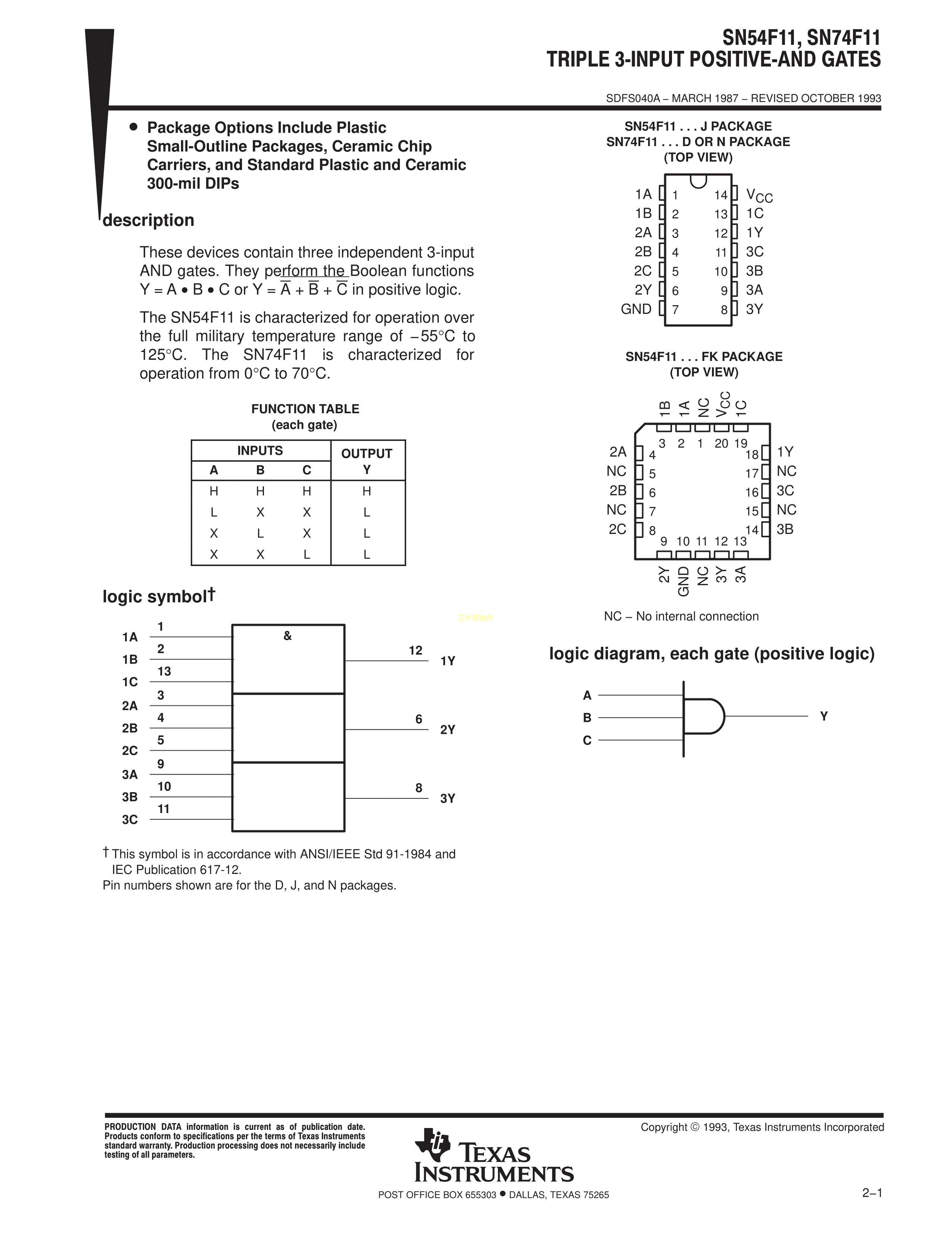 SN74F11DR数据手册SOIC-14_150mil封装TI(德州仪器)PDF规格书,中英文下载