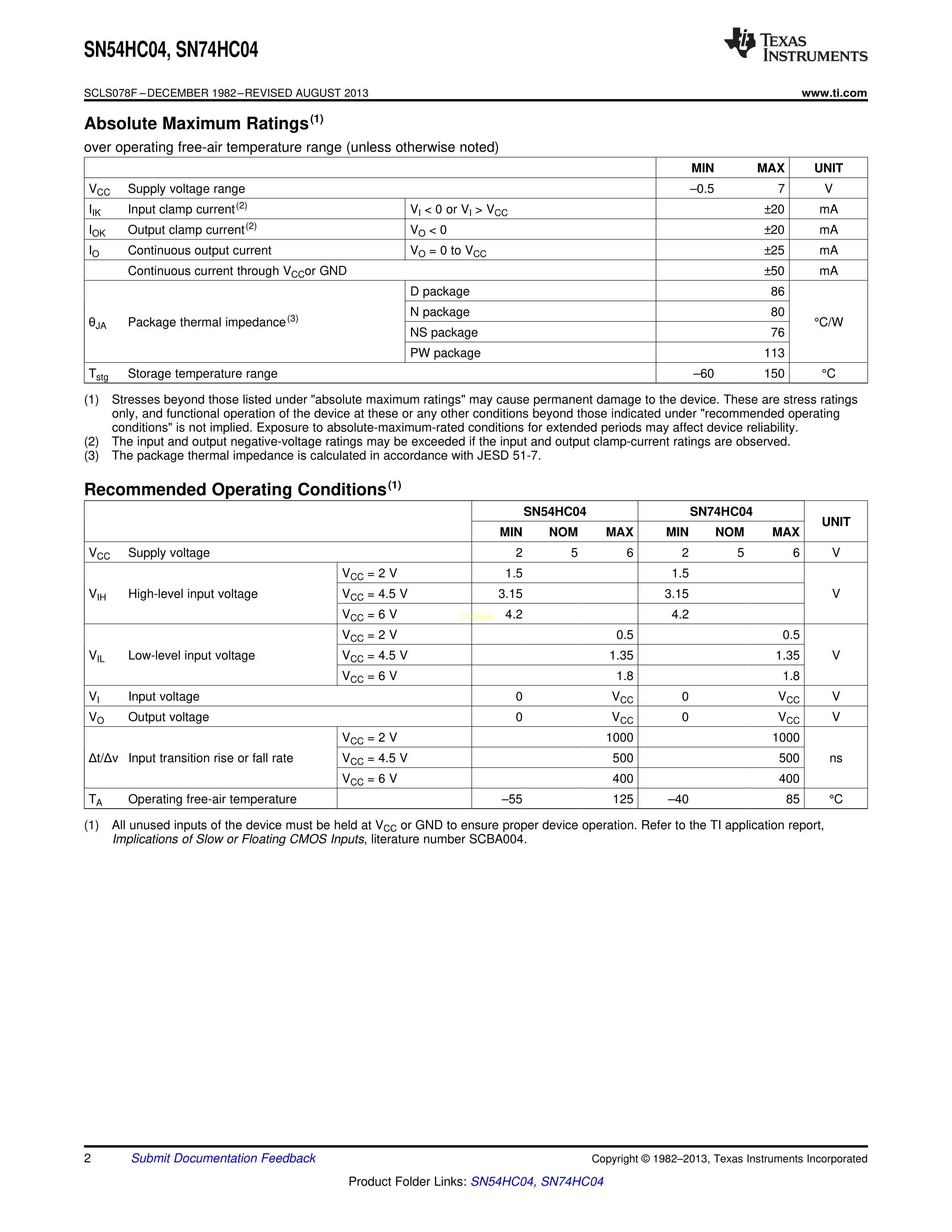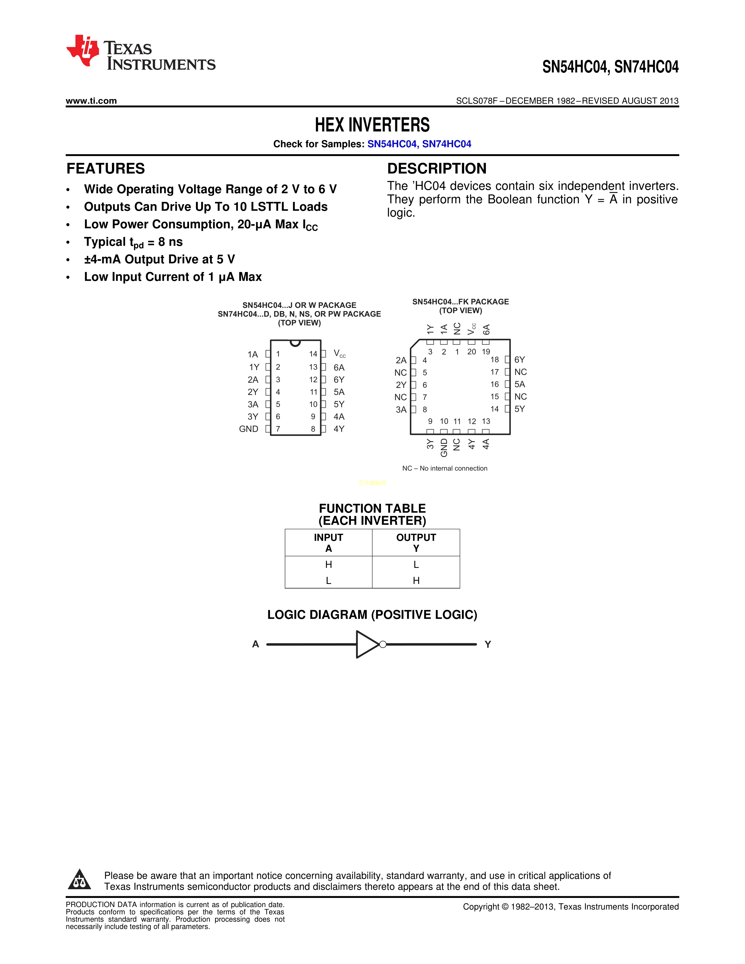 SN74HC04NSR数据手册SOIC-14_208mil封装TI(德州仪器)PDF规格书,中英文下