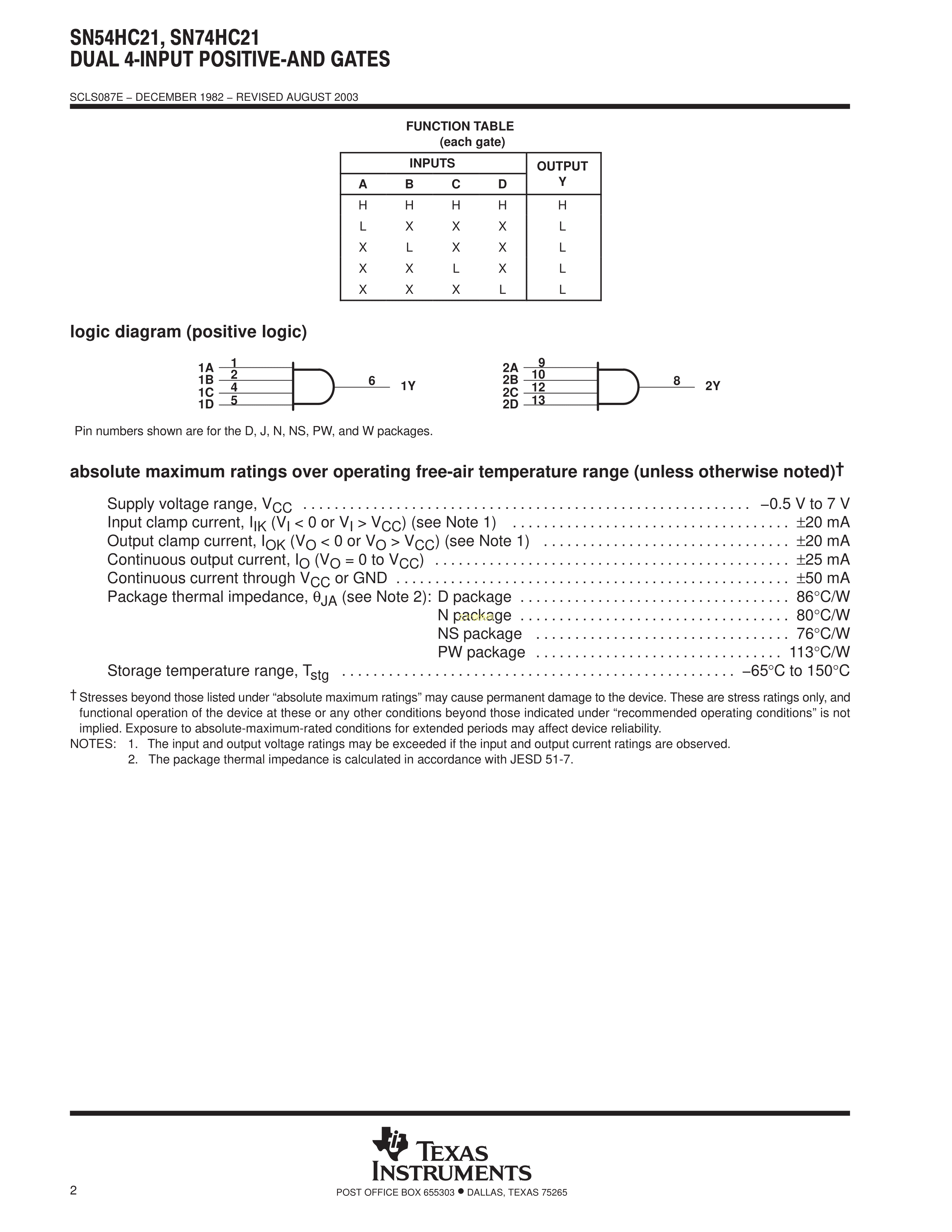 SN74HC21PWR数据手册TSSOP-14封装TI(德州仪器)PDF规格书,中英文下载