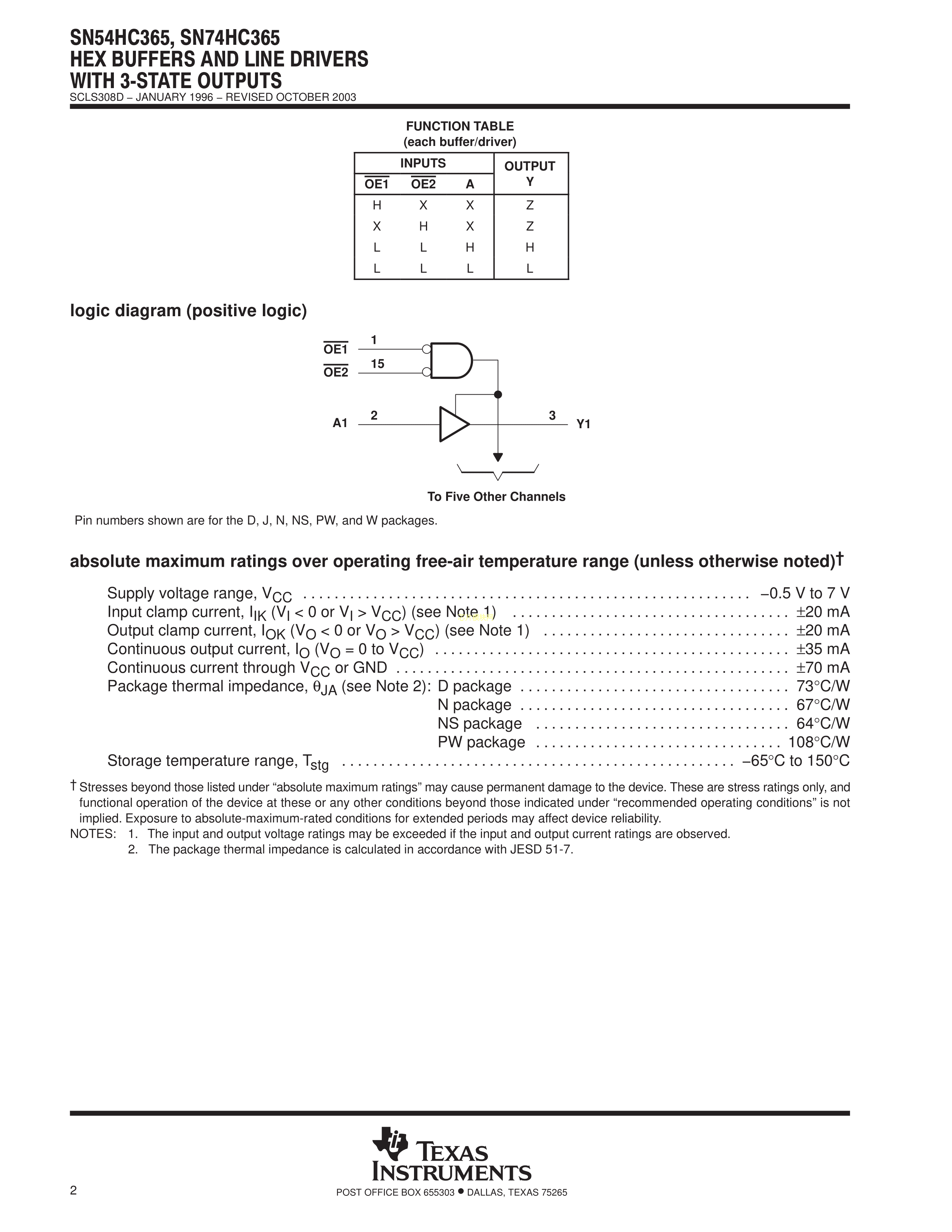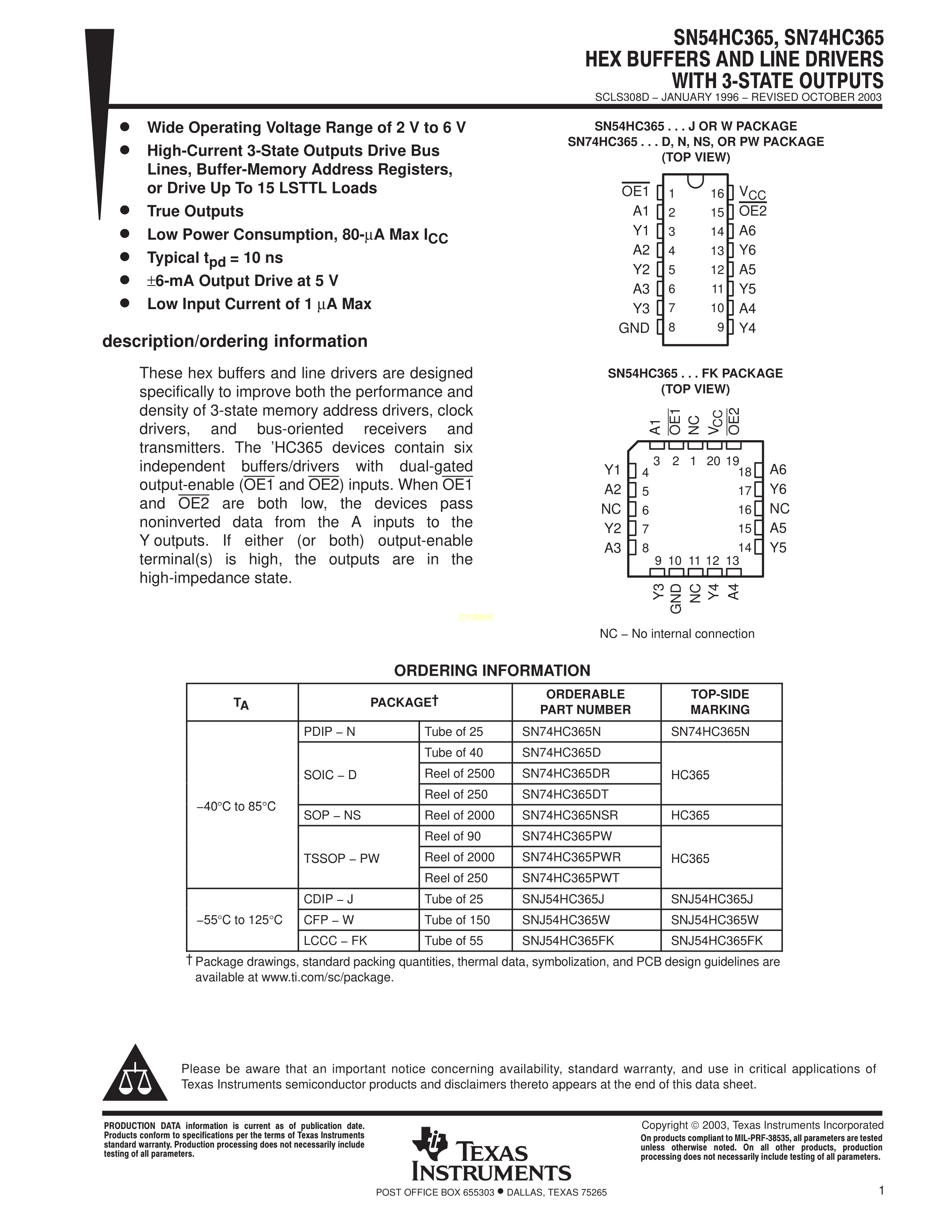 SN74HC365DR数据手册SOIC-16_150mil封装TI(德州仪器)PDF规格书,中英文下