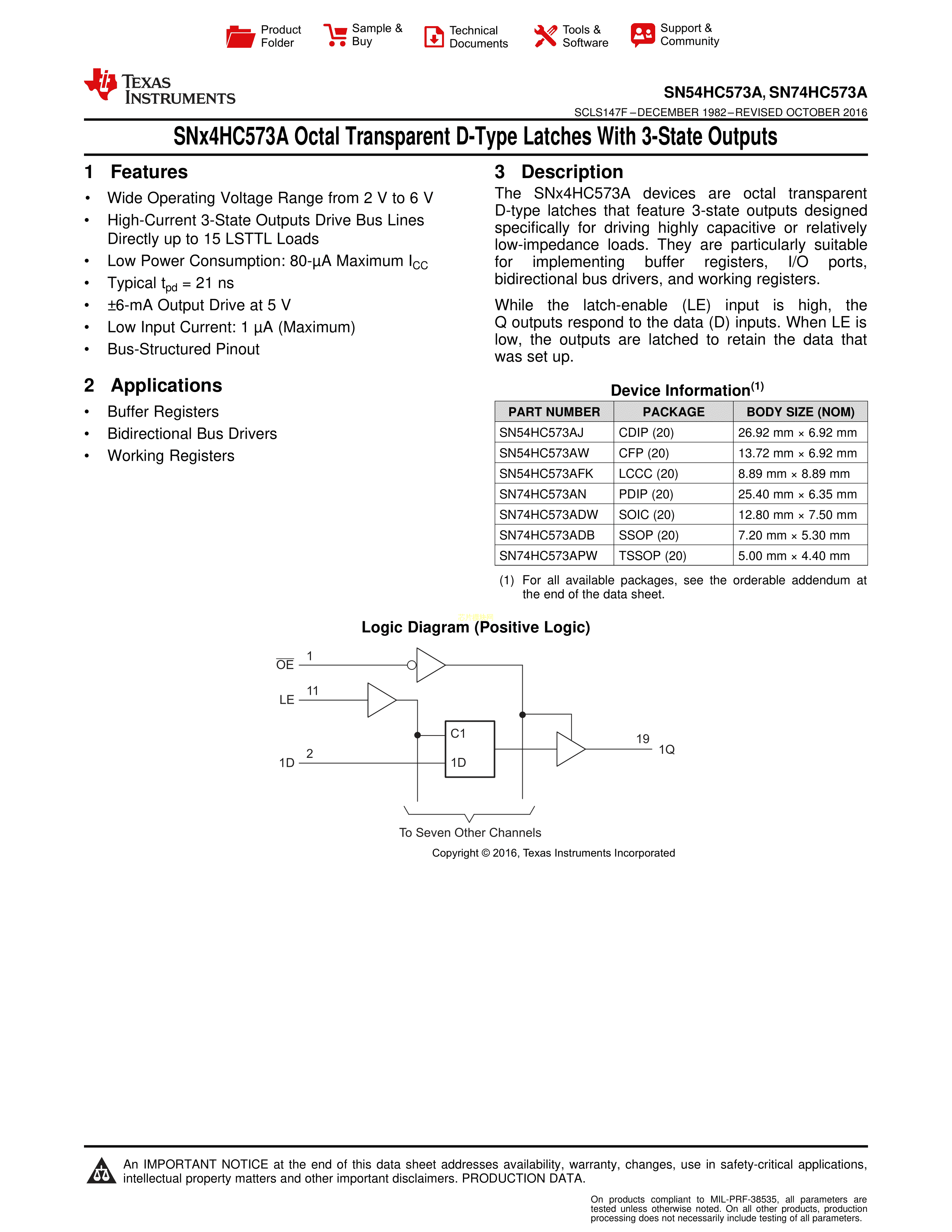 SN74HC573AN数据手册DIP-20封装TI(德州仪器)PDF规格书,中英文下载