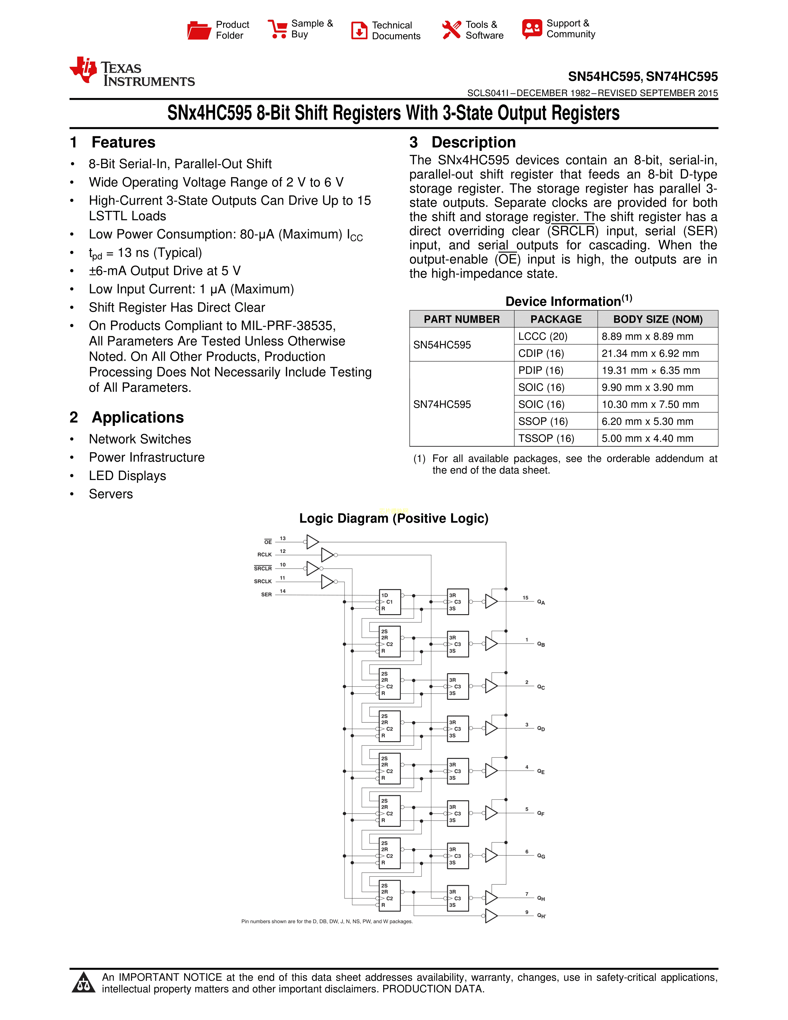 SN74HC595PWR数据手册TSSOP-16封装TI(德州仪器)PDF规格书,中英文下载