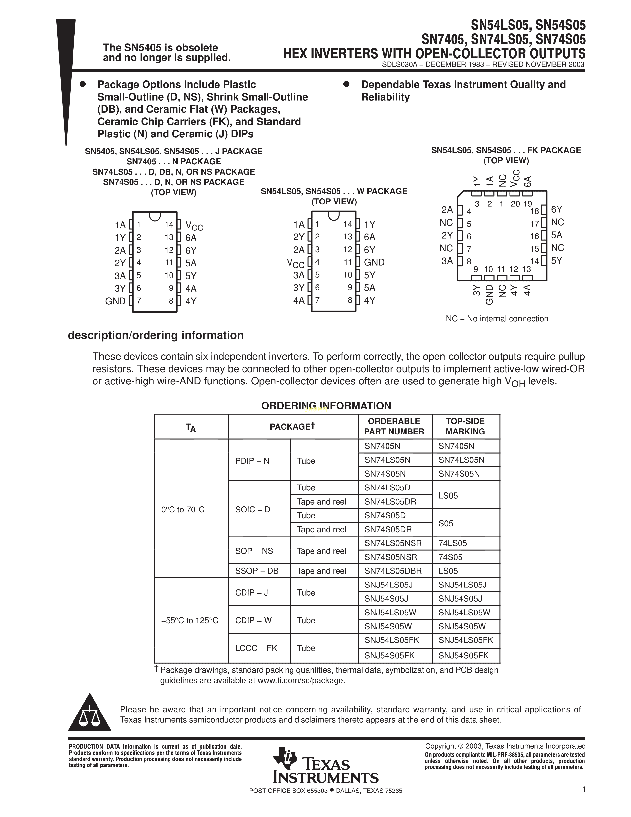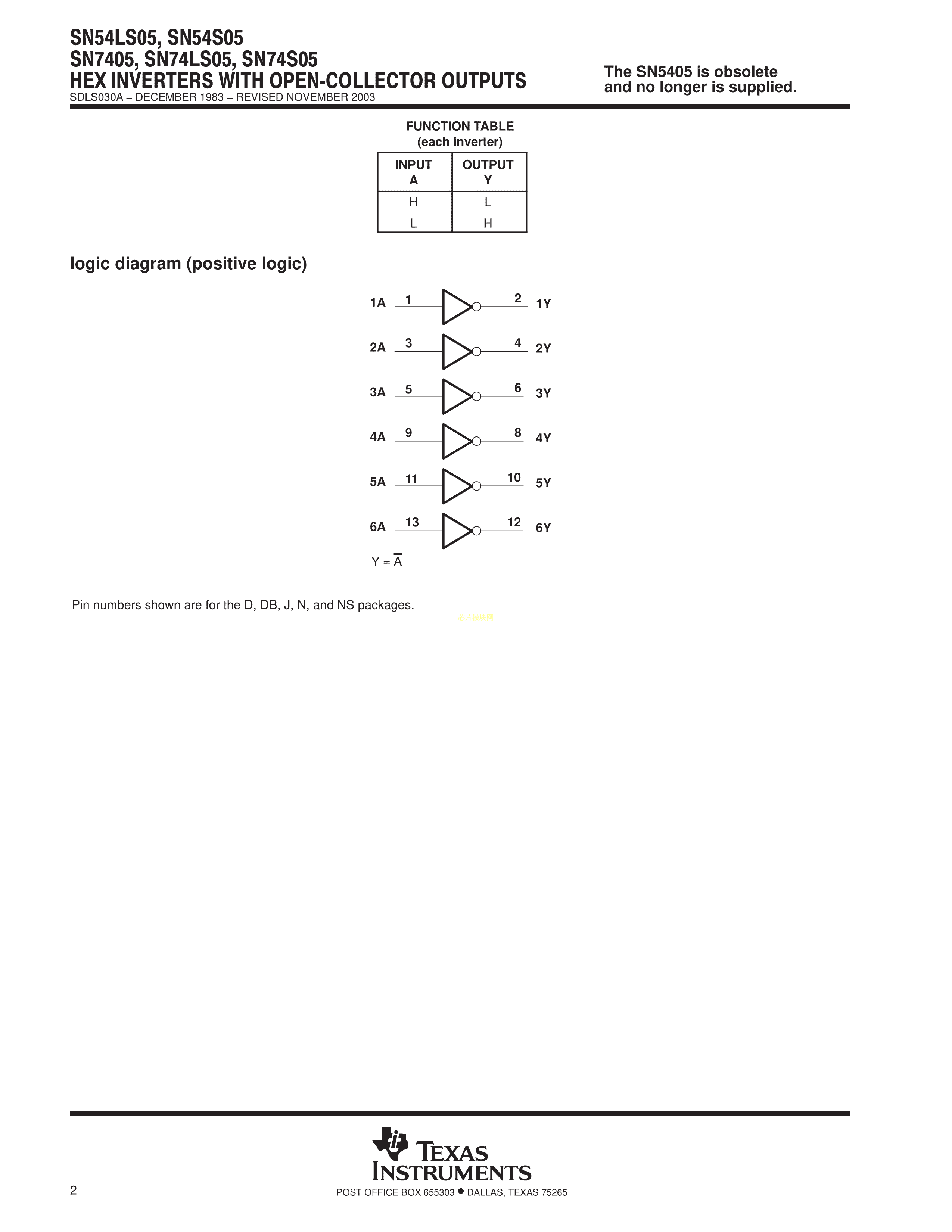 SN74LS05DR数据手册SOIC-14_150mil封装TI(德州仪器)PDF规格书,中英文下载