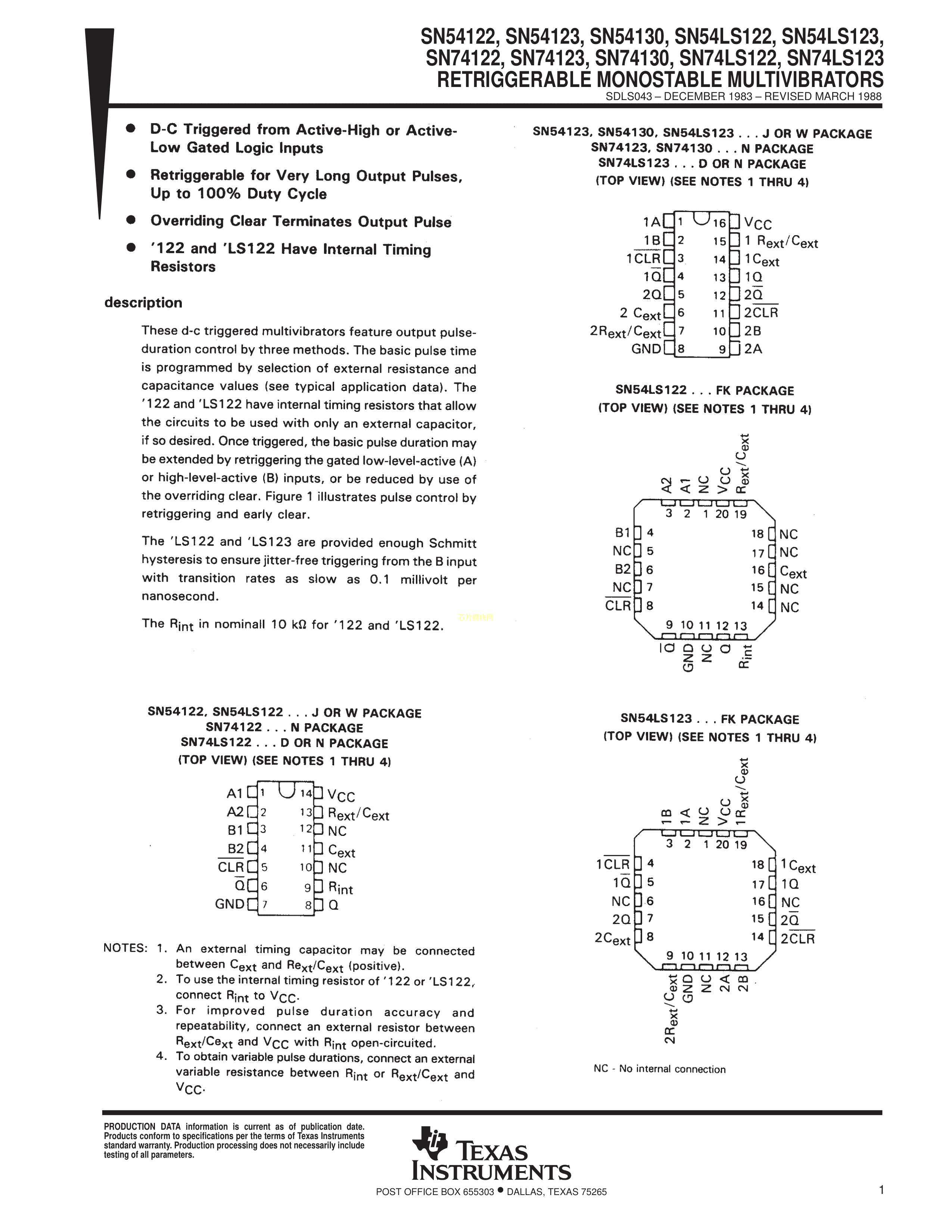 SN74LS123N数据手册PDIP-16封装TI(德州仪器)PDF规格书,中英文下载